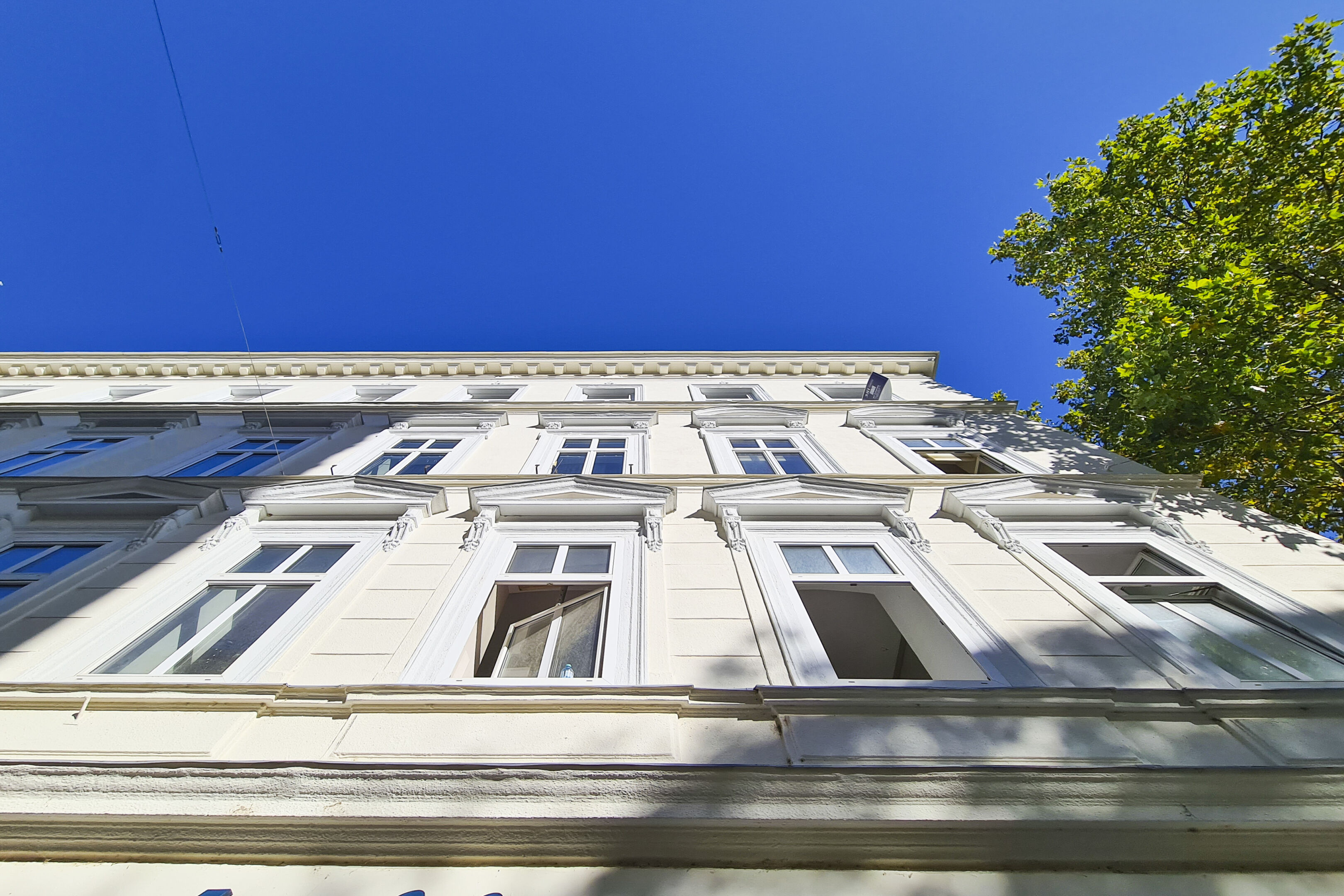 Das wunderschöne Gründerzeithaus wurde mit viel Sorgfalt und Liebe zum Detail saniert. Historische Elemente wie hohe Räume, elegante Fassadengestaltung und stilvolle Altbautüren treffen hier auf moderne Ausstattung und zeitgemäßes Wohngefühl.