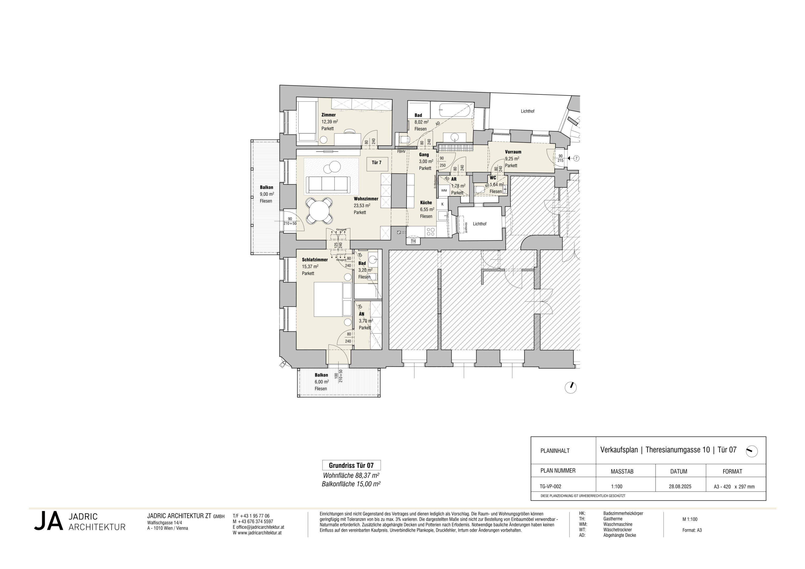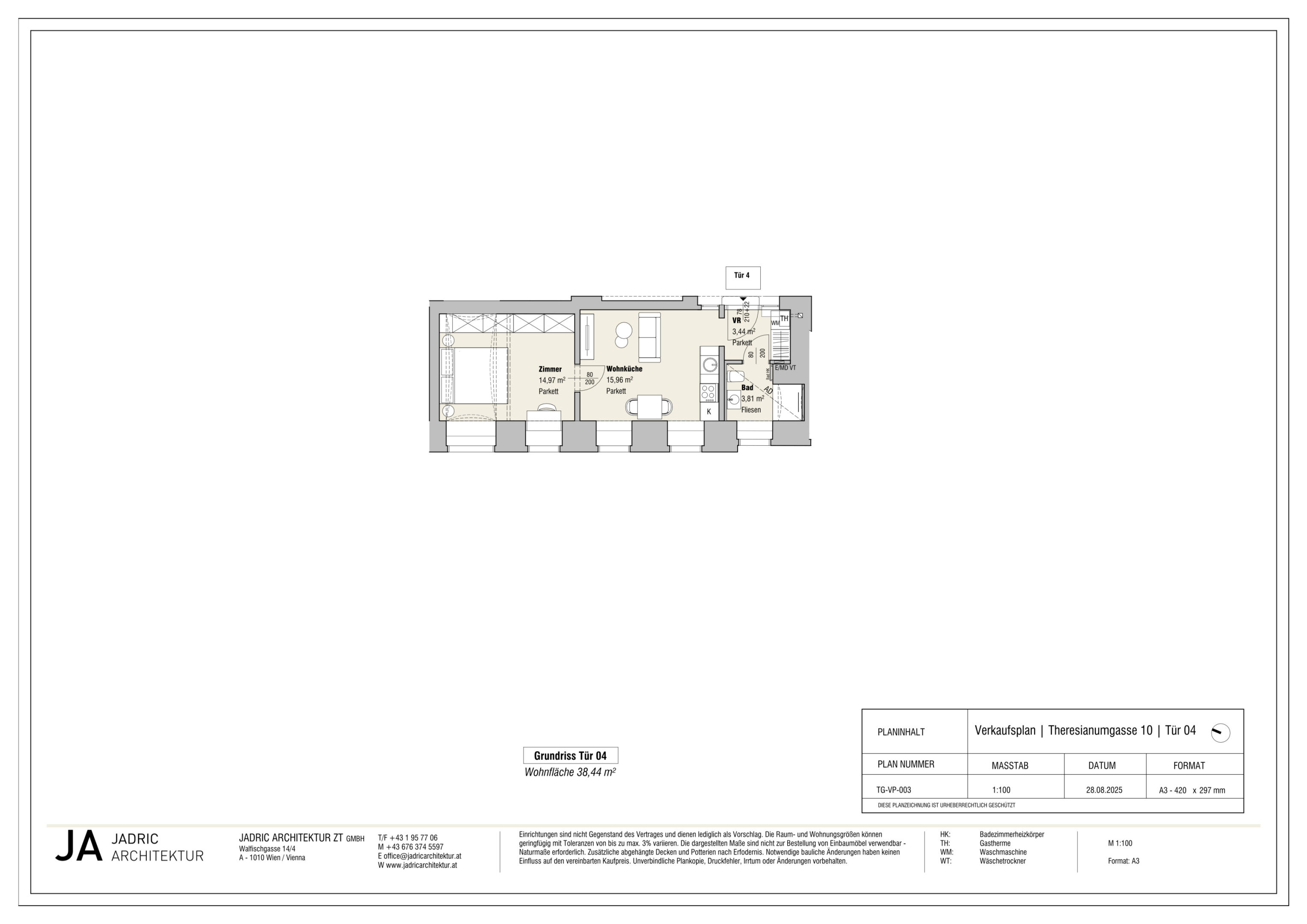 Der guten Ordnung halber halten wir fest, dass, sofern im Angebot nicht anders vermerkt, bei erfolgreichem Abschlussfall eine Provision anfällt, die den in der Immobilienmaklerverordnung BGBI. 262 und 297/1996 festgelegten Sätzen entspricht – das sind 3 % des Kaufpreises zzgl. 20 % USt. Diese Provisionspflicht besteht auch dann, wenn Sie die Ihnen überlassenen Informationen an Dritte weitergeben. Es besteht ein wirtschaftliches Naheverhältnis zum Verkäufer. Wir weisen darauf hin, dass wir als Doppelmakler tätig sind. Die Vertragserrichtung und Treuhandabwicklung ist gebunden an Dr. Markus Moser, LL. M. (HKU), Kanzlei MOSER LEGAL in 1010 Wien, Plankengasse 2. Die Kosten betragen 1,5 % des Kaufpreises zzgl. 20 % USt. sowie Barauslagen und Beglaubigung.