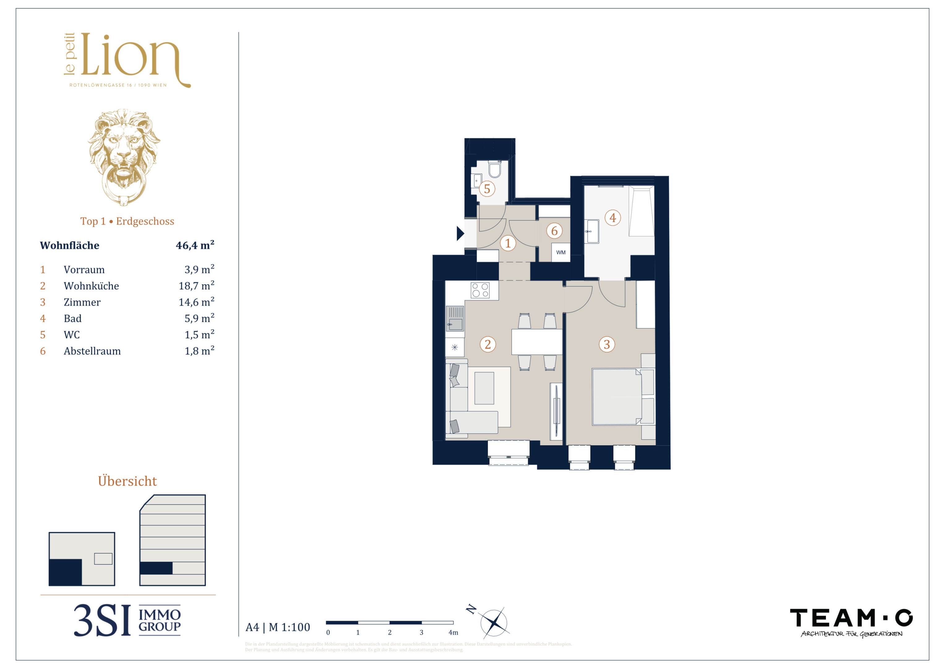 | 1 | Erdgeschoß | 2 | 46,40 m² | € 385.000 | Verfügbar | ||||||