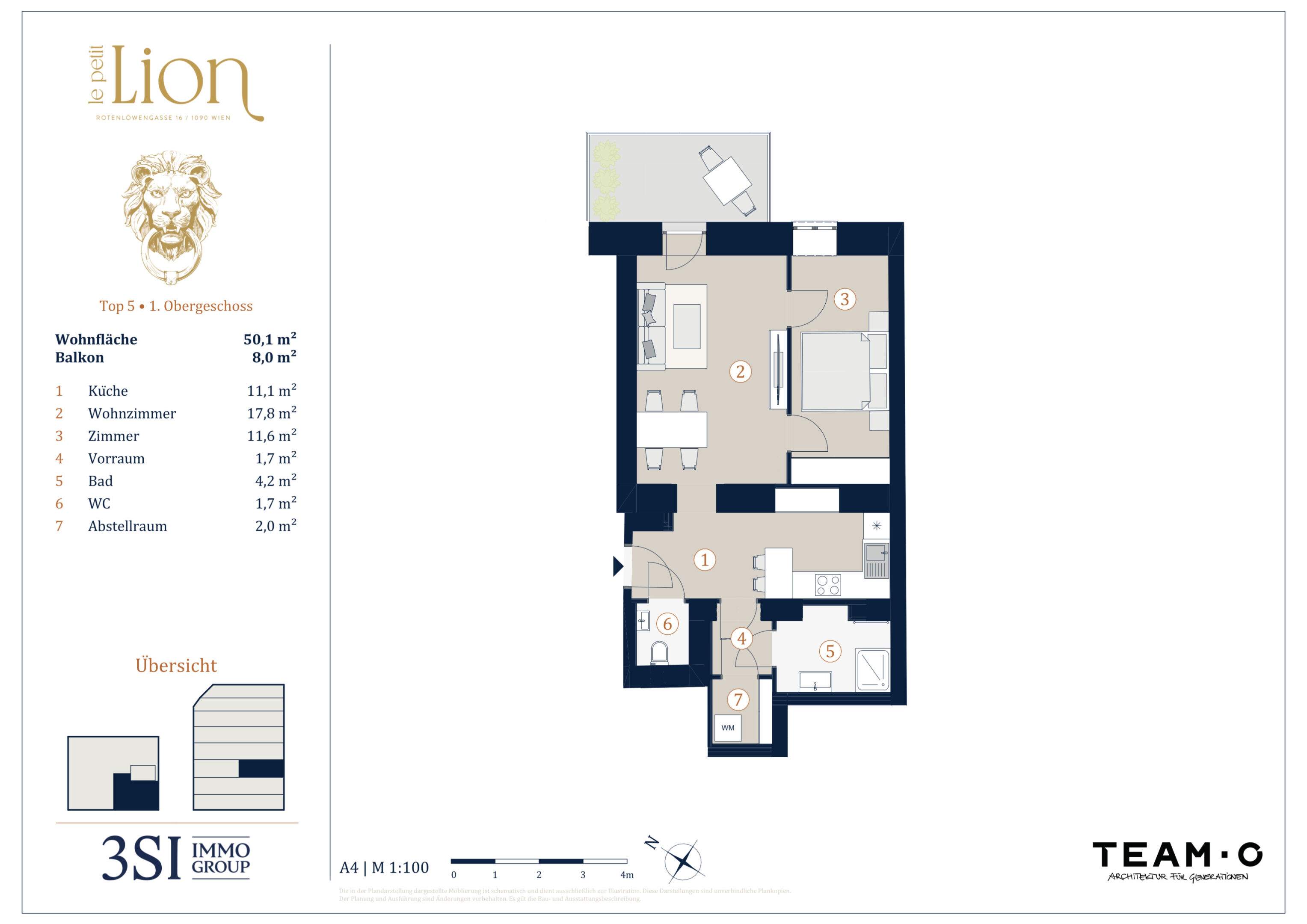| 17 | 1. Dachgeschoß | 3 | 92,20 m² | 15,30 m² | 15,30 m² | € 1.295.000 | Verfügbar | ||||