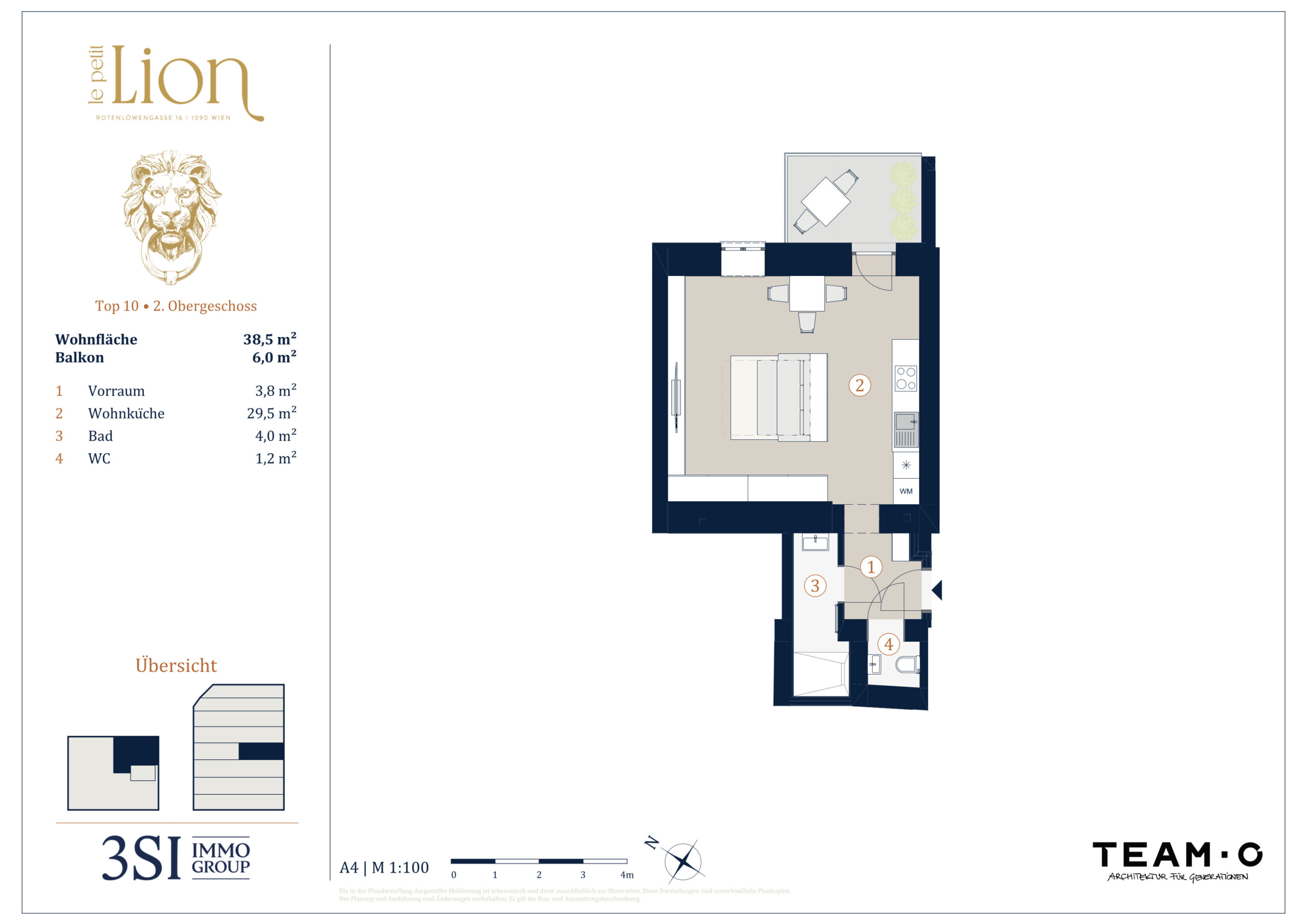 | 10 | 2. Obergeschoß | 1 | 38,50 m² | 6,00 m² | 6,00 m² | € 405.000 | Verfügbar | ||||