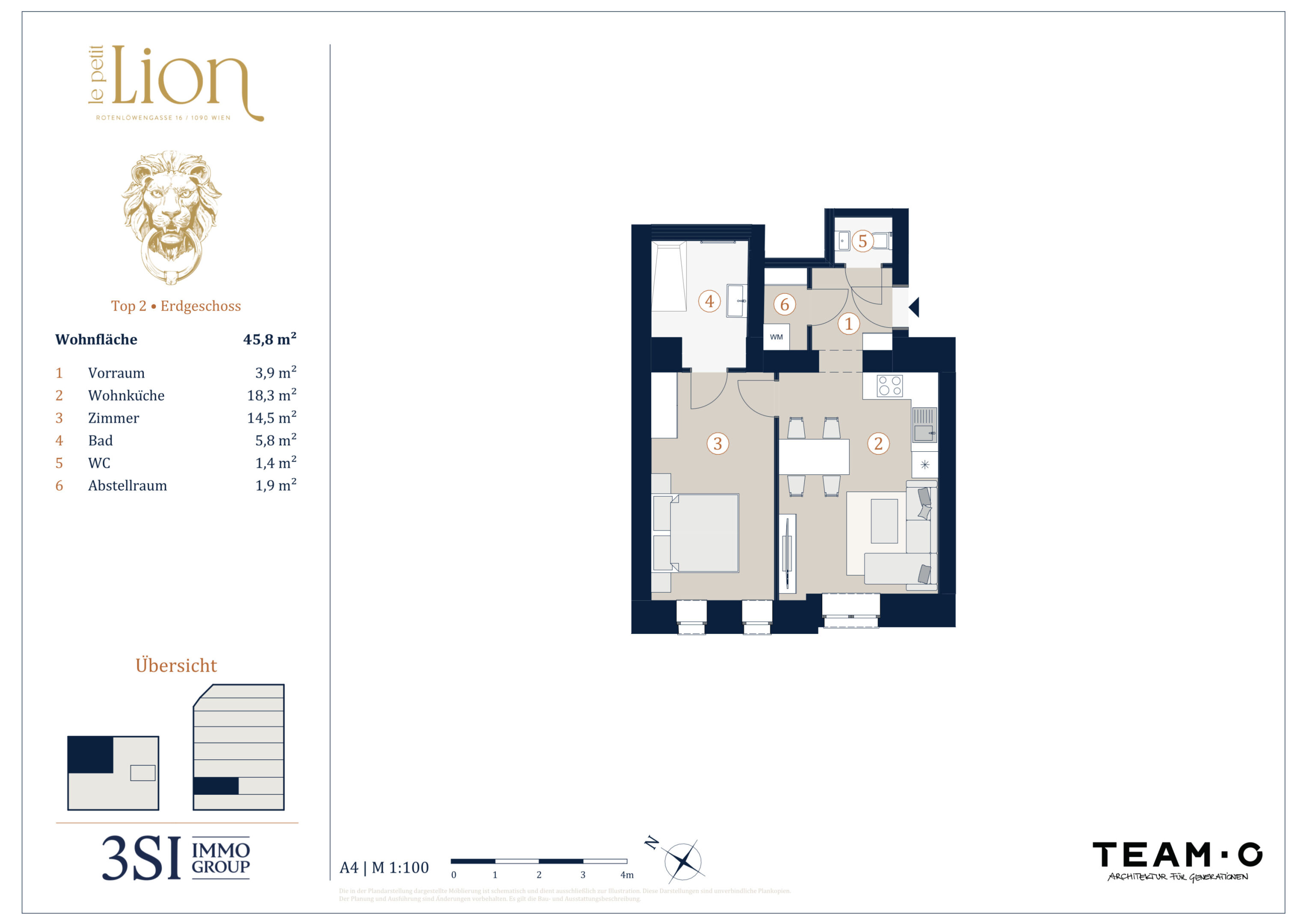 | 2 | Erdgeschoß | 2 | 45,80 m² | € 385.000 | Verfügbar | ||||||