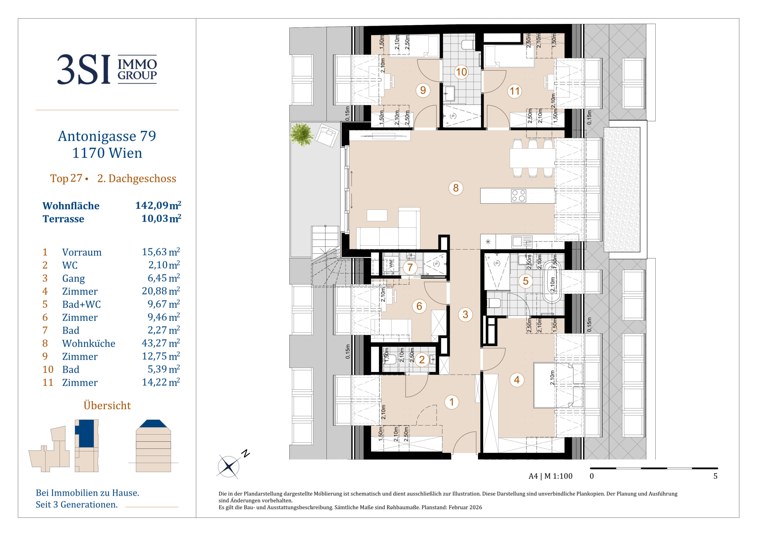| 2/1 | EG, 1. OG, 1. DG | 3 | 123,02 m² | 87,51 m² | 44,08 m² | 43,43 m² | € 913.600 | Verfügbar | ||||