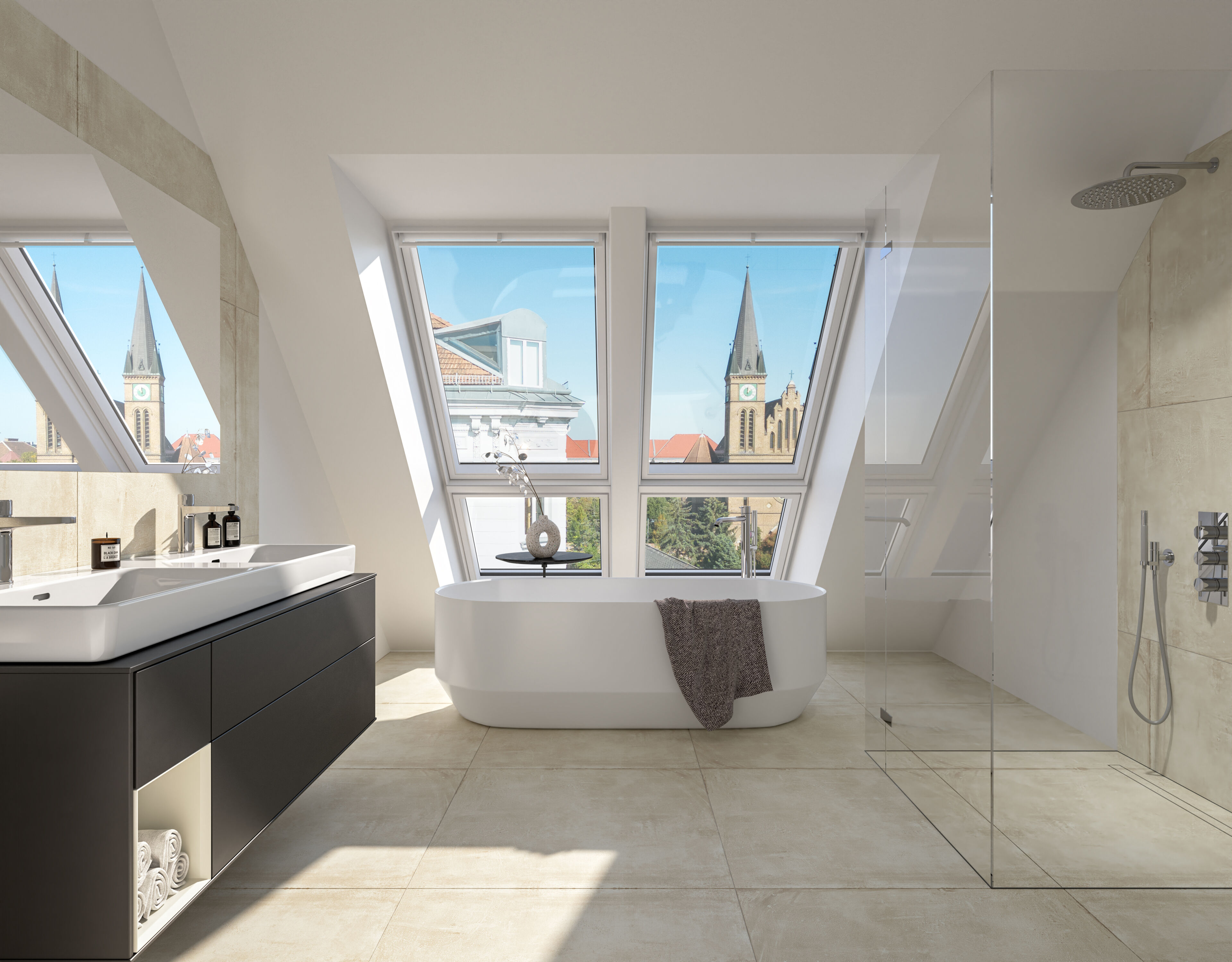 von 3,15 m schafft eine angenehme Atmosphäre und lädt zum Kochen und Verweilen ein. Durch den direkten Zugang zur Terrasse verschmelzen Innen- und Außenbereich nahtlos miteinander und es entsteht ein offenes, großzügiges Wohngefühl. Das Obergeschoß gilt mit seinen Schlafzimmern, einem Arbeitszimmer, einem stilvollen Bad und einer weiteren Terrasse als perfekter Rückzugsort. Ein besonderes Highlight der Townhouses sind die Dachgärten, die als grüne Oasen privaten Rückzugsraum schaffen. Hier wurden Vorbereitungen für Whirlpool und Outdoor-Küche getroffen, die auf Wunsch ausgeführt werden können.
