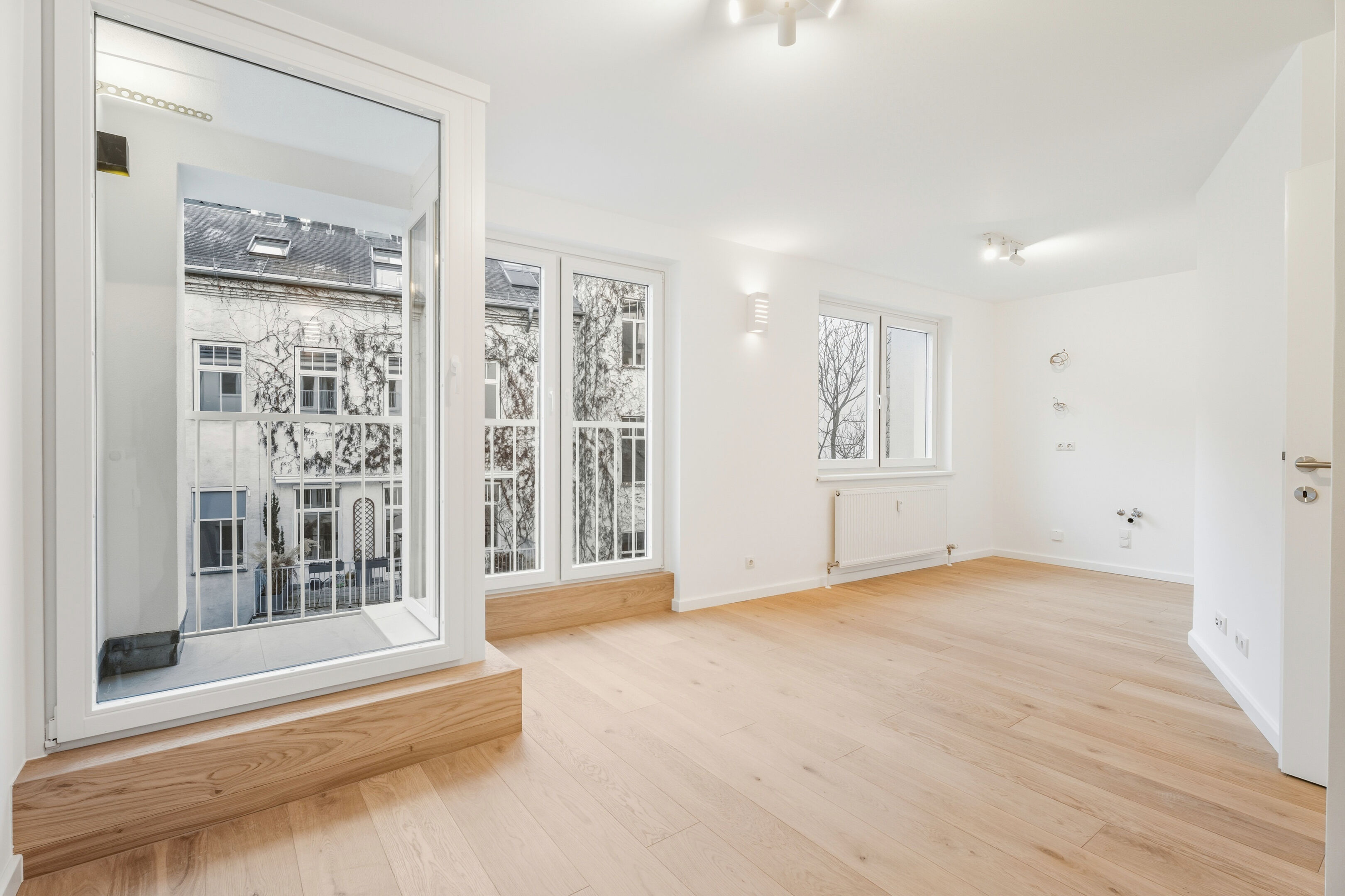 Diese frisch sanierte Wohnung besticht durch ihre moderne Ausstattung und ihren kompakten, optimal genutzten Grundriss. Der helle Wohn- und Schlafbereich schafft ein angenehmes Wohngefühl und bietet Zugang zur hofseitigen Loggia.