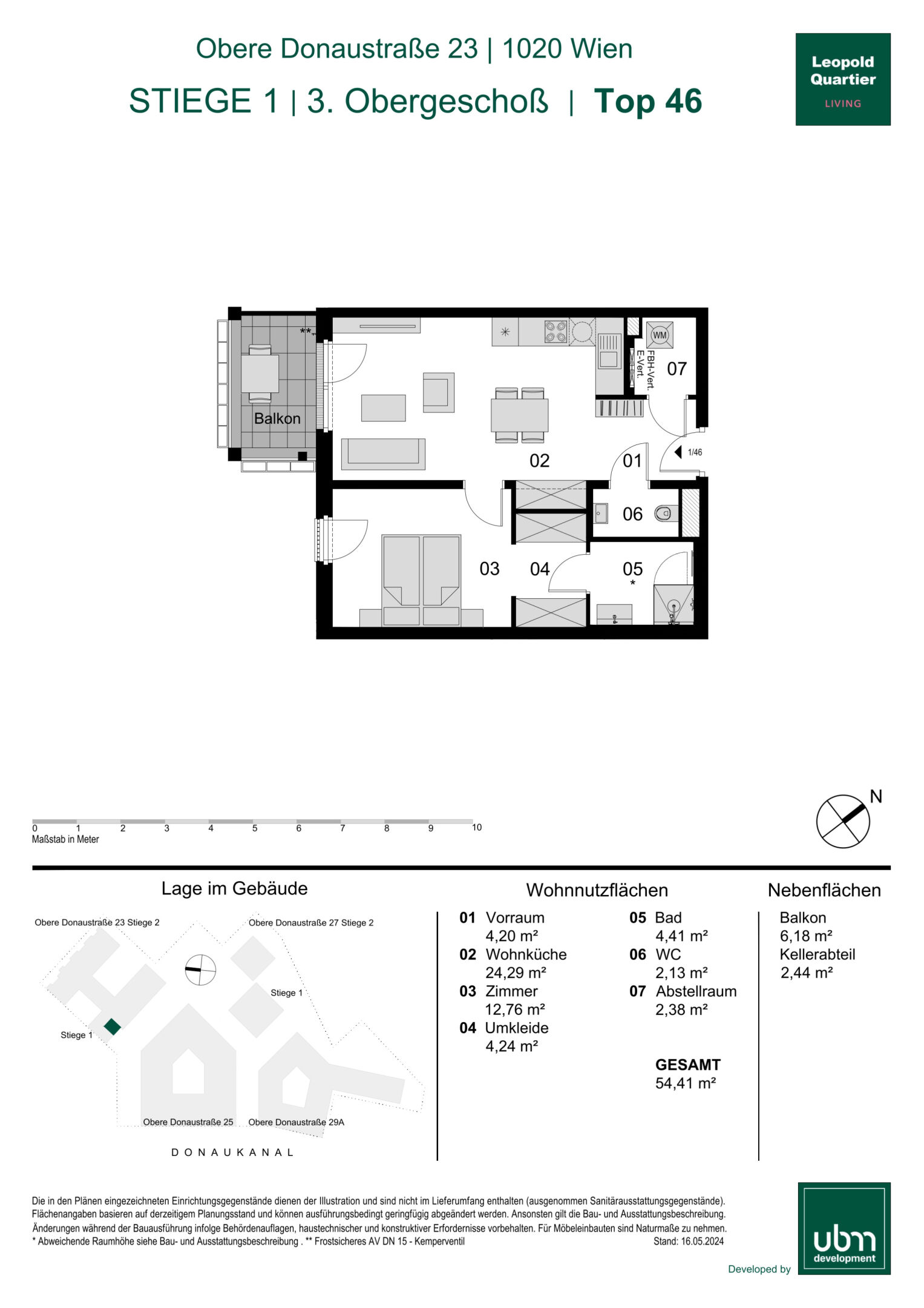 Diese moderne Wohnung befindet sich im 3. Obergeschoß. Die Einheit verfügt über eine Wohnnutzfläche von insgesamt 54,41 m² und bietet zusätzlich einen ca.6,18 m² großen Balkon.