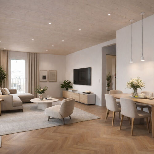 Diese exklusive 4-Zimmer-Wohnung vereint modernes Design mit höchstem Wohnkomfort. Die lichtdurchflutete, offene Wohnküche mit direktem Balkonzugang schafft ein großzügiges Wohngefühl und lädt zum Wohlfühlen ein.