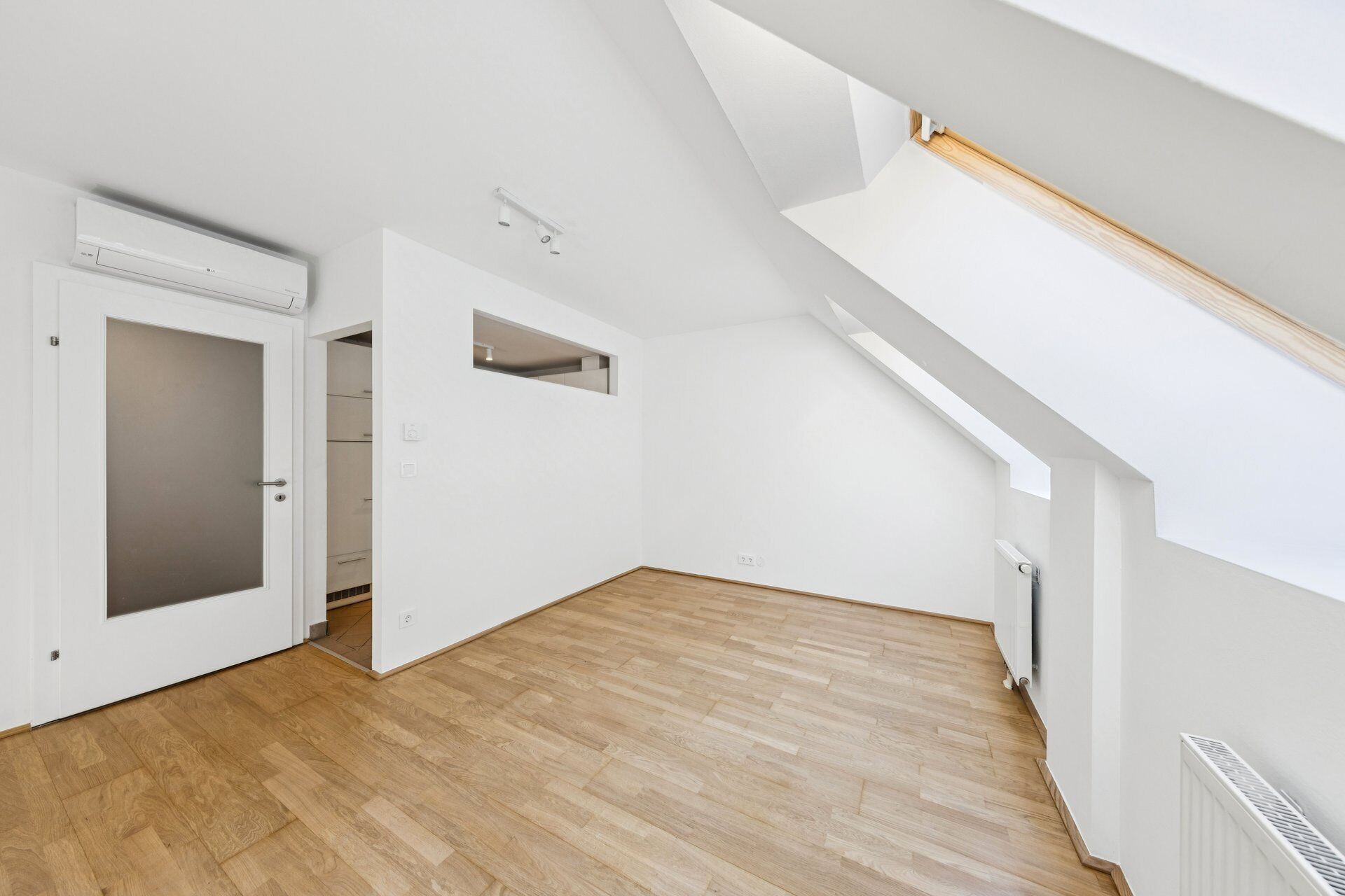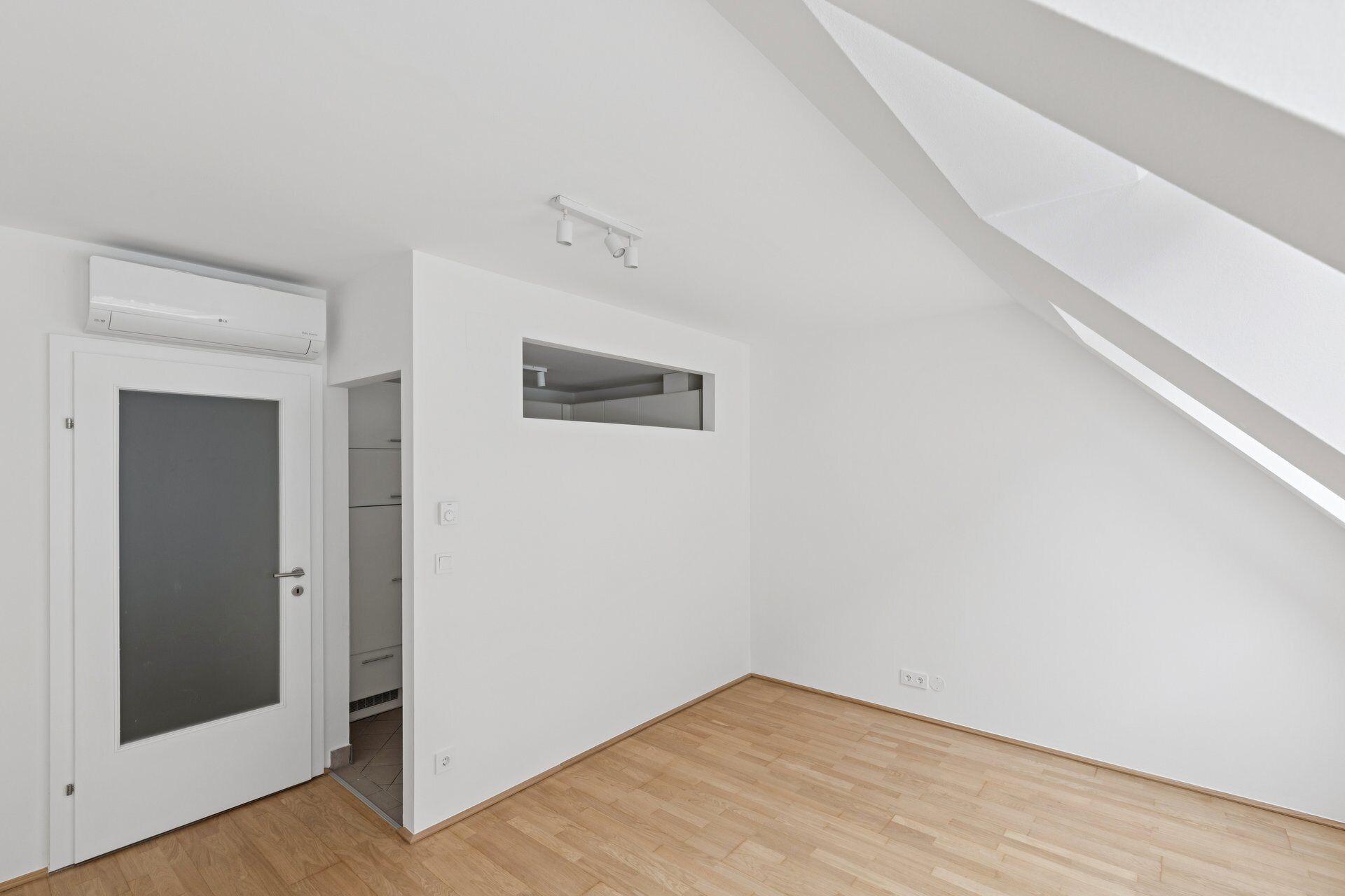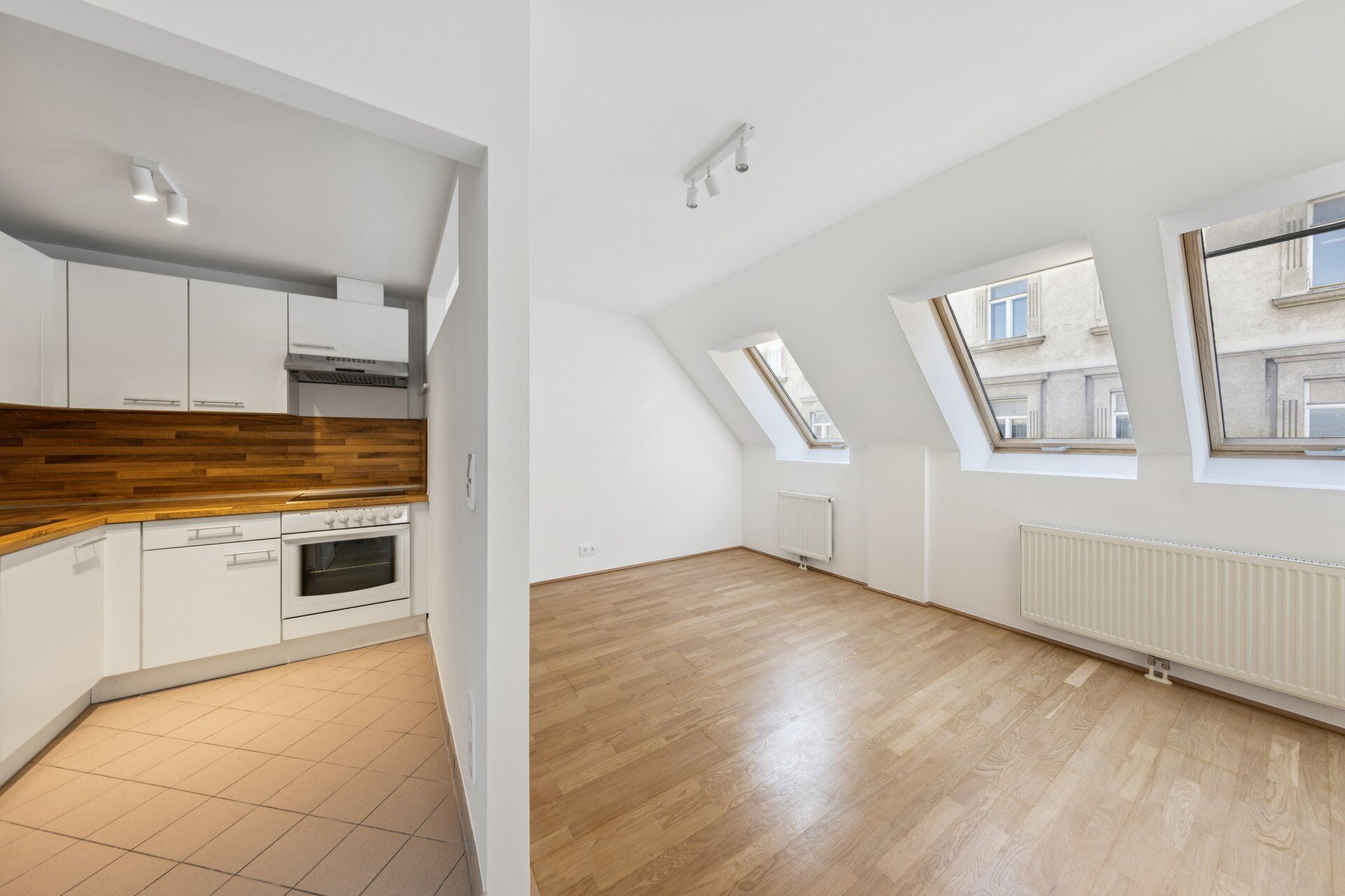 Die untere Ebene empfängt mit einem einladenden Vorraum und führt in den offen gestalteten Wohnbereich mit integrierter Küche, der durch seine Helligkeit und Großzügigkeit besticht. Ein modernes Badezimmer mit Dusche sowie eine separate Toilette sorgen für zusätzlichen Komfort. Über eine innenliegende Treppe gelangt man auf die obere Ebene, die mit einer offenen Galerie vielseitige Nutzungsmöglichkeiten bietet. Die angrenzende Terrasse lädt zum Entspannen ein und rundet dieses attraktive Wohnangebot im Dachgeschoss perfekt ab.