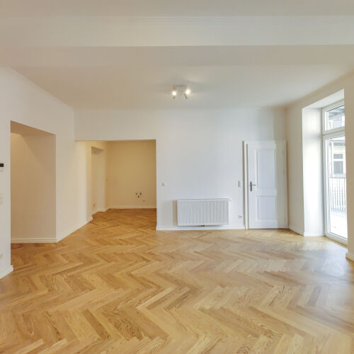 Die Wohnung befindet sich im 1.Dachgeschoß, ist zur Straßenseite nach Süd-Osten ausgerichtet und auf der Hofseite nach Süd-Westen, mit ruhigen Parkblick. Die Aufteilung ist wie folgt: