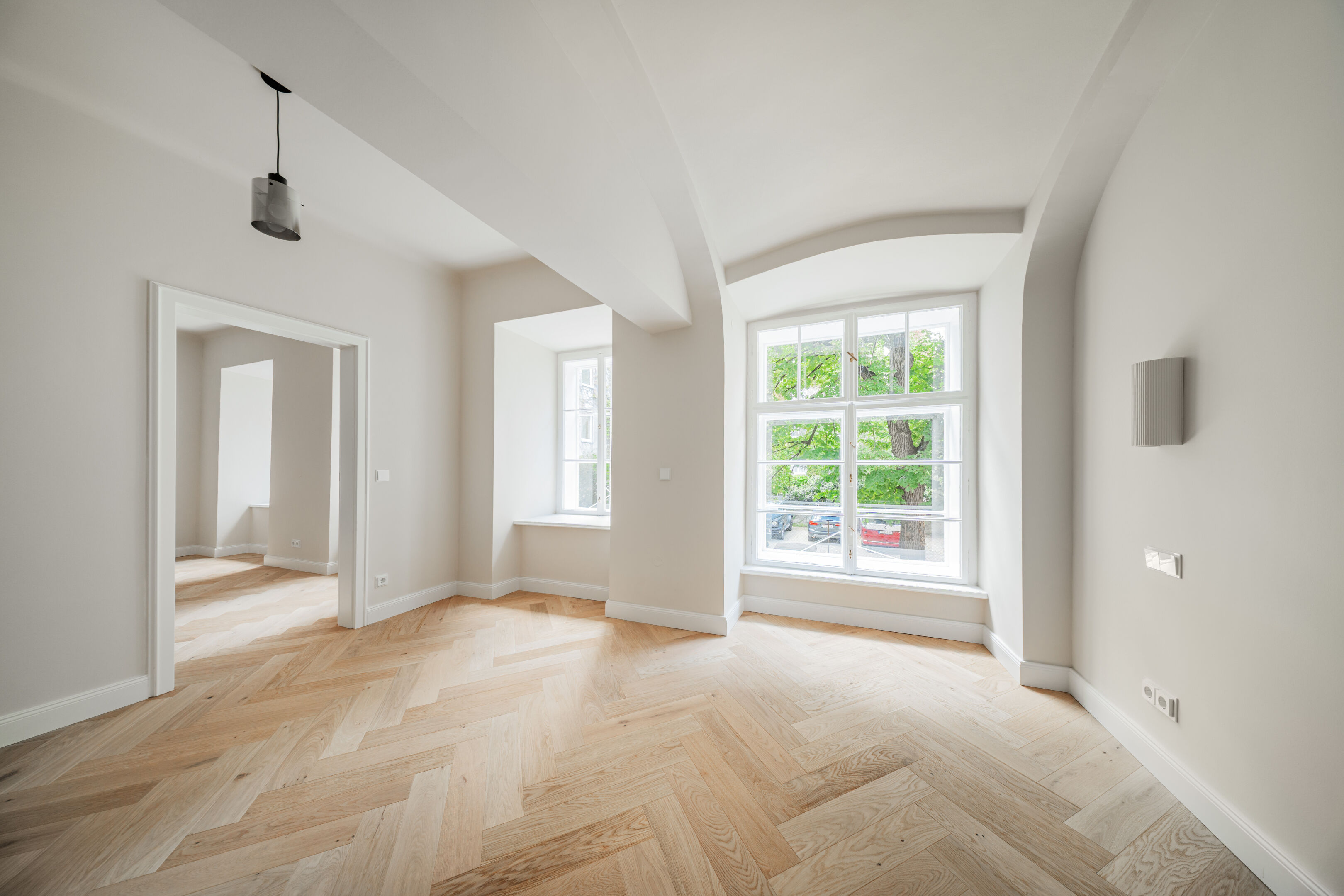 Das Objekt ist ein Erstbezug nach Generalsanierung. Die Gas- und Stromleitungen wurden erneuert, ein eleganter Eichenparkettboden mit Fußbodenheizung verlegt und zeitgemäße Sanitäranlagen installiert. Die charmanten Holzkastenfenster konnten erhalten werden und wurden tischlermäßig saniert.