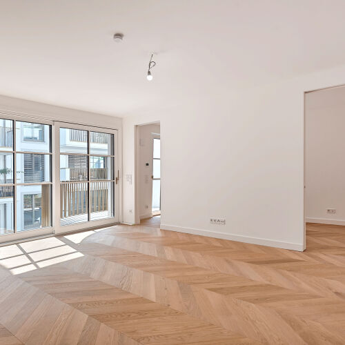 Diese großzügige 2-Zimmer-Wohnung im 3. Obergeschoss überzeugt mit einer Wohnfläche von rund 79 m² sowie einem Balkon mit ca. 6 m². Der durchdachte Grundriss, die lichtdurchfluteten Räume und die hochwertige Ausstattung schaffen ein Wohnambiente, das gleichermaßen modern, komfortabel und stilvoll ist.