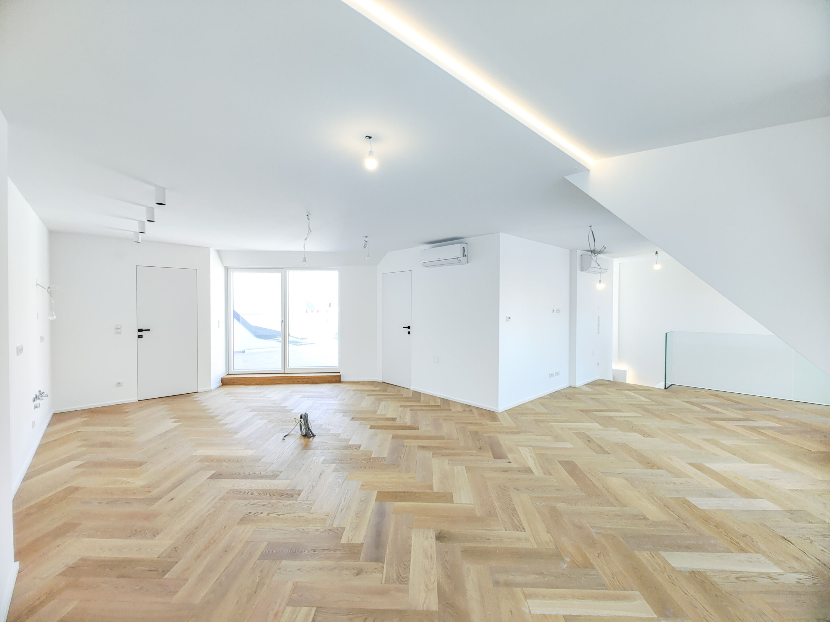 • Eichenparkett in Fischgrät verlegt