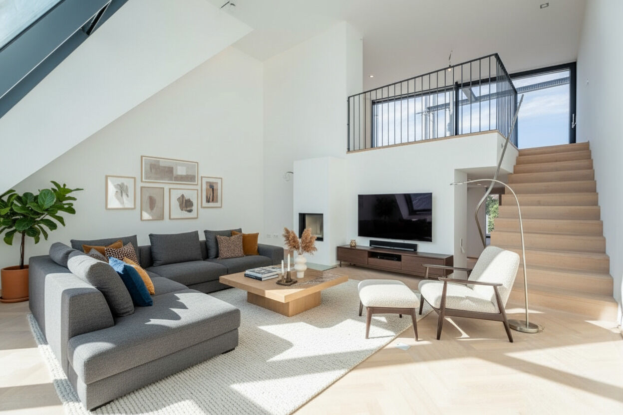 Der neu ausgebaute Dachgeschossbereich präsentiert sich als Erstbezug mit einer hochwertigen Ausstattung, die keine Wünsche offenlässt. Großzügige Raumhöhen, riesige Fensterfronten, stilvolle Details und ein harmonisches Zusammenspiel aus traditionellen Elementen und moderner Architektur verleihen diesem Zuhause eine besondere Atmosphäre.