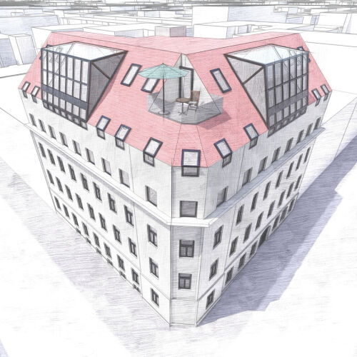 - Dachgeschoßausbau baubewilligt mit ca. 623m² Wohnfläche zzgl. Freiflächen