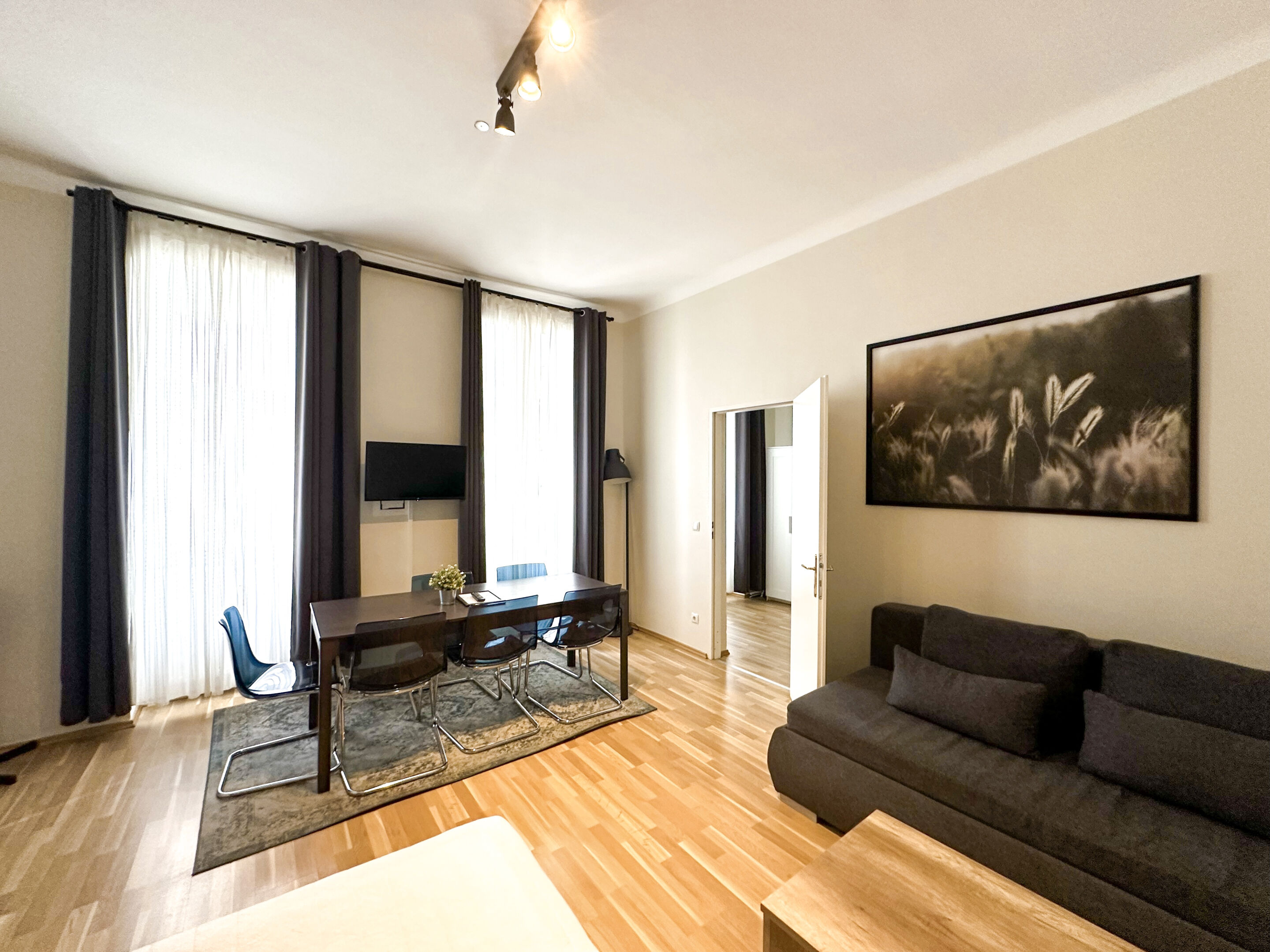 Das Gebäude umfasst ein Erdgeschoss und drei Obergeschosse. Insgesamt stehen derzeit 10 Einheiten zum Verkauf, die bislang als Apartments genutzt wurden. Alle Wohnungen sind möbliert, hell und funktional gestaltet und verfügen über Küchen inklusive Geräte – ideal als stilvoller Hauptwohnsitz oder charmante Stadtwohnung. Dank der Möblierung können die Einheiten sofort bezogen werden, sodass man ohne Verzögerung einziehen kann. Die hohe Raumhöhe, großen Fenster und die klassische Altbauarchitektur schaffen eine einladende Atmosphäre, in der man sich sofort zuhause fühlt.