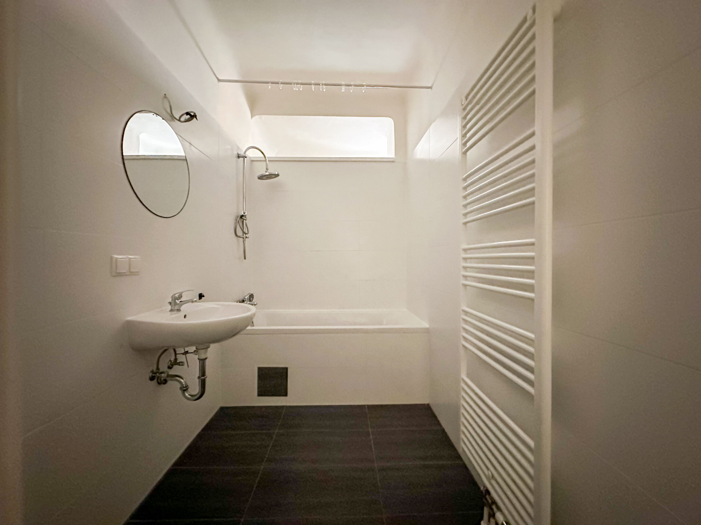 Das Badezimmer ist mit einer Badewanne, einem Handwaschbecken und einem WC ausgestattet und modern gestaltet. Ein praktischer Abstellraum innerhalb der Wohnung bietet zusätzlichen Stauraum und erhöht den Wohnkomfort erheblich. Ein eigenes Kellerabteil ist der Wohnung ebenfalls zugeordnet.