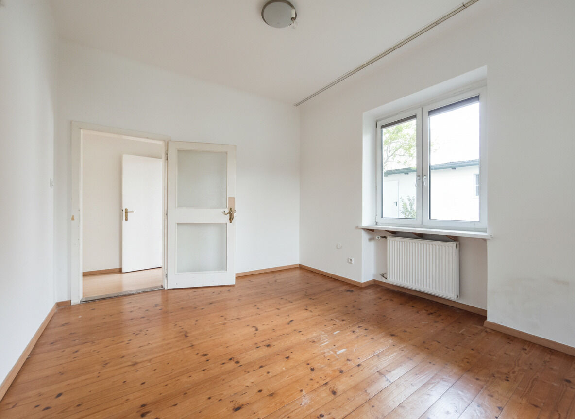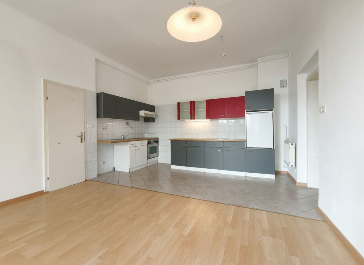 Die Wohnung verfügt über drei zentral begehbare Zimmer, die vielseitig genutzt werden können, sowie eine geräumige Wohnküche.