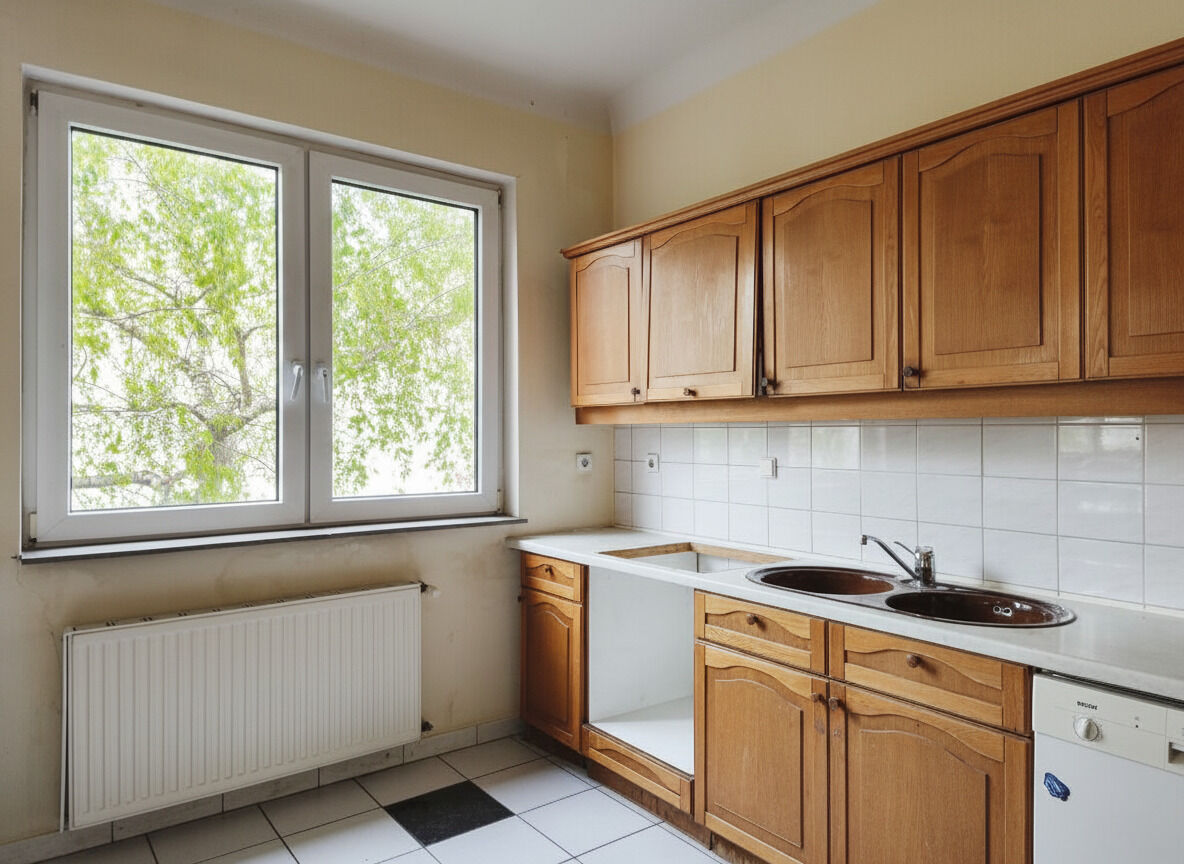 Der Zustand der Wohnung ist einfach und entspricht nicht modernen Standards, bietet jedoch eine funktionale Raumaufteilung.