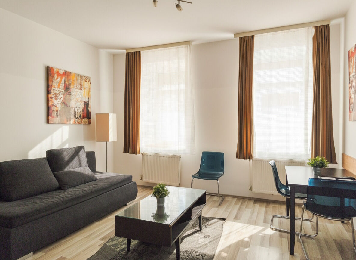 Ursprünglich als Apartments genutzt, sind alle Wohnungen möbliert, gut erhalten und funktional gestaltet. Sie verfügen über voll ausgestattete Küchen inklusive Geräte und sind somit sofort bezugsbereit.