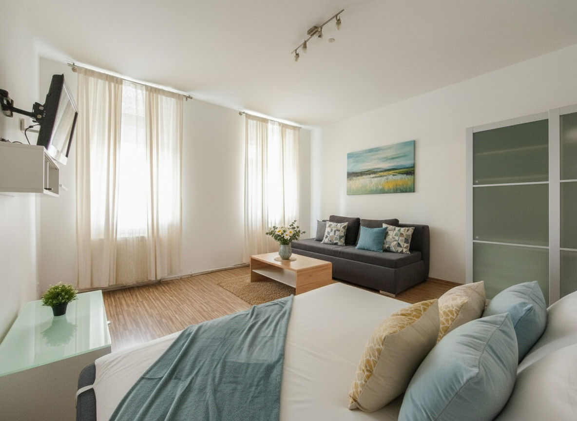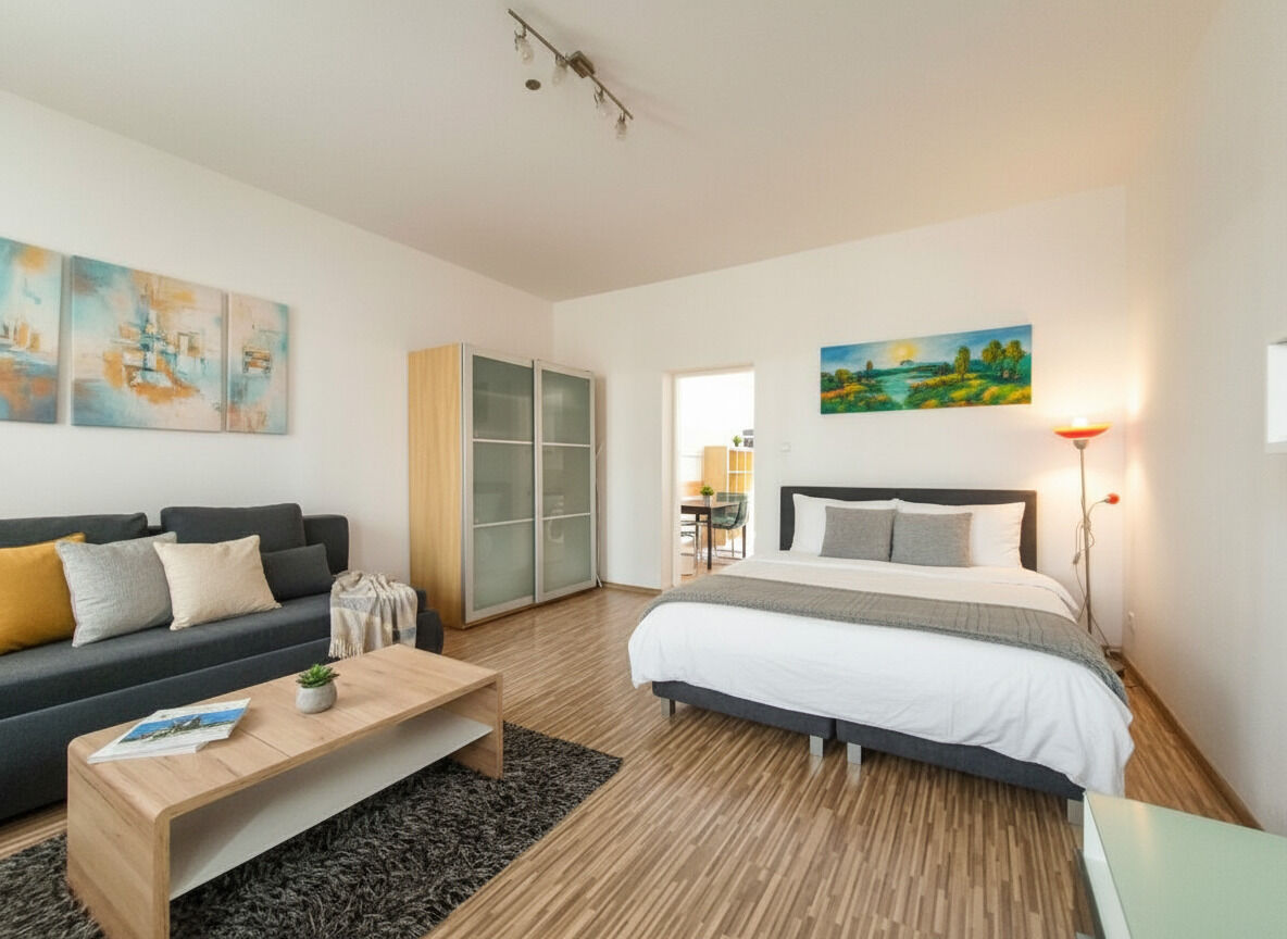 Ursprünglich als Apartments genutzt, sind alle Wohnungen möbliert, gut erhalten und funktional gestaltet. Sie verfügen über voll ausgestattete Küchen inklusive Geräte und sind somit sofort bezugsbereit.