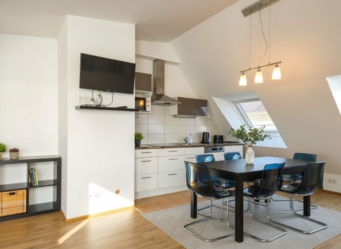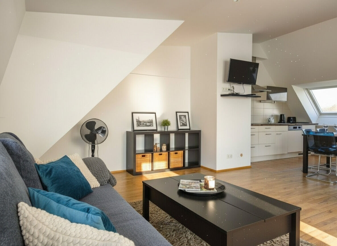 Diese möblierte DG-Maisonette mit 3 Zimmern und einer 8,75 m² großen Terrasse bietet auf rund 94,55 m² Wohnfläche eine und gut durchdachte Raumaufteilung: