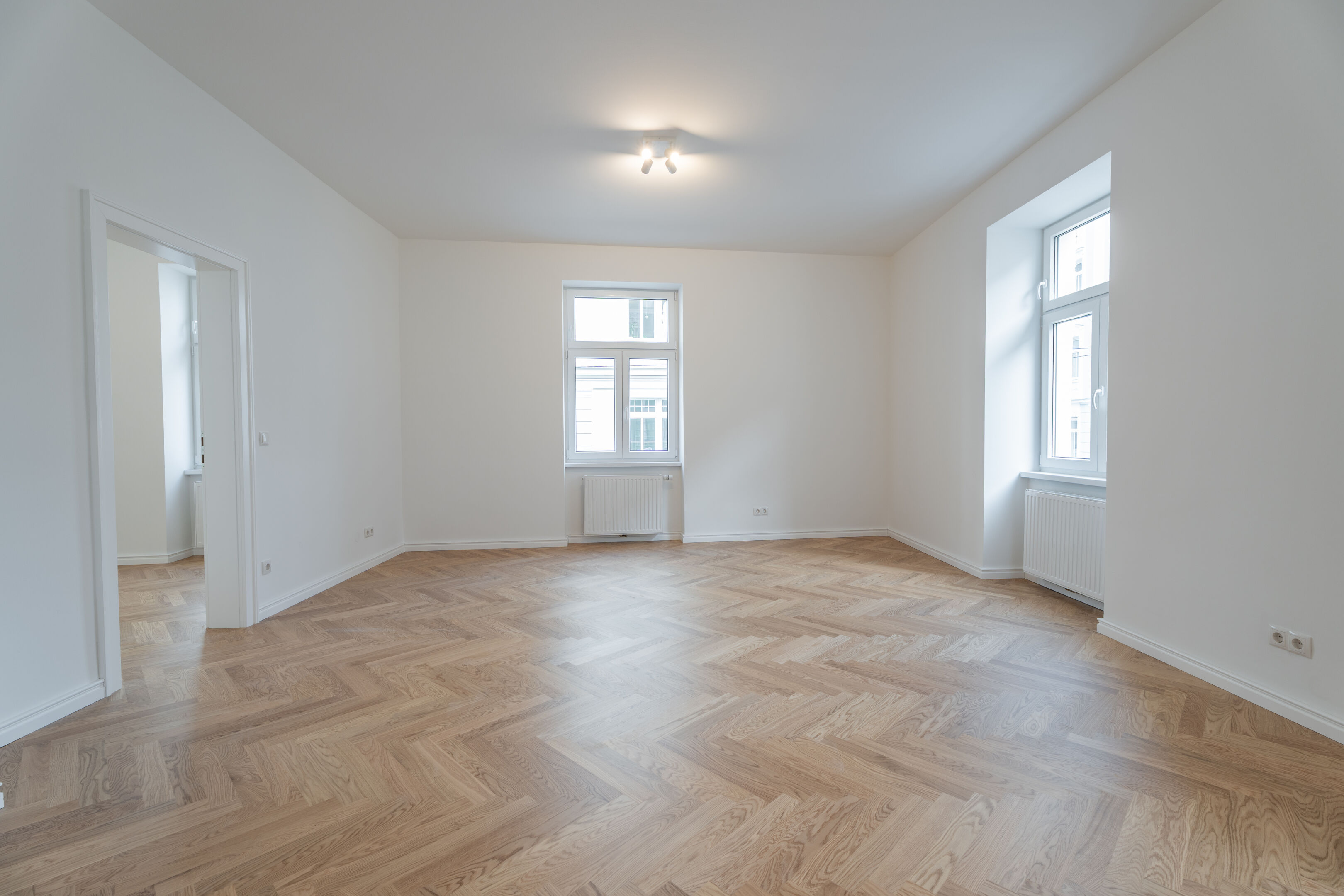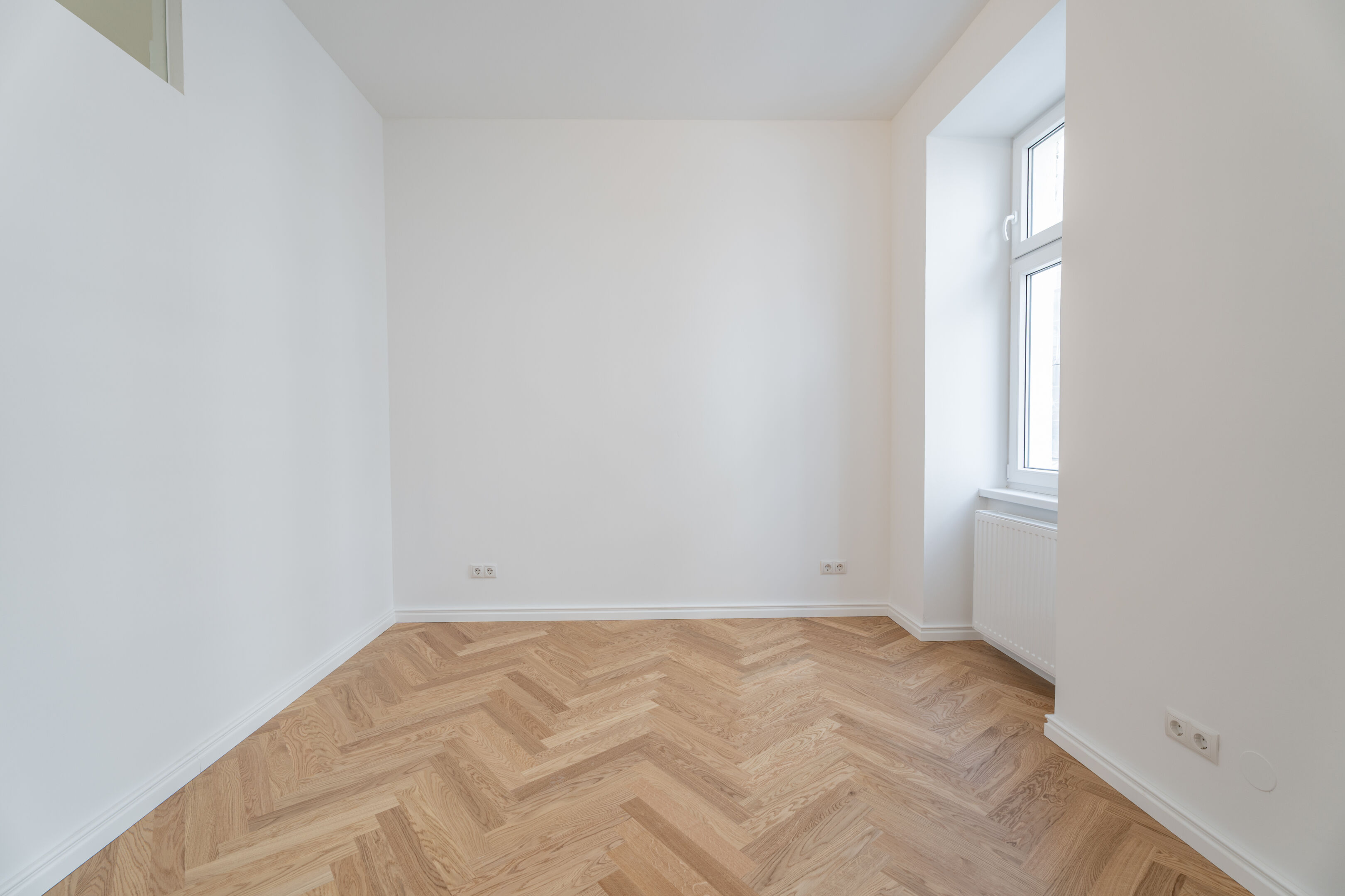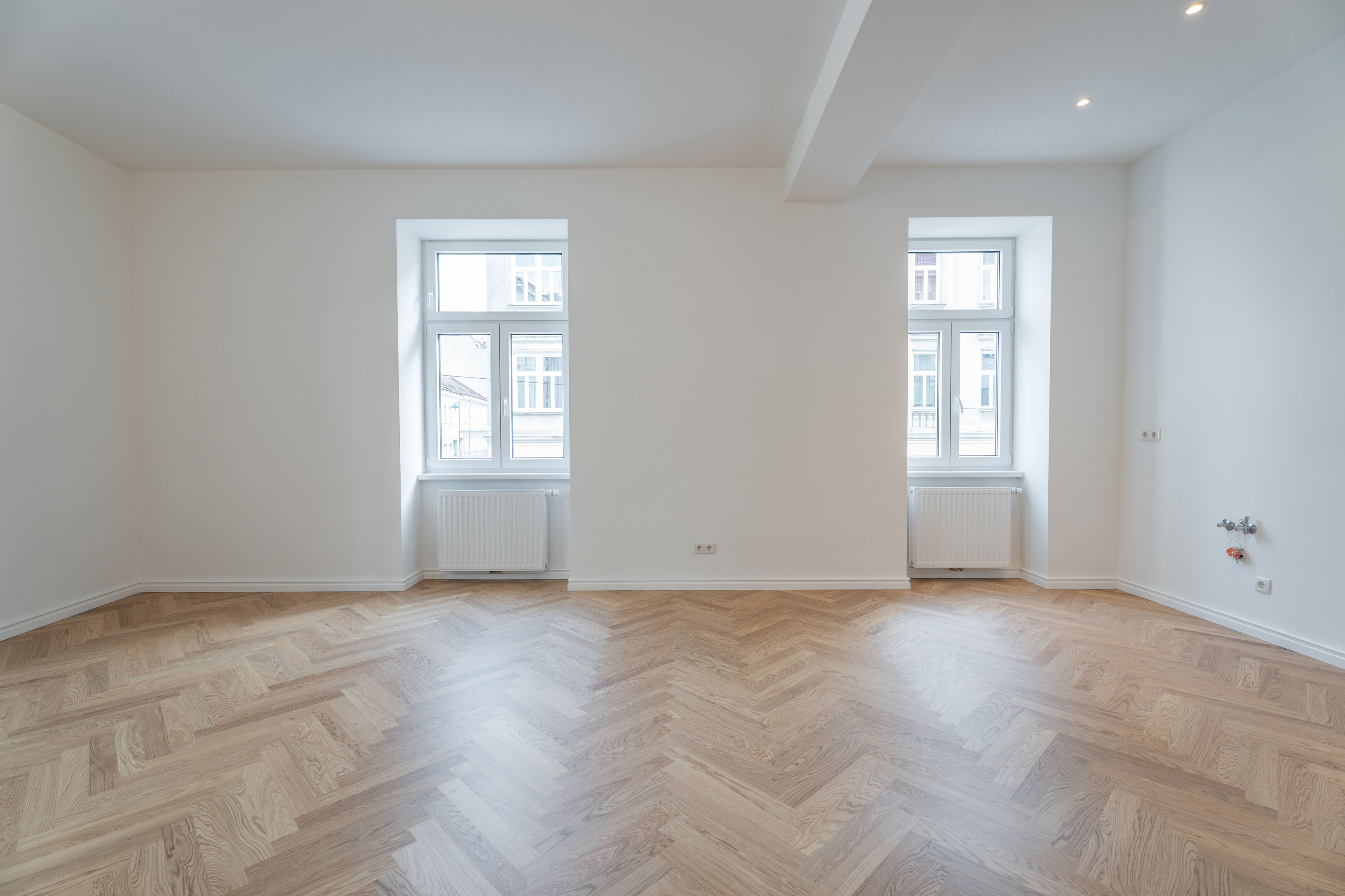 Im Zuge der Sanierung wurde besonderer Wert auf Qualität, Komfort und zeitloses Design gelegt. Die Wohnung ist mit Fußbodenheizung, edlem Eichen-Fischgrätparkett in den Wohnräumen sowie einer hochwertigen, modernen Badausstattung versehen. Die offene Wohnküche schafft gemeinsam mit den großen Fensterflächen ein helles und einladendes Wohnambiente.