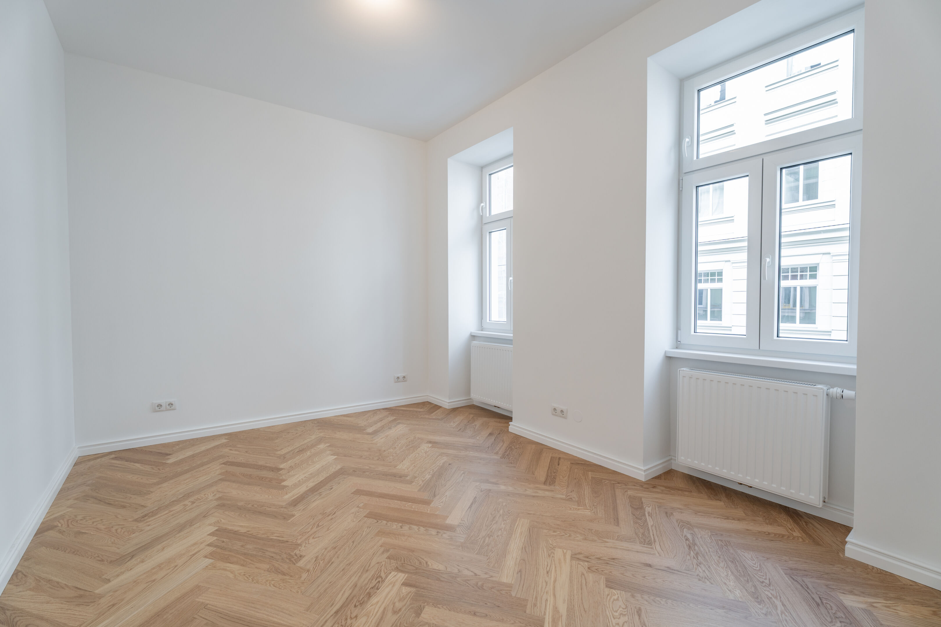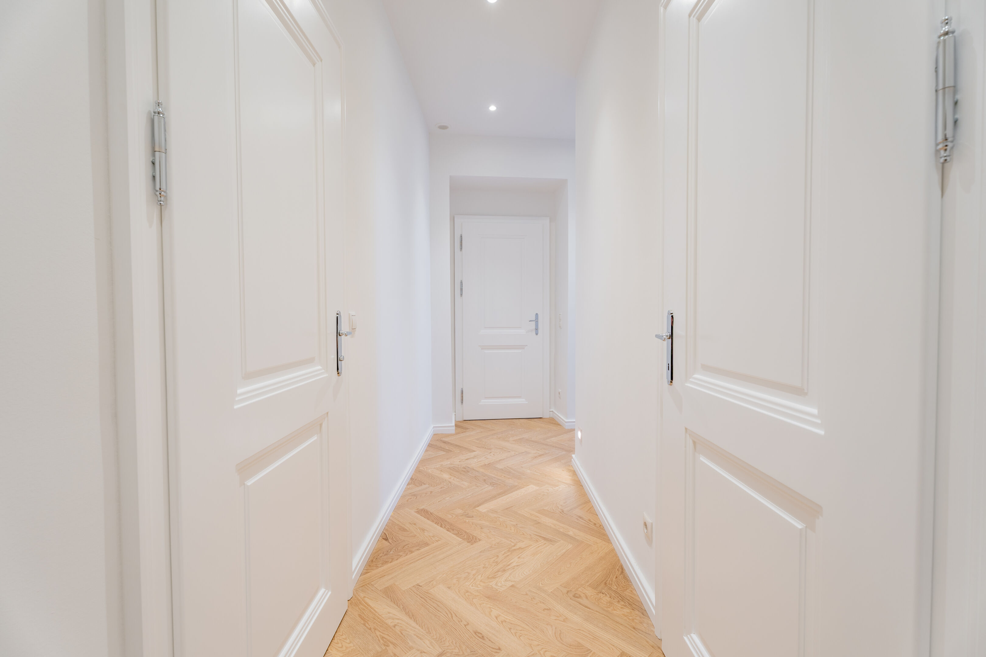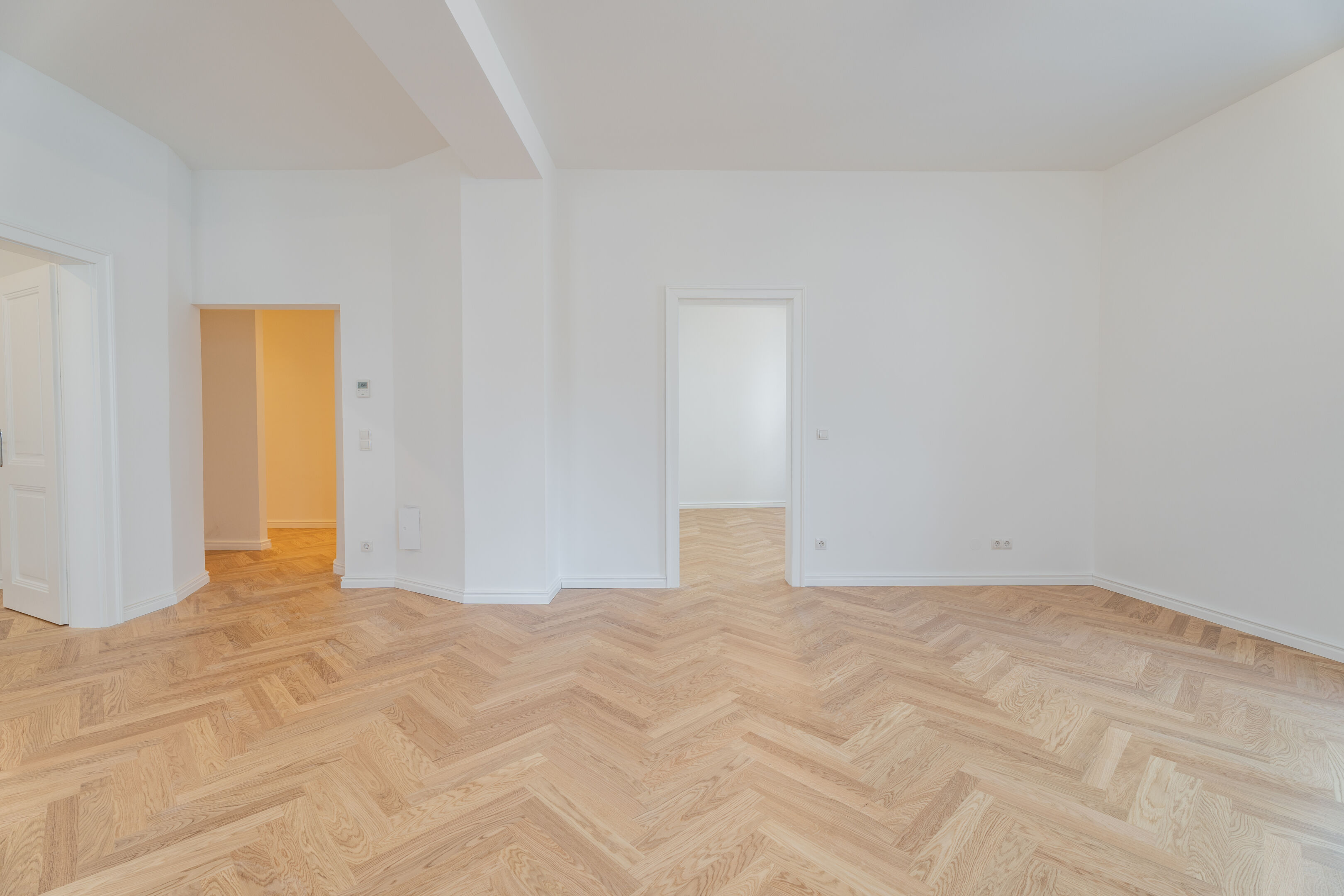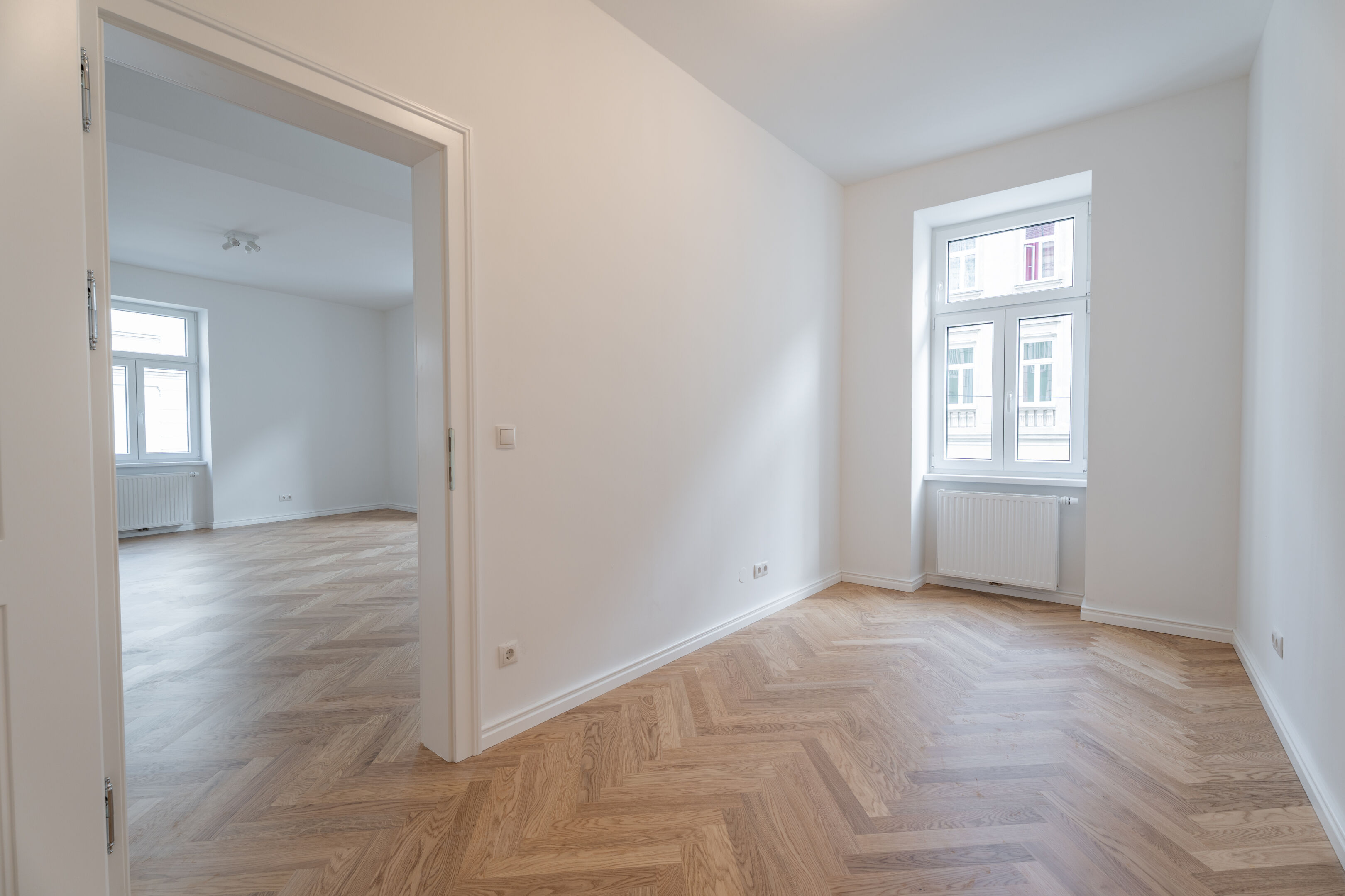 Im Zuge der Sanierung wurde besonderer Wert auf Qualität, Komfort und zeitloses Design gelegt. Die Wohnung ist mit Fußbodenheizung, edlem Eichen-Fischgrätparkett in den Wohnräumen sowie einer hochwertigen, modernen Badausstattung versehen. Die offene Wohnküche schafft gemeinsam mit den großen Fensterflächen ein helles und einladendes Wohnambiente.