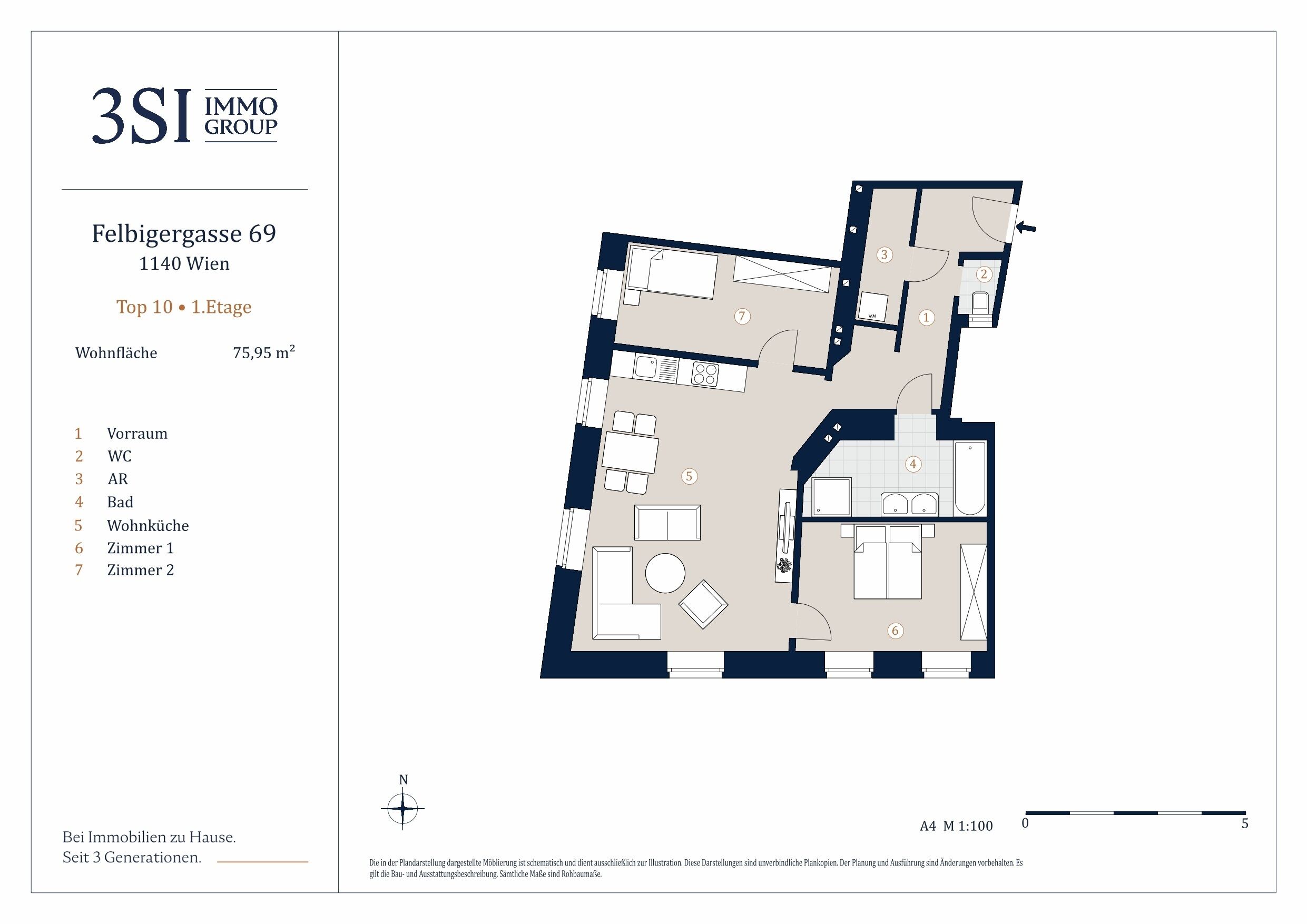 Die großzügige Raumaufteilung umfasst einen Vorraum, eine moderne Wohnküche, zwei Zimmer, ein stilvolles Badezimmer, ein separates WC sowie einen Abstellraum und bietet ein ideales Wohnkonzept für Familien, Paare oder anspruchsvolle Eigennutzer.