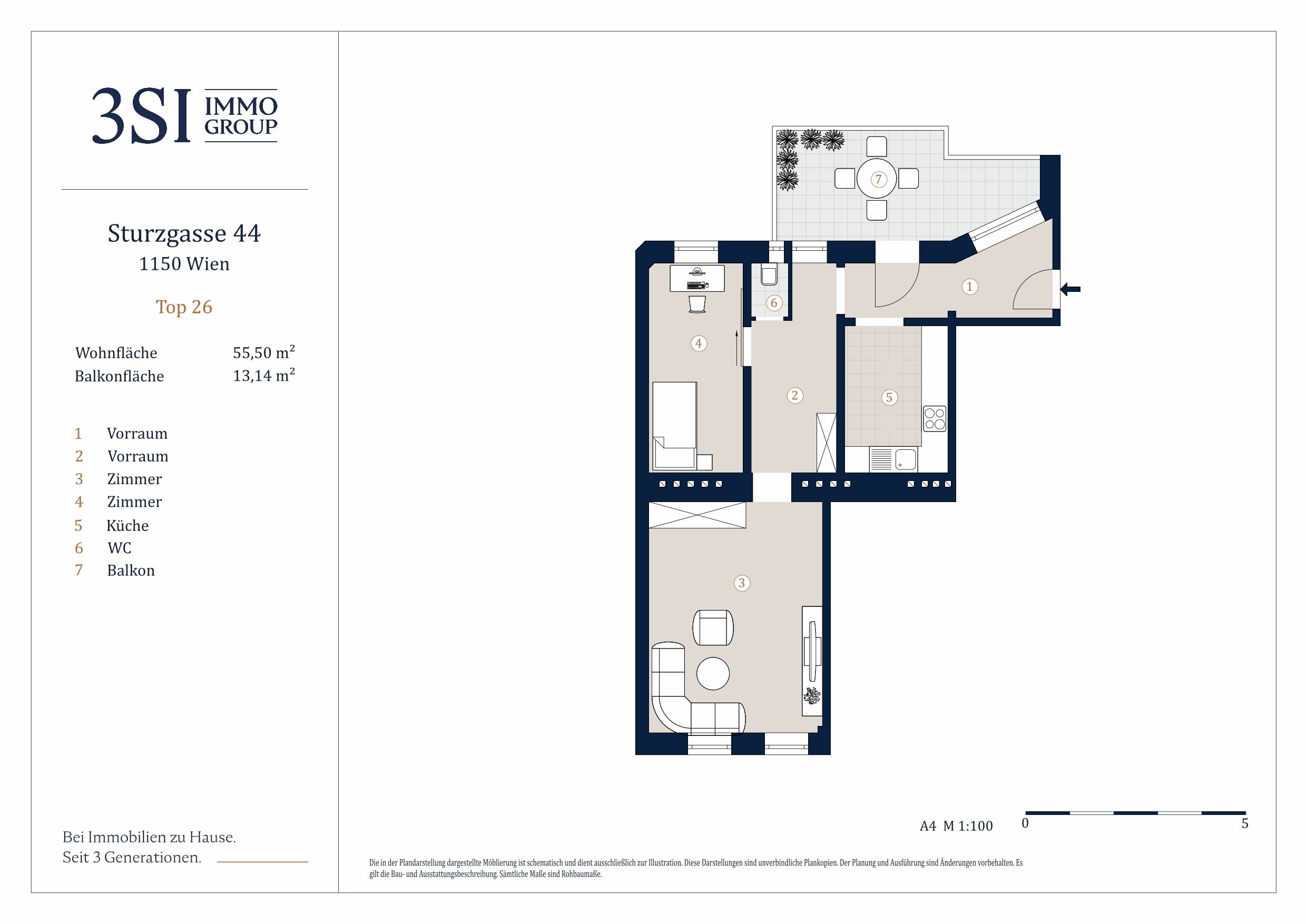 Provisionshinweis: Der guten Ordnung halber halten wir fest, dass bei einem erfolgreichen Geschäftsabschluss eine Provisionszahlung an die 3SI Makler GmbH in der zuvor ausgewiesenen Höhe zu entrichten ist. Die Höhe der Provision entspricht den Bestimmungen der geltenden Verordnung des Bundesministers für wirtschaftliche Angelegenheiten über Standes- und Ausübungsregeln für Immobilienmakler. Diese Provisionspflicht besteht auch dann, wenn Sie die Ihnen überlassenen Informationen an Dritte weitergeben. Letztlich weisen wir darauf hin, dass wir als Doppelmakler tätig sind und ein familiäres/wirtschaftliches Naheverhältnis zwischen der 3SI Makler GmbH und der Verkäuferin besteht.