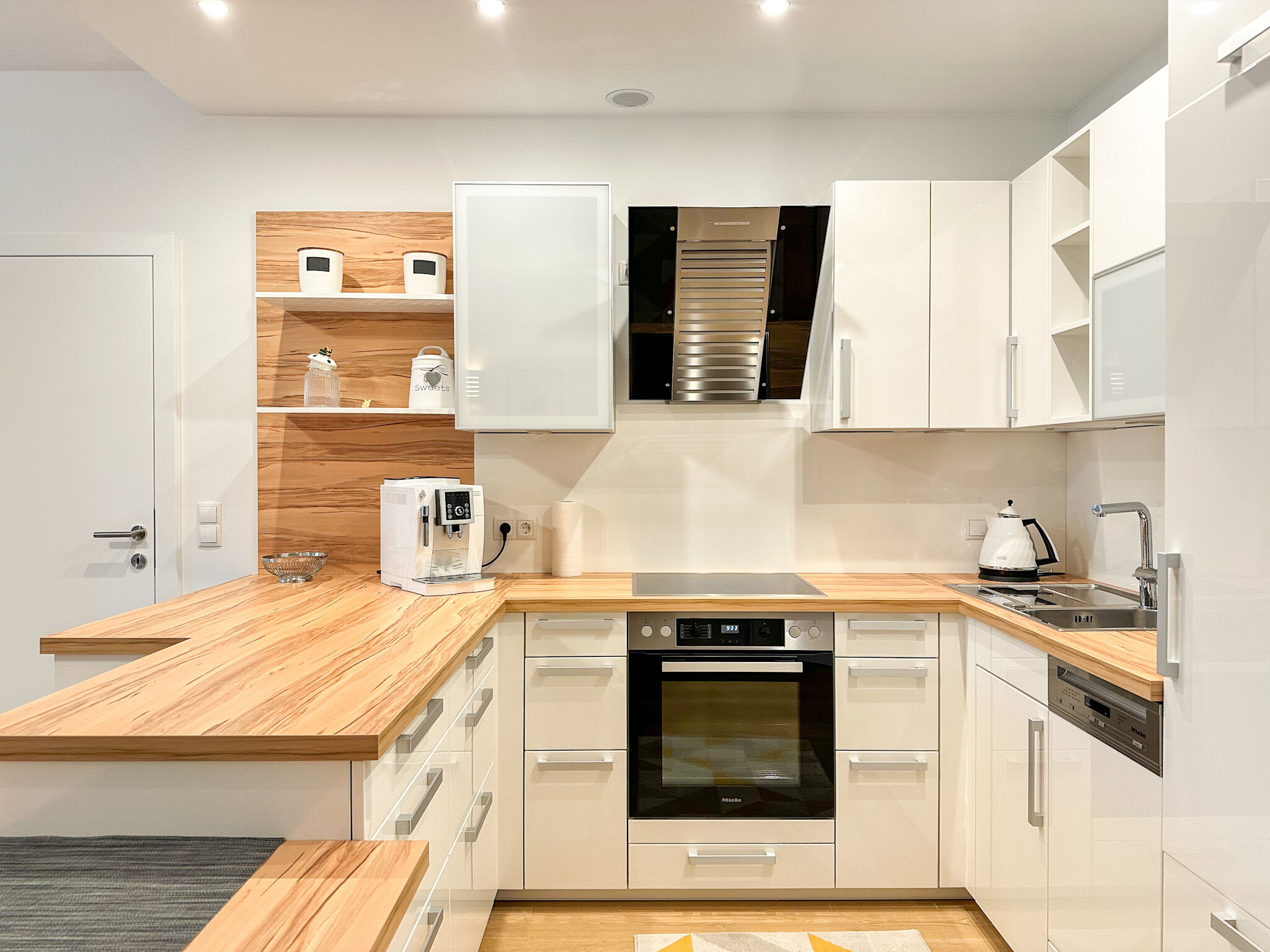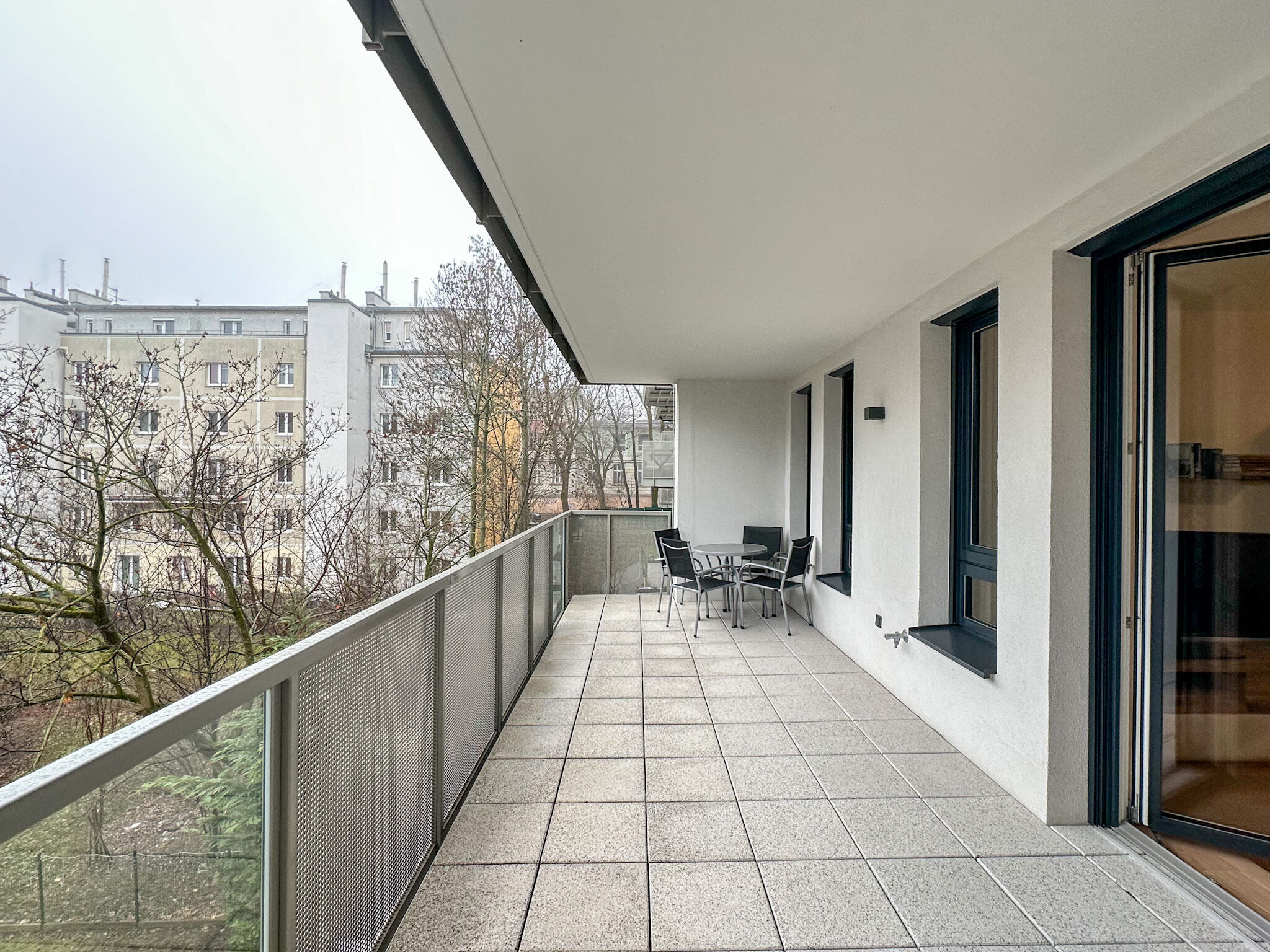 Herzstück der Wohnung ist die großzügige Wohnküche mit rund 32 m², die viel Raum für Wohnen, Kochen und Genießen bietet. Von hier aus gelangt man direkt auf den großen Balkon, der den Wohnraum ideal ins Freie erweitert.