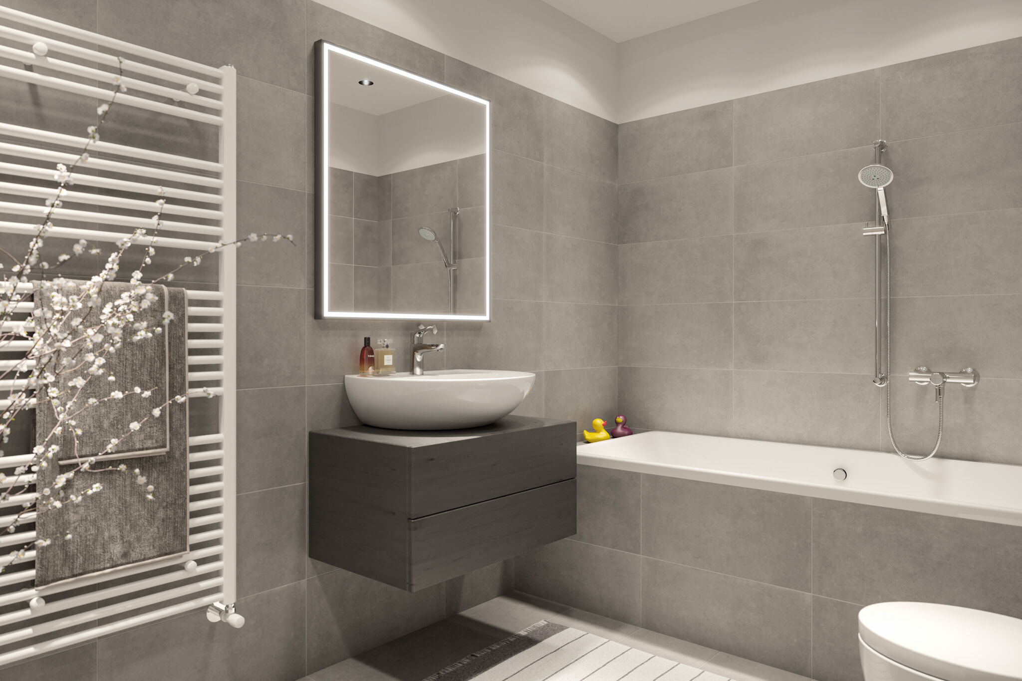 Bei den Bildern handelt es sich um Symbolfotos einer bereits fertiggestellten Wohnung mit ähnlicher Ausstattung.