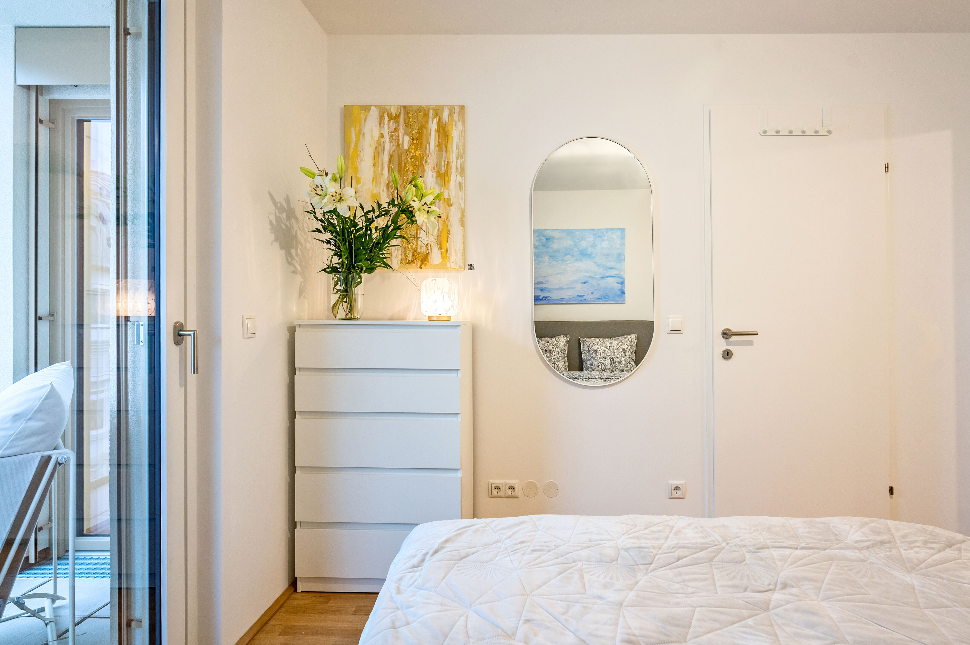 - Schlafzimmer (ca. 11 m²) mit direktem Zugang zum Badezimmer und zum Balkon
