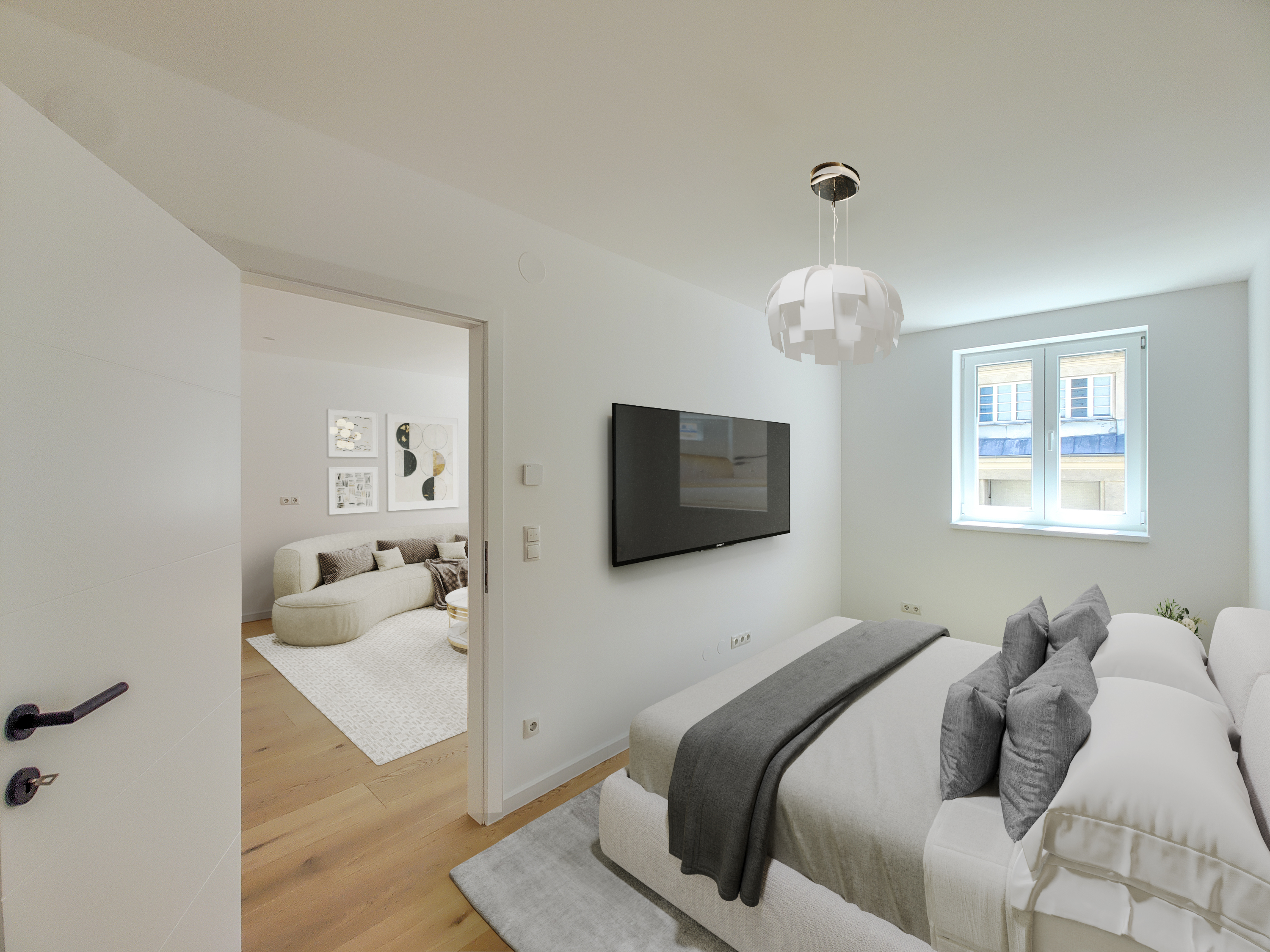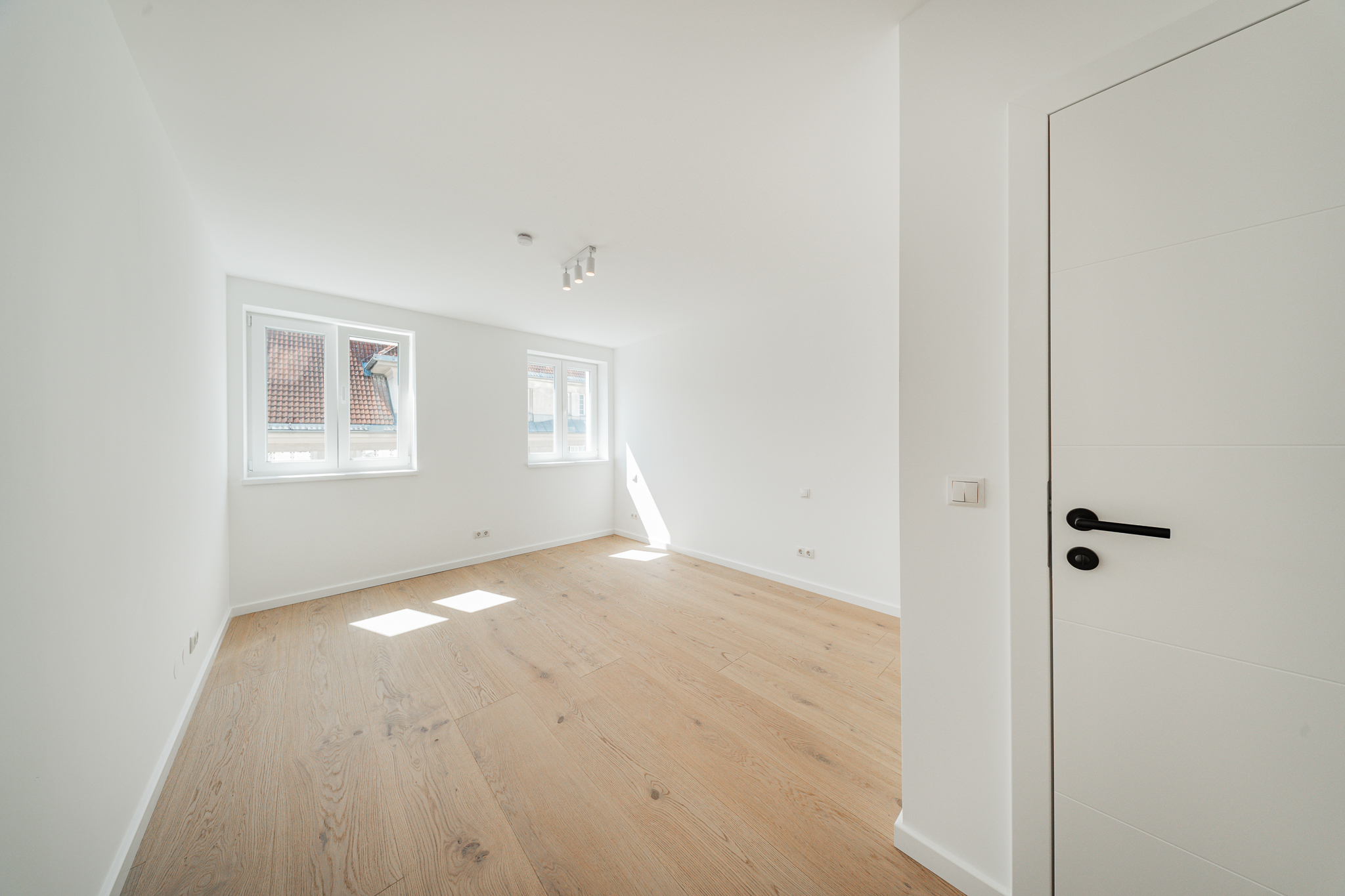 Das Hofgebäude, das 3.Obergeschoß als auch das Dachgeschoß zählen in diesem Projekt als rechtlicher Neubau. Daher würde bei einer Vermietung die freie Mietzinsvereinbarung zur Anwendung kommen.