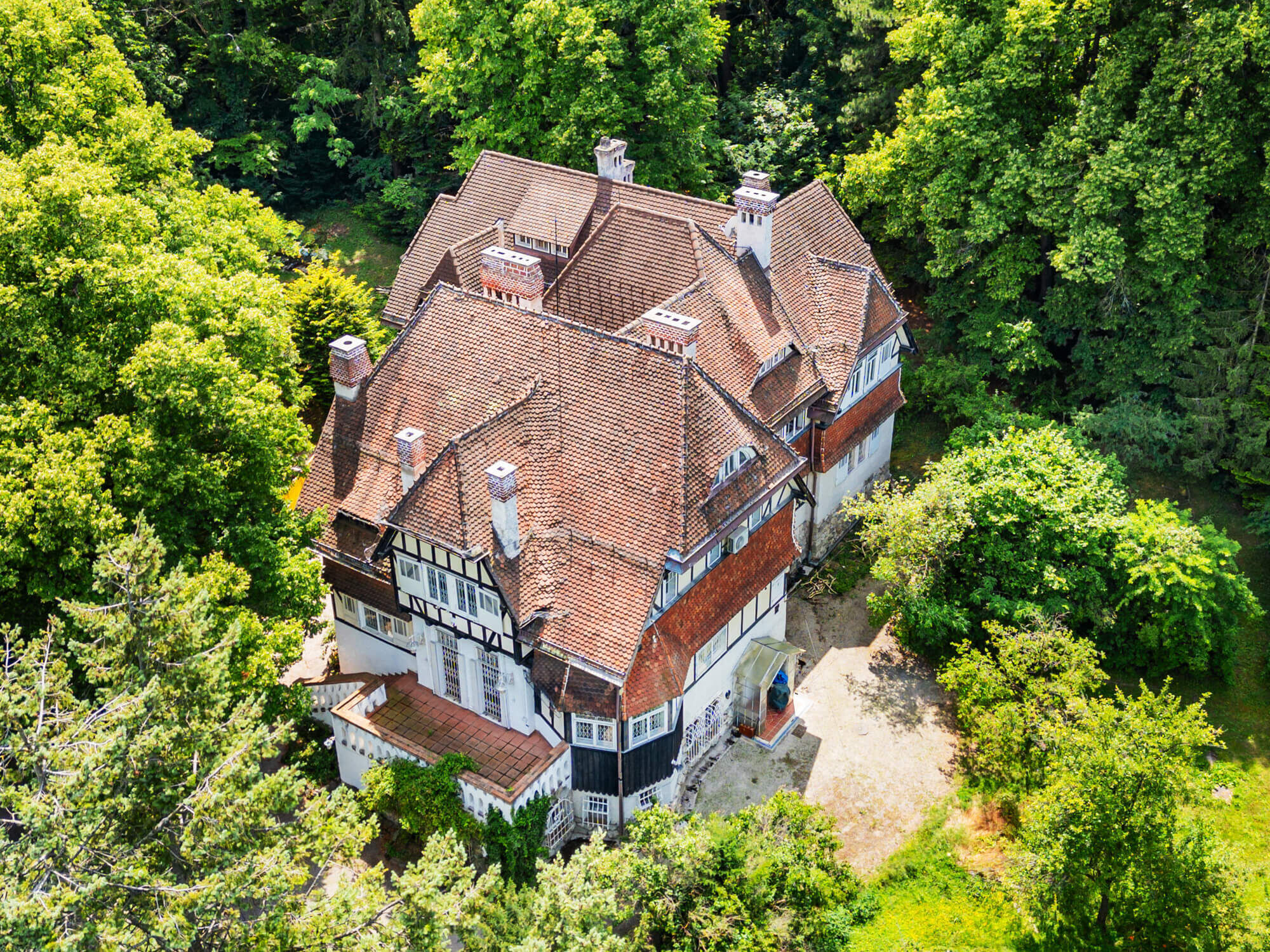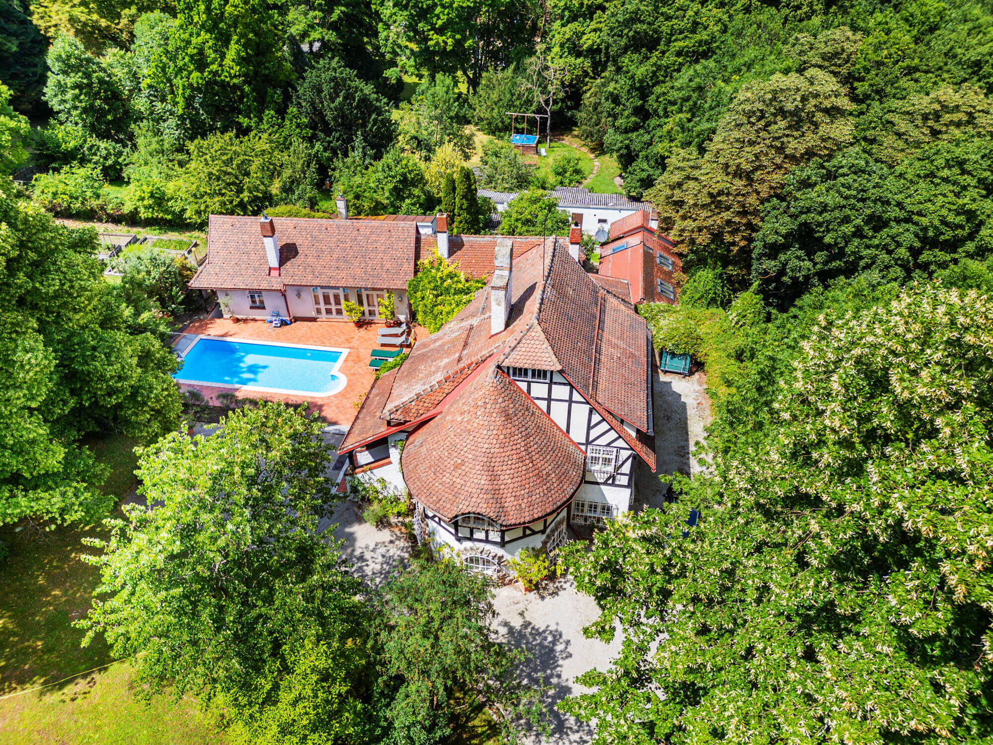 Auf dem über 11.500 m² großen Grundstück befinden sich derzeit ein Haupthaus – entworfen von Prof. Max Baron Ferstel – sowie eine Gärtnervilla mit Pool. Ergänzt wird das Anwesen durch einen separaten Baugrund, der zusätzliches Entwicklungspotenzial bietet.