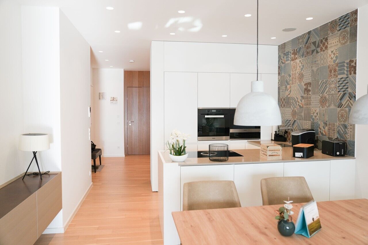 Eine besondere Rarität dieser hochwertig ausgestatteten ROOMS Designer-Seewohnung ist der unvergleichliche Seeblick aus sämtlichen Räumlichkeiten – Wohnen in seiner schönsten Form.