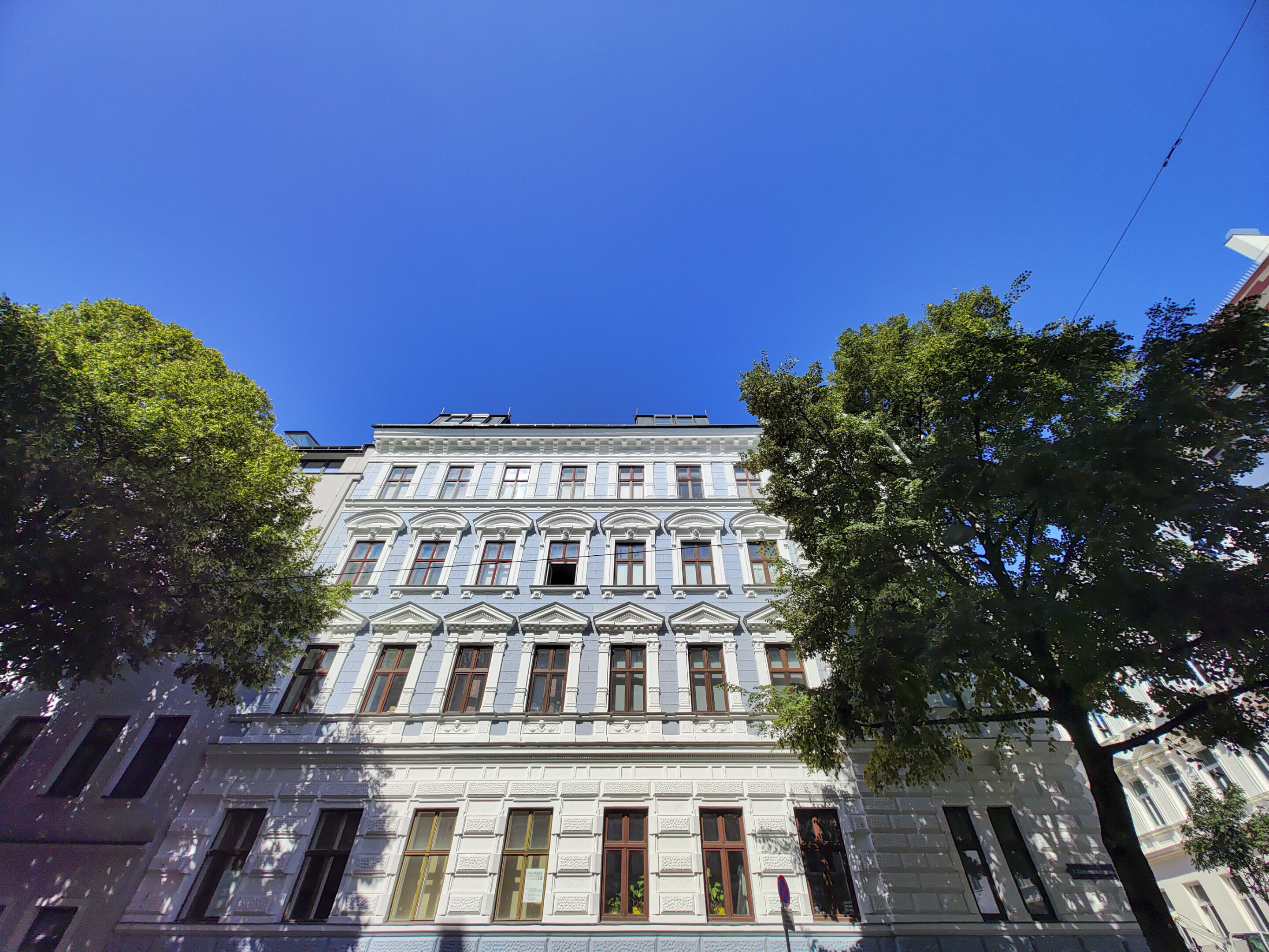 Dieses klassische Gründerzeit - Eckhaus aus ca. 1900, mit einem elegantem Entreé, wurde aufwändig im Eingangsbereich und Stiegenhaus revitalisiert. Das elegante Stiegenhaus ist neu ausgemalt und besticht durch sehr viele gut erhaltene Stilaltbauelemente. Ein Personenlift wurde im Zuge des Dachgeschossausbaus errichtet, die Fassade wurde ausgebessert und gemalt und die Steigleitungen adaptiert/erneuert. Dieses stilvolle Eckhaus umfasst ein Erdgeschoss, 4 Regelgeschosse und das Dachgeschoss mit 2 Ebenen.