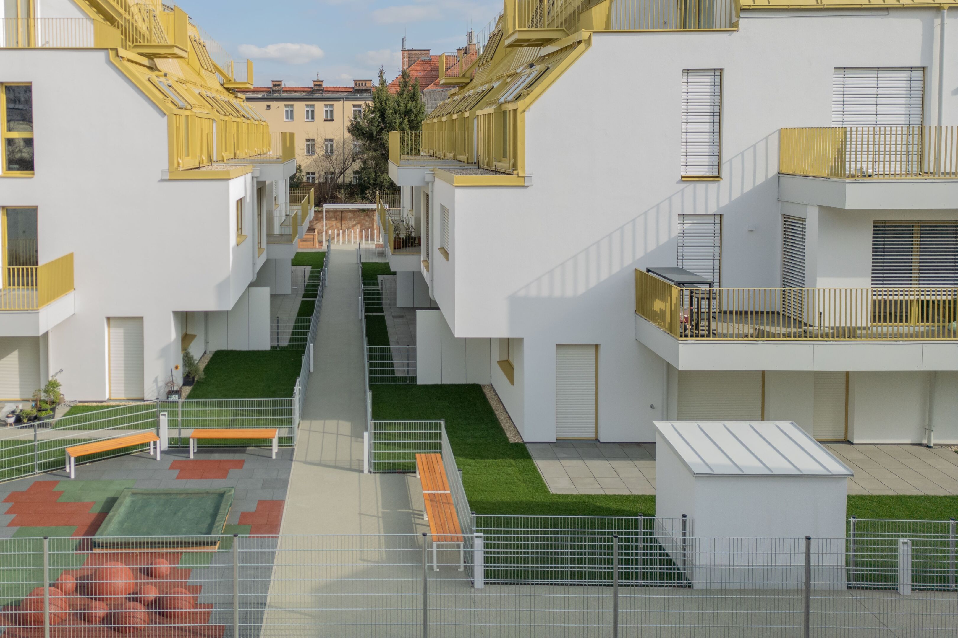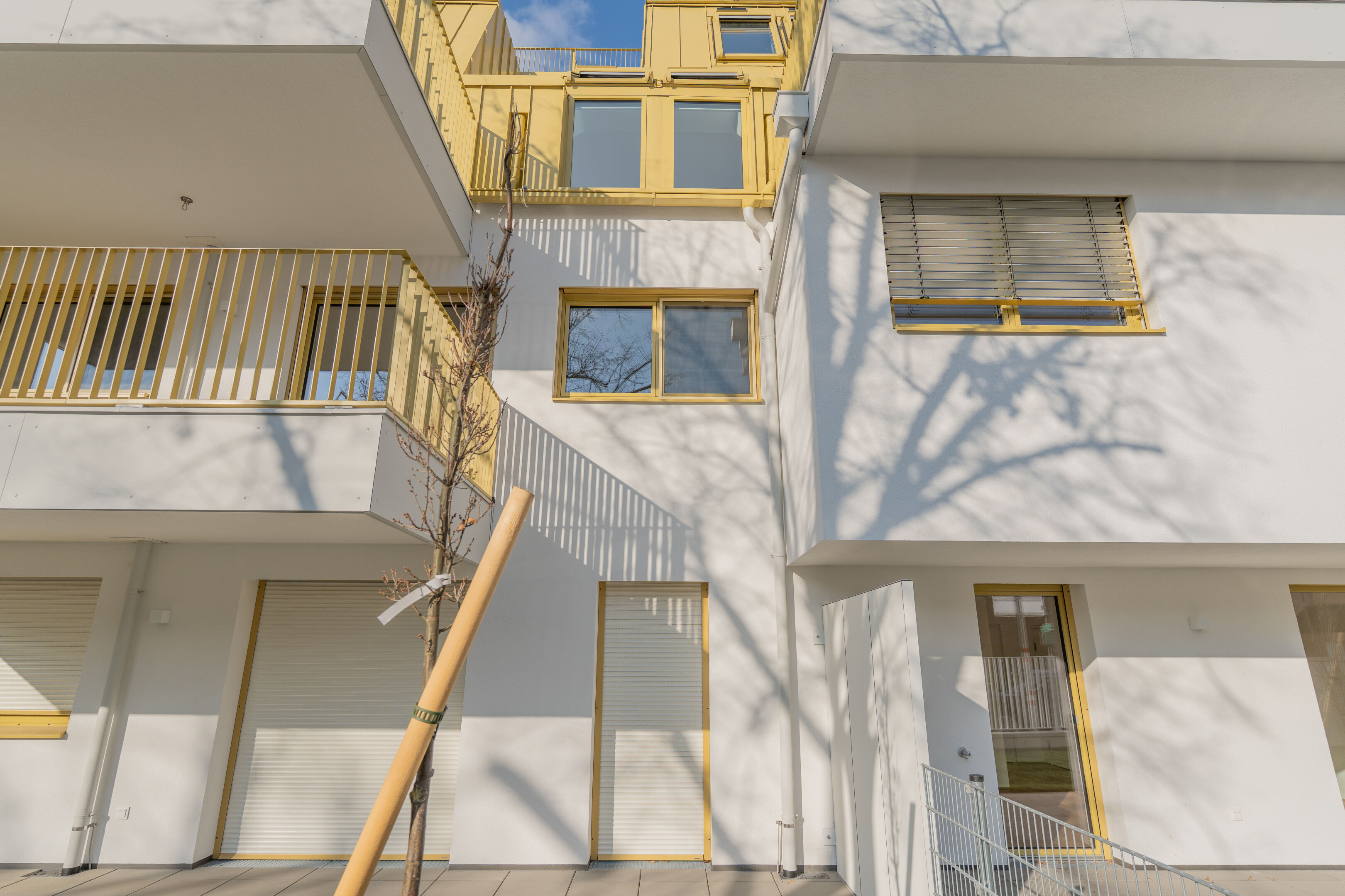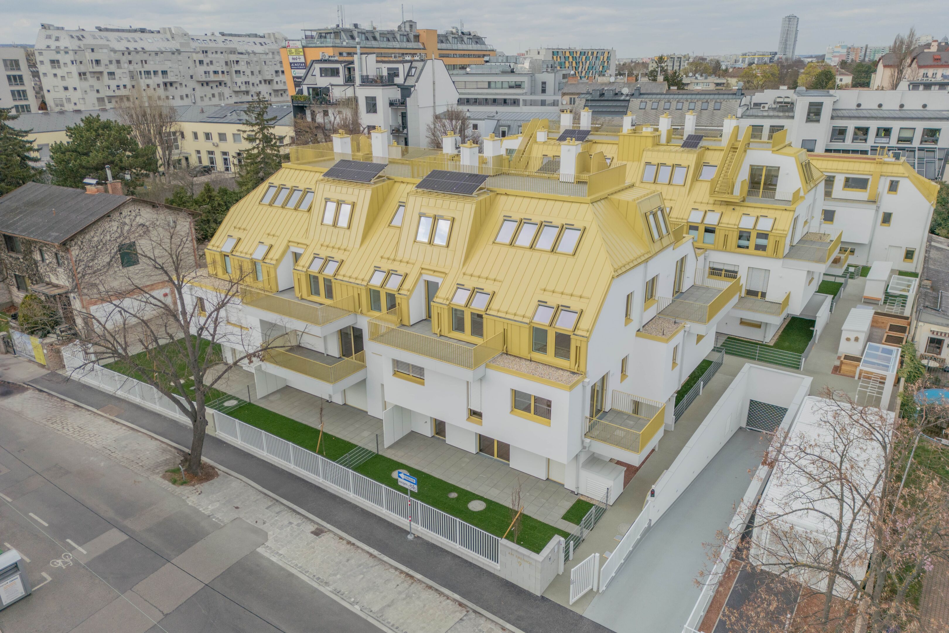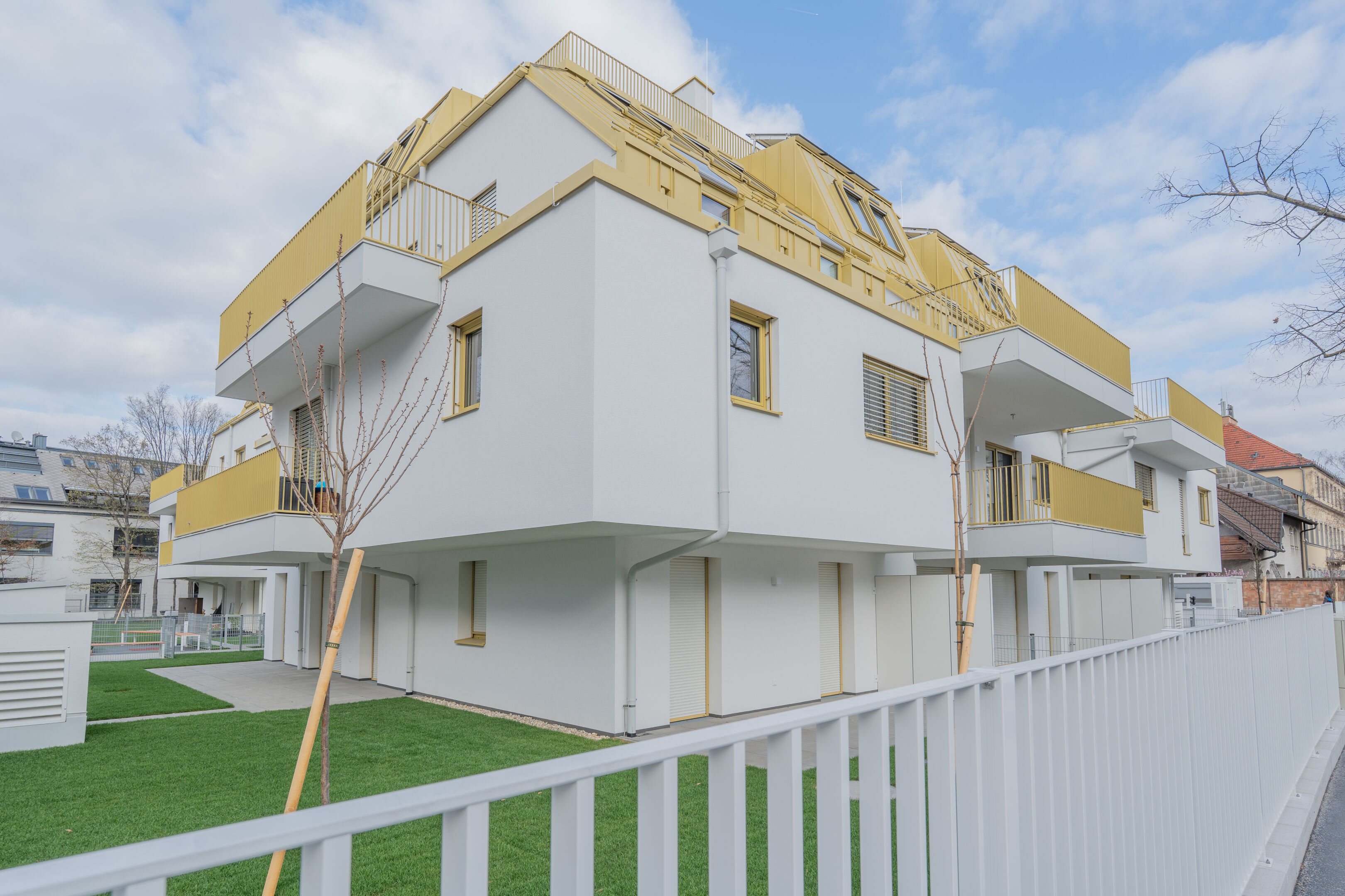 Familien. Jede Wohnung verfügt über eine private Freifläche – sei es ein Balkon, eine Dachterrasse oder eine Terrasse – und erweitert so den Wohnraum nach draußen. Die ruhige Lage am Freihof macht jede Außenfläche zum perfekten Ort für Lebendigkeit und Ruhe.
