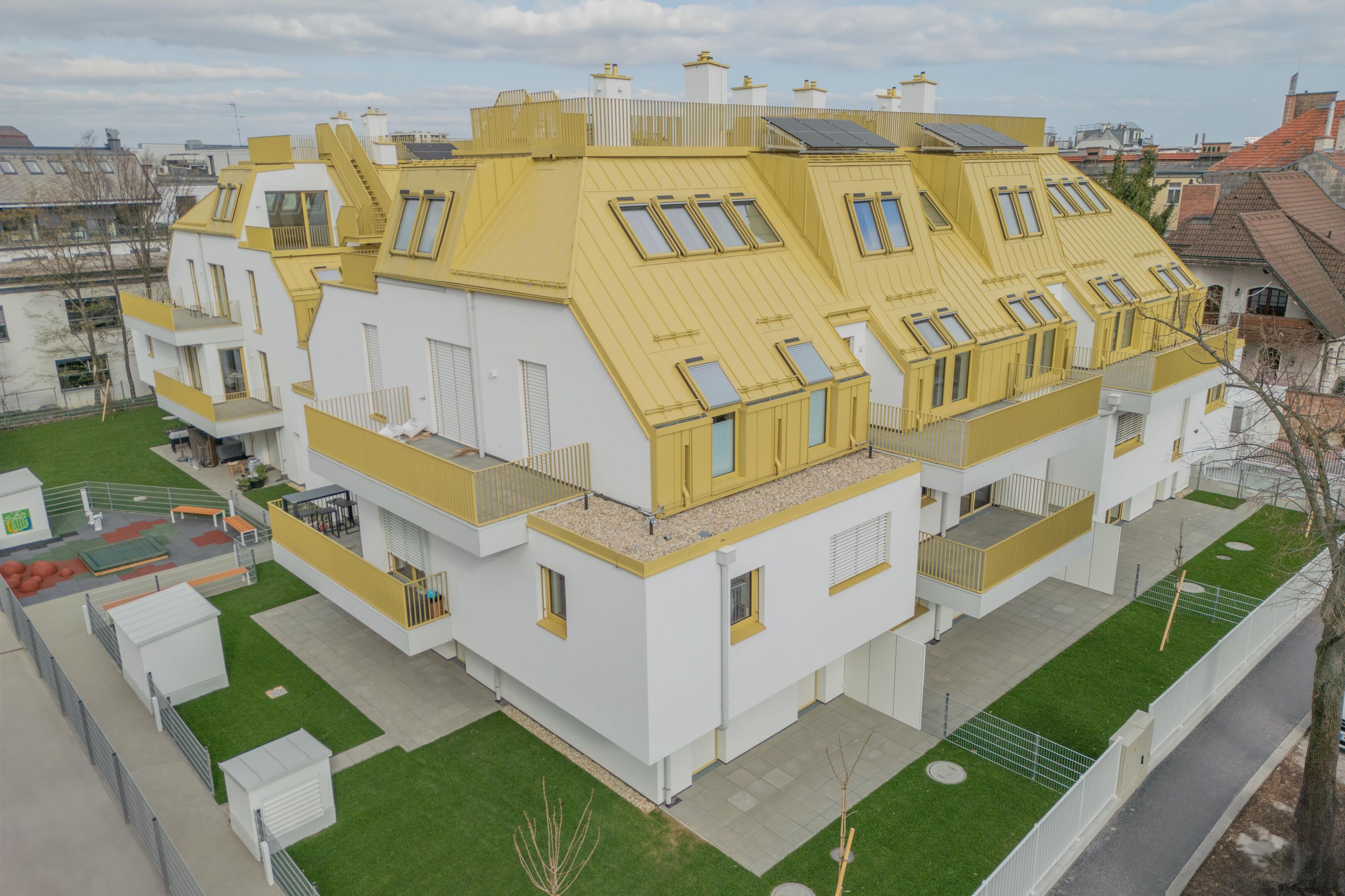 Grundstück manifestiert. Zwei Baukörper und zwei Townhouses bieten ihren Bewohnern viel Raum zur individuellen Entfaltung und machen ihr neues Zuhause zu einer persönlichen