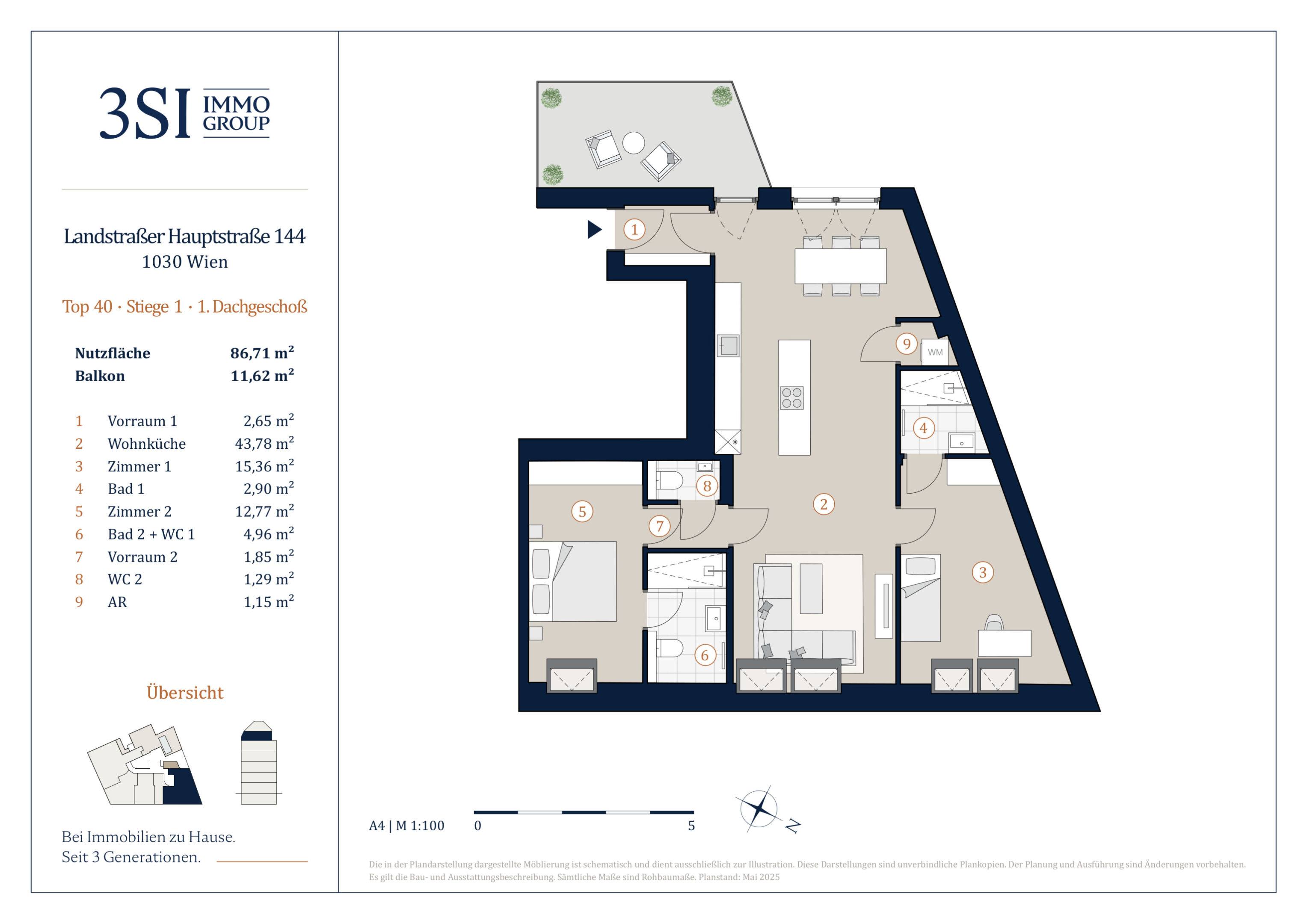 | 1/40 | 1. Dachgeschoß | 3 | 86,71 m² | 11,62 m² | 11,62 m² | € 1.150.000 | Verfügbar | ||||