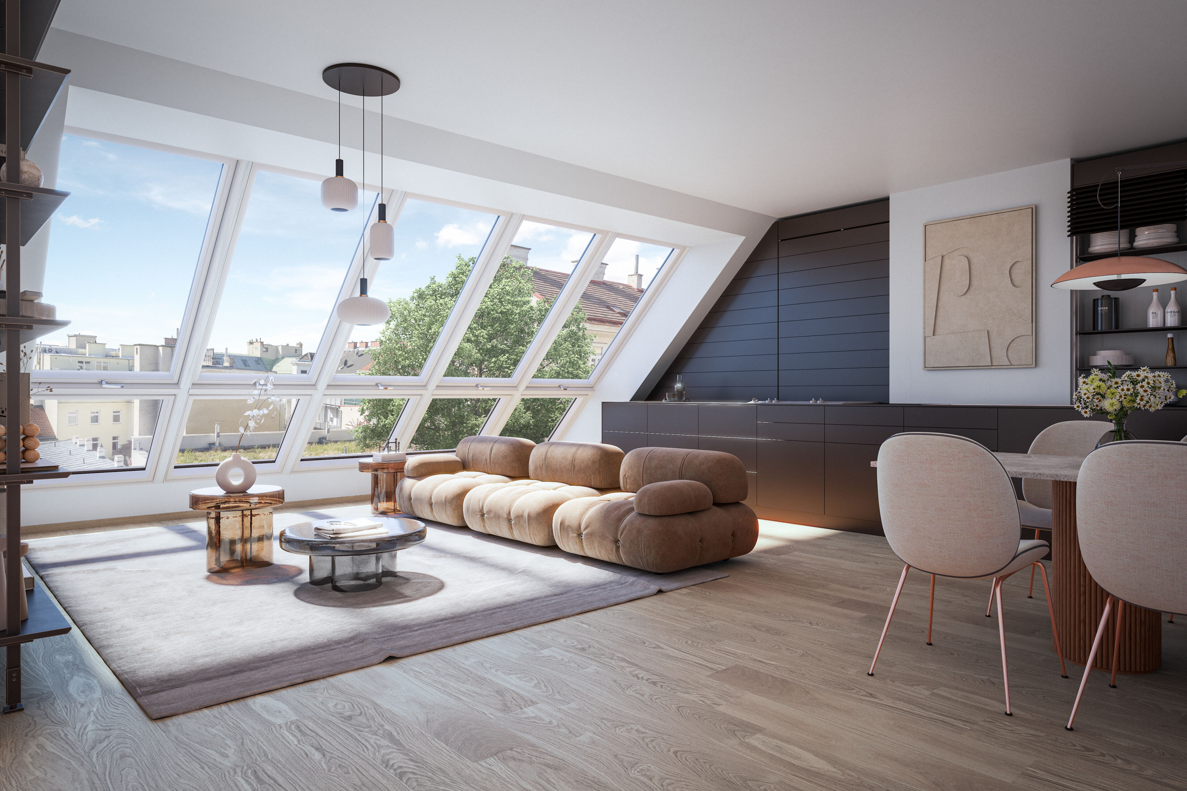 Was für ein Paar! Im Herzen von Währing vereinen sich zwei Gebäude zu einem unwiderstehlichen Wohnensemble. Ein Zuhause für diejenigen, die von außergewöhnlicher Eleganz und einzigartigem Komfort verführt werden möchten. Clara und Robert, das sind zwei Wohnhäuser mit 47 Eigentumswohnungen auf Stiege 1, 38 Eigentumswohnungen und 14 Geschäftslokalen auf steige 2 mitten im Geschehen von Währing – und das bei einer einmalig ruhigen Lage. Ob Rückzug im eigenen Garten oder direkte Anbindung ans Stadtleben – The Temptation macht beides möglich! Alle Eigentumswohnungen verfügen über 2 bis 5 Zimmer mit Größen von 37 bis 180 m² und perfekt konzipierten Grundrissen. Großzügige Balkone, Terrassen und atemberaubende private Gärten auf verschiedenen Ebenen erhöhen den Wohnkomfort. Ein besonderes Highlight ist der begrünte Innenhof, der sowohl ein Treffpunkt als auch eine Ruheoase ist. Dort, wo Nachhaltigkeit, Ästhetik und Lebensqualität aufeinandertreffen, entsteht eine unwiderstehliche Versuchung: ein modernes, frisches Leben, das zum Verlieben schön ist.
