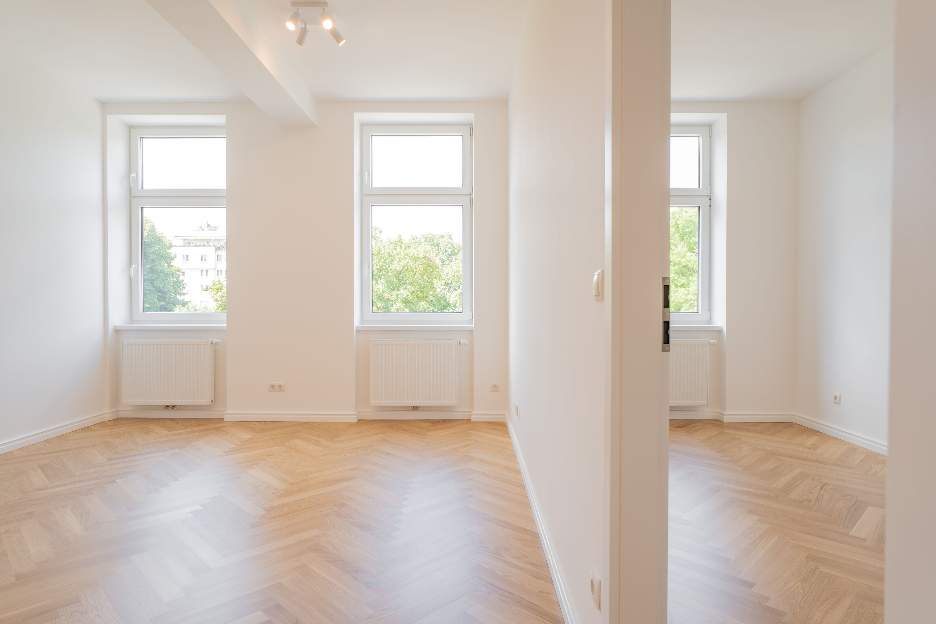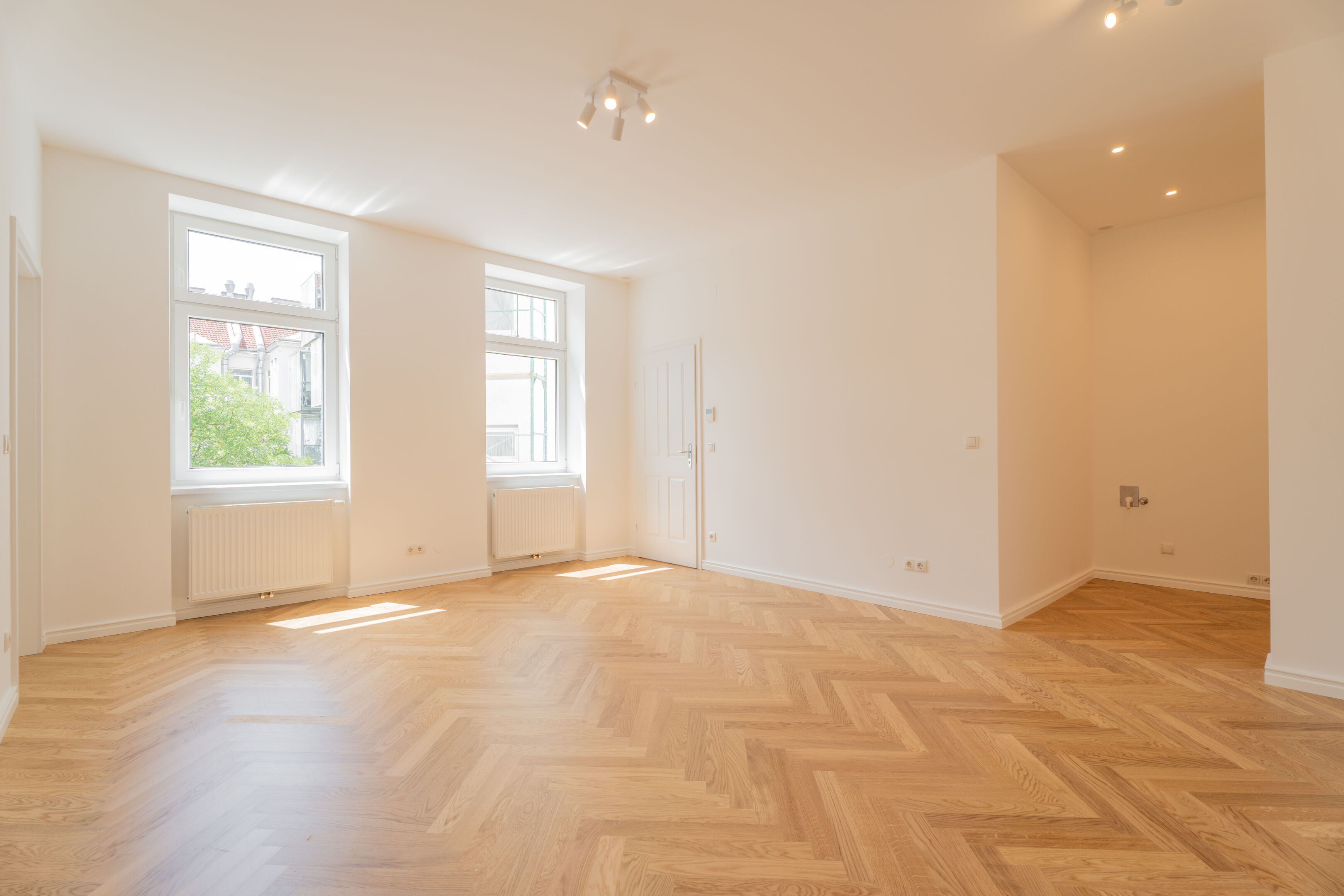 - Edle Eichenparkettböden in zeitlosem Fischgrät verlegt