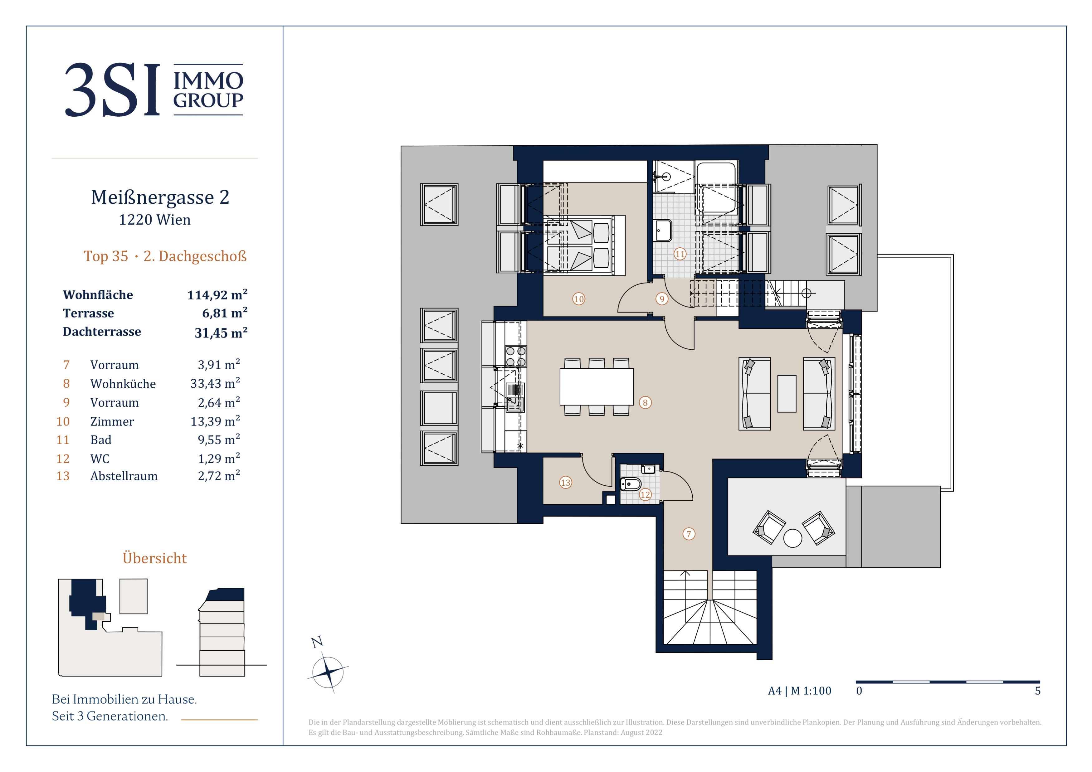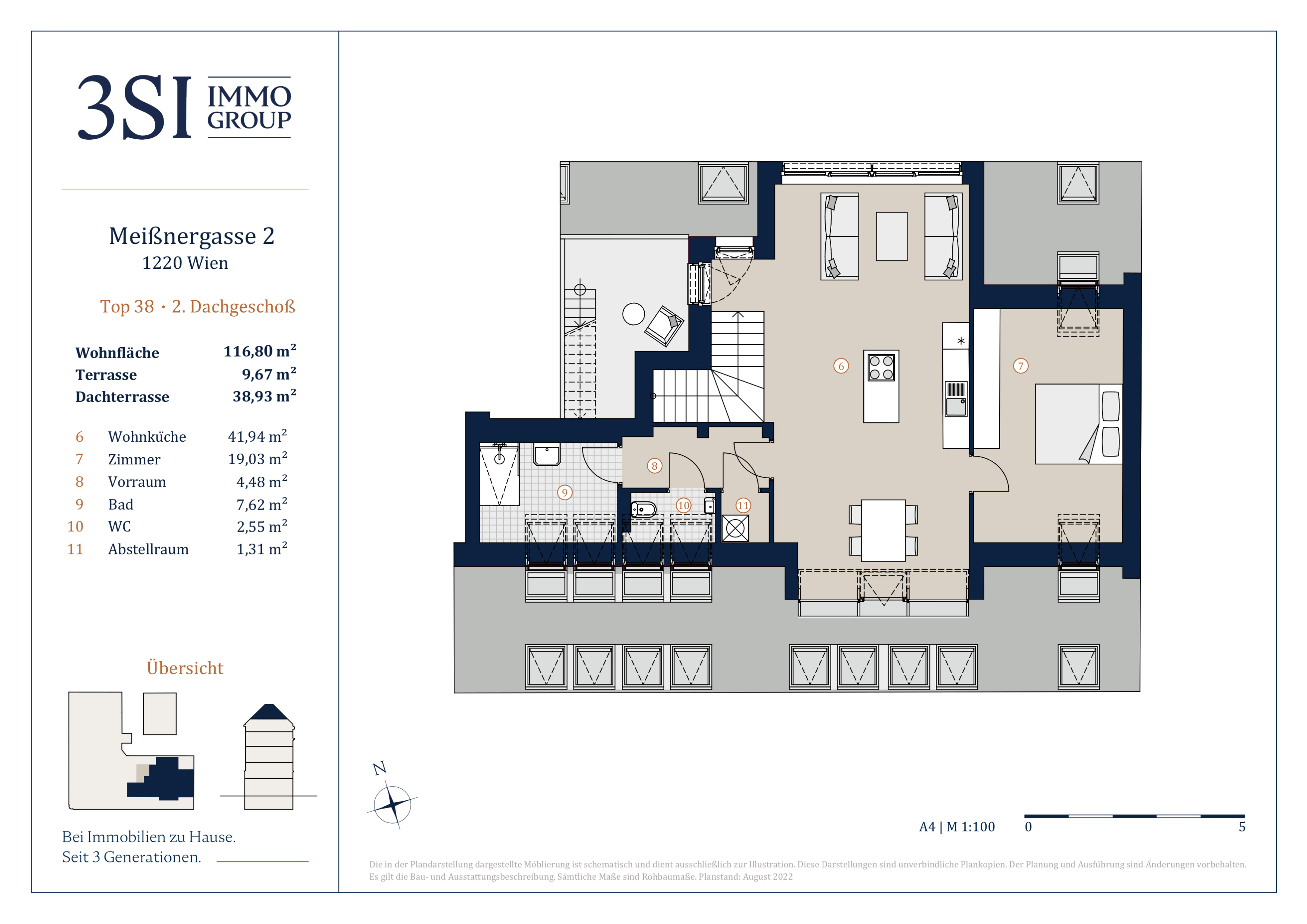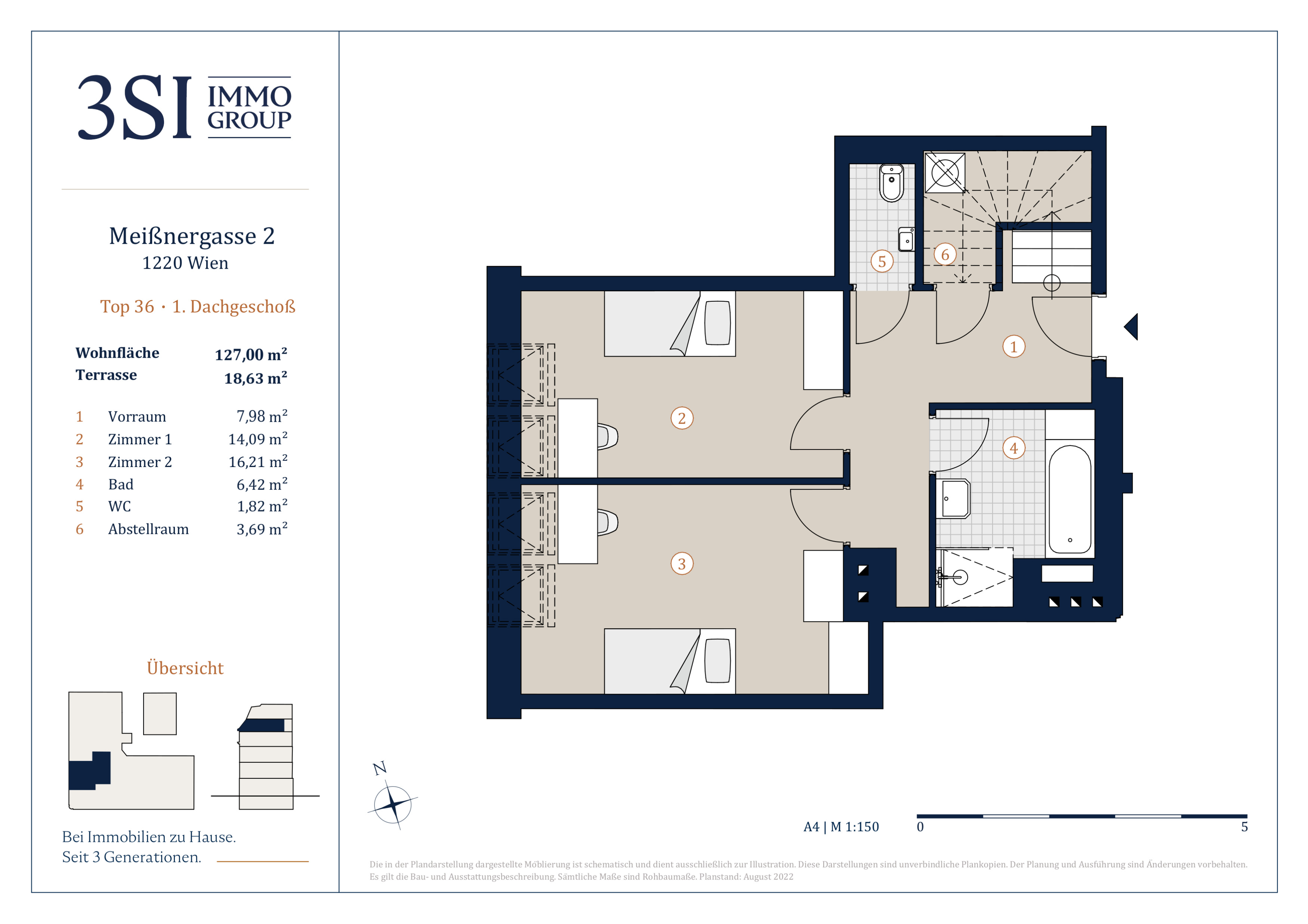 Provisionshinweis: Der guten Ordnung halber halten wir fest, dass bei einem erfolgreichen Geschäftsabschluss eine Provisionszahlung an die 3SI Makler GmbH in der zuvor ausgewiesenen Höhe zu entrichten ist. Die Höhe der Provision entspricht den Bestimmungen der geltenden Verordnung des Bundesministers für wirtschaftliche Angelegenheiten über Standes- und Ausübungsregeln für Immobilienmakler. Diese Provisionspflicht besteht auch dann, wenn Sie die Ihnen überlassenen Informationen an Dritte weitergeben. Letztlich weisen wir darauf hin, dass wir als Doppelmakler tätig sind und ein familiäres/wirtschaftliches Naheverhältnis zwischen der 3SI Makler GmbH und der Verkäuferin besteht.