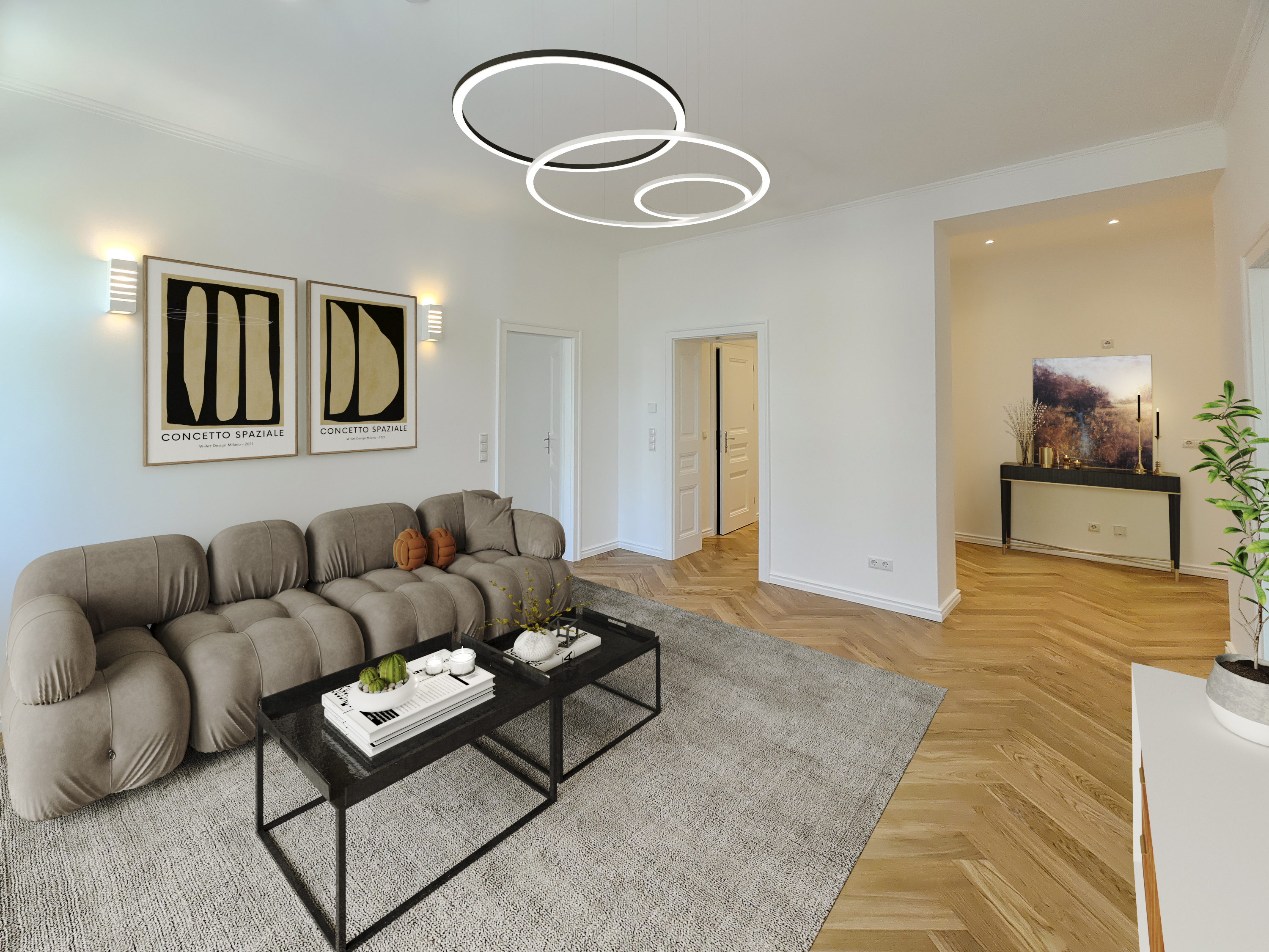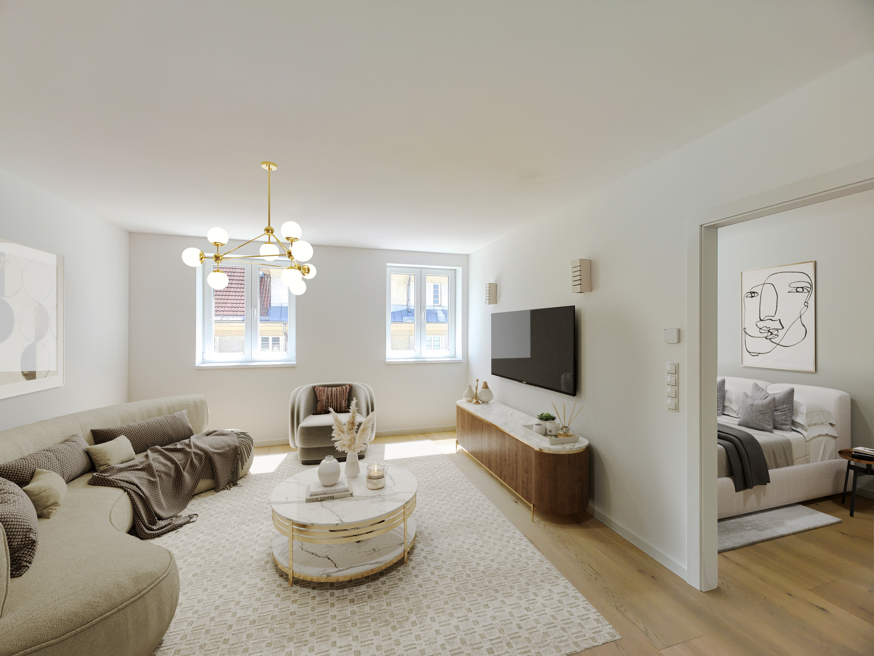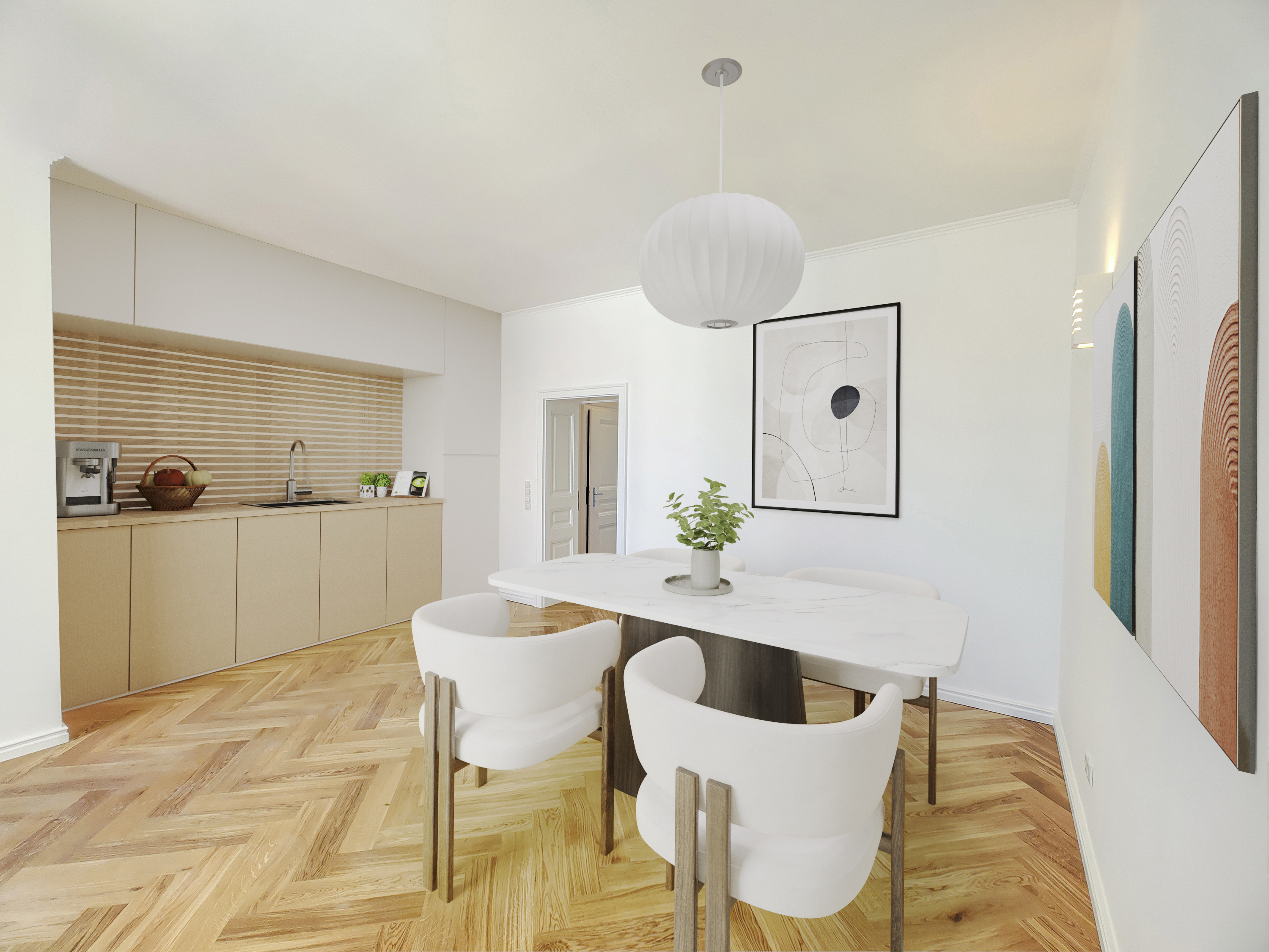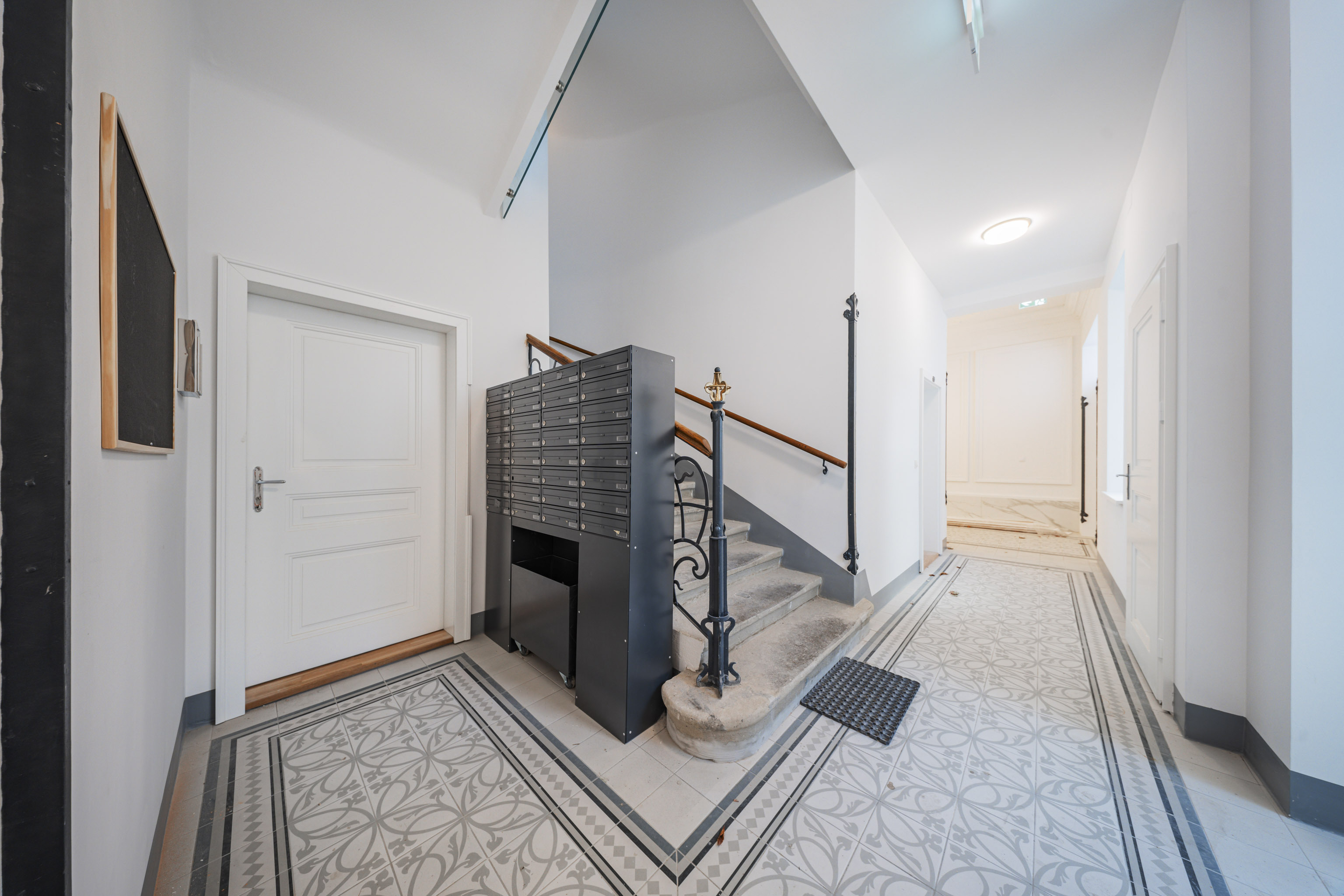 Dank der nachhaltigen Sanierung und dem Anschluss an das Fernwärmenetz konnte der Energiewert der Regelgeschoße von 180 kWh/m² auf hervorragende 92 KWH/m²A gesenkt werden. Dadurch genießen die Bewohner nicht nur den Charme eines stilvollen Altbaus, sondern profitieren auch von einer erheblichen Energieeffizienz und niedrigeren Betriebskosten.