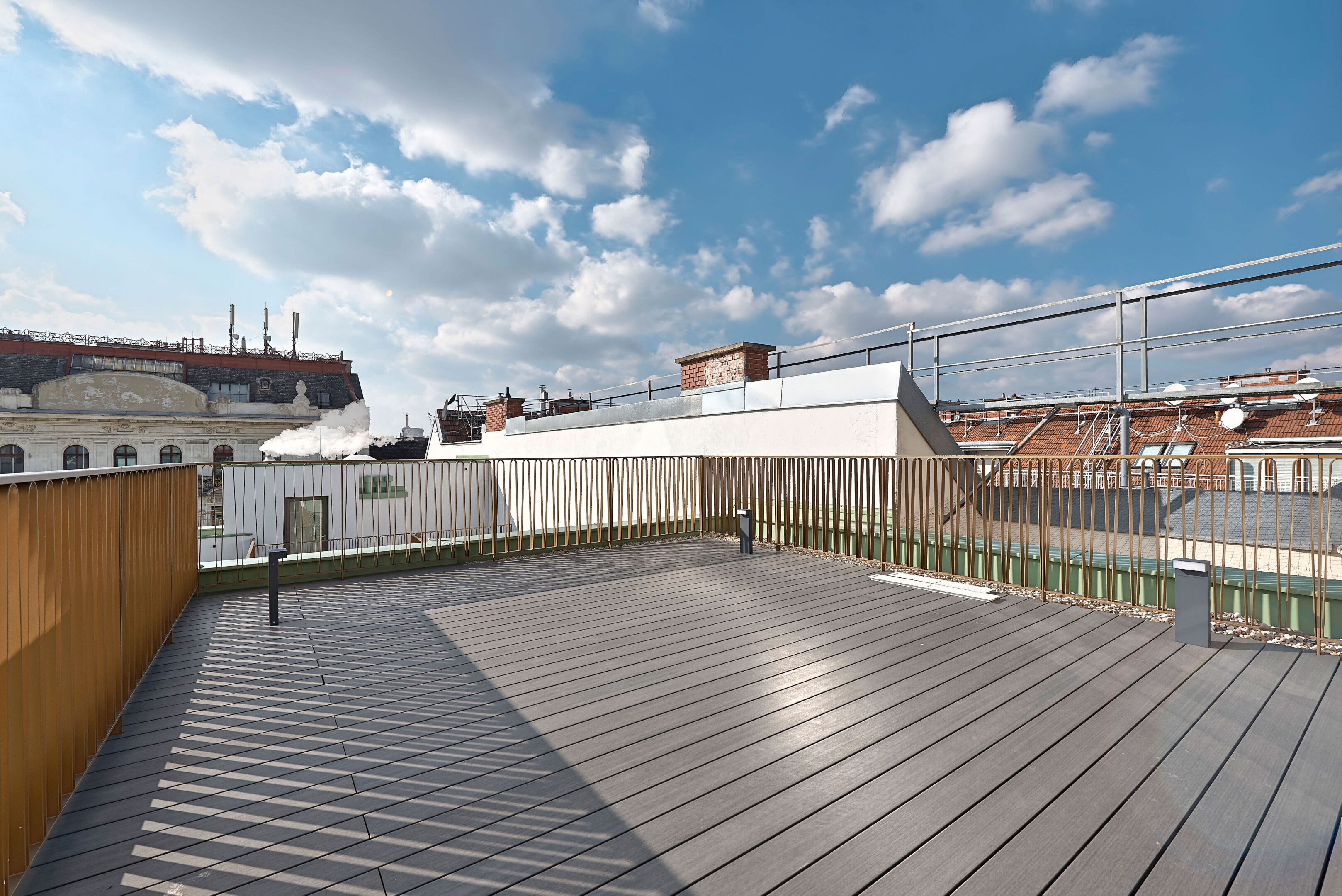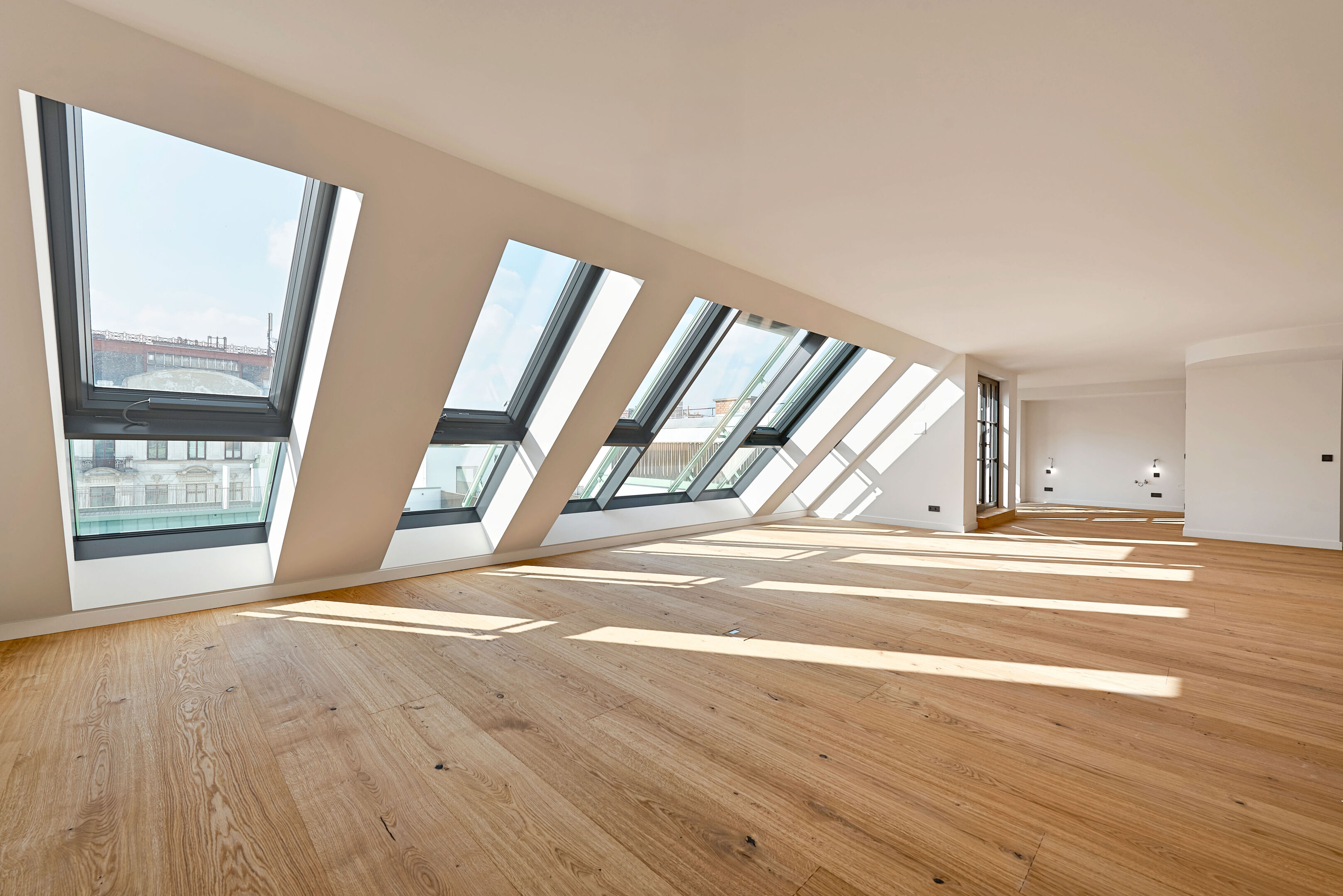 Dieses einzigartige 4-Zimmer-Penthouse mit Privatsphäre befindet sich auf einer Ebene und verfügt über ca. 173 qm Wohnfläche sowie 3 Terrassen im Ausmaß von über 200 qm – zwei davon auf der Wohnebene und eine grandiose Dachterrasse mit Blick über den Naschmarkt.