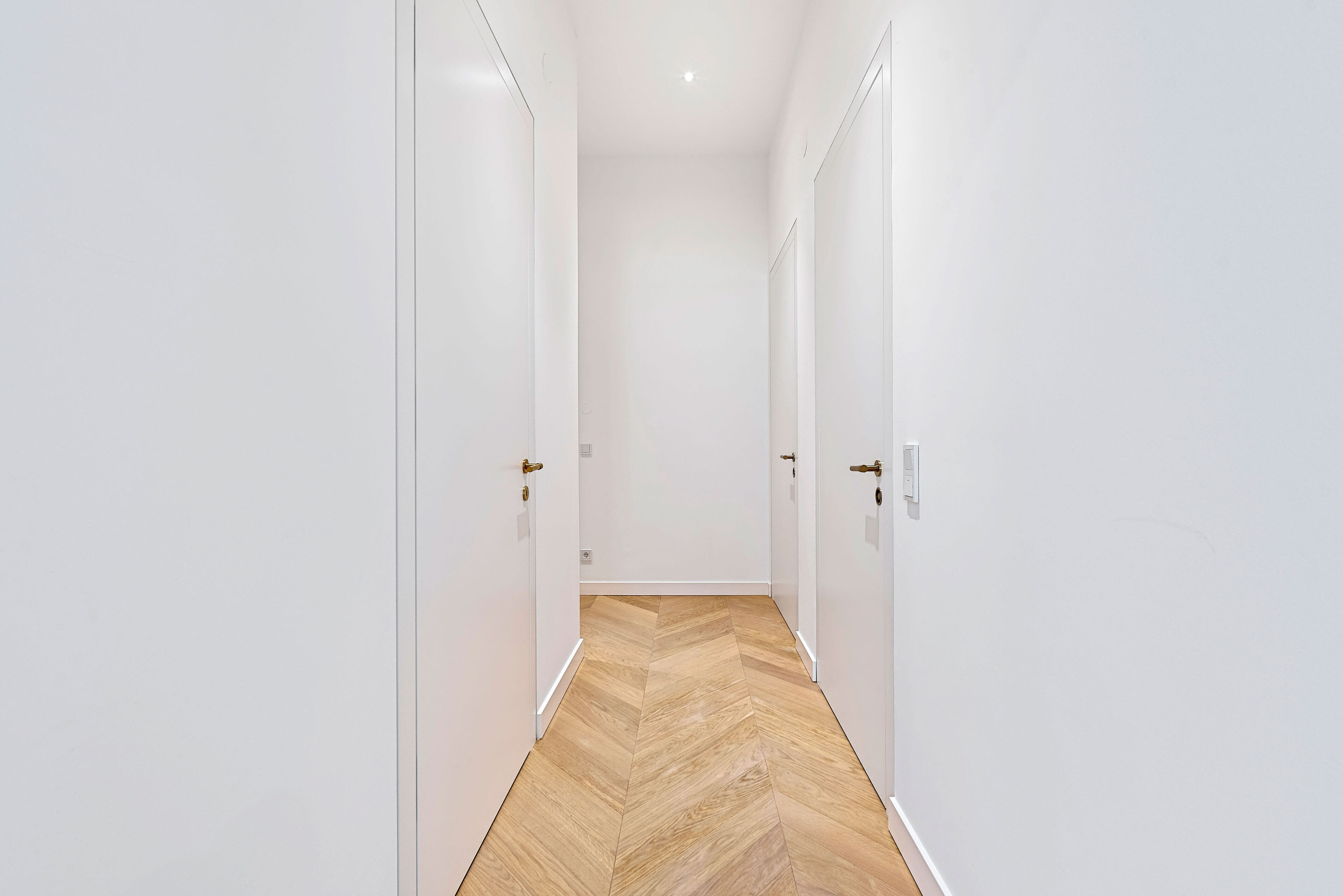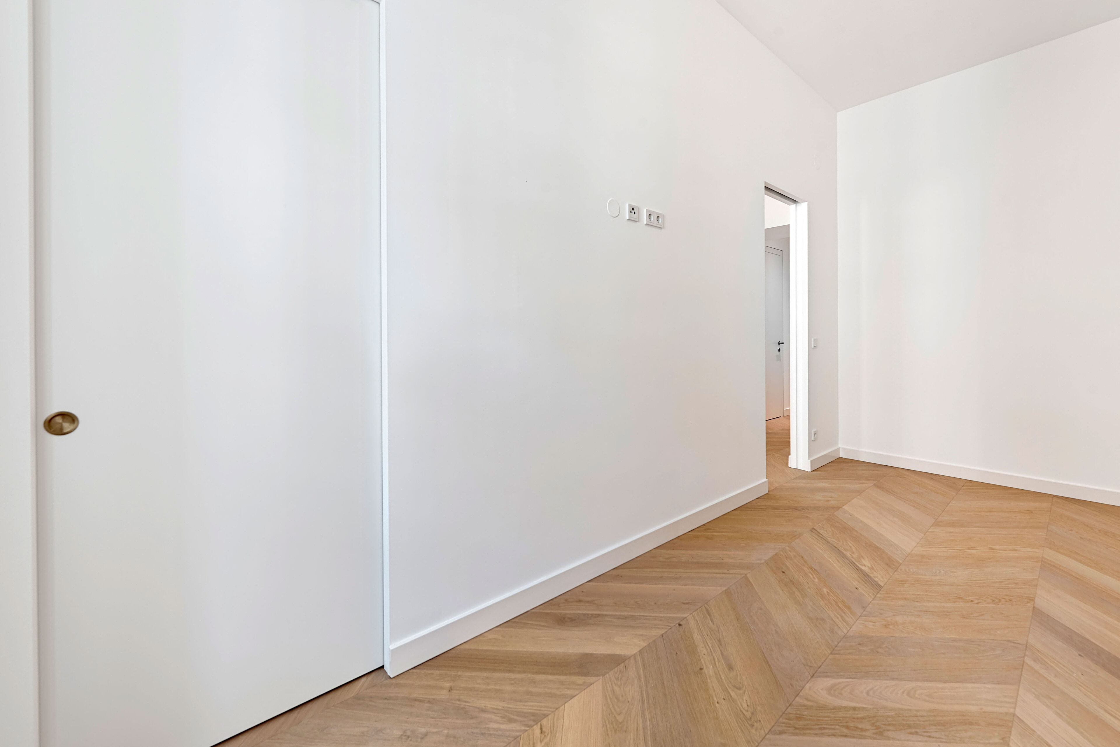 Über den Vorraum gelangt man in die Wohnküche mit ca. 21 qm, das Badezimmer mit ca. 5 qm, in das separate WC mit Handwaschbecken sowie in den Abstellraum mit Waschmaschinen-/Trockneranschluss. Das Schlafzimmer im Ausmaß von ca. 12 qm ist durch zwei Schiebetüren vom Wohnraum aus zu begehen. Die Raumhöhe beträgt ca. 3,30 m.