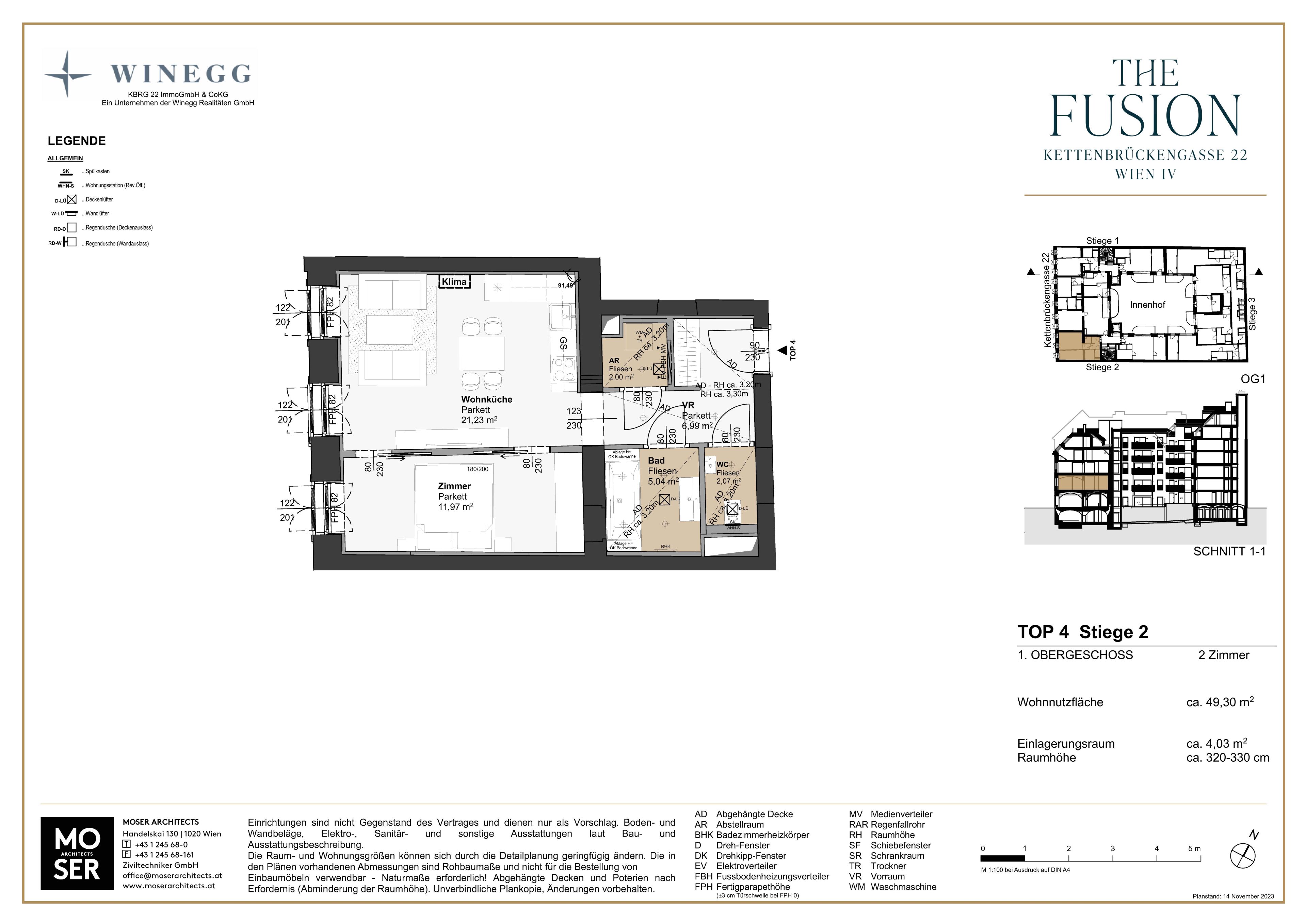 Diese kompakte Wohneinheit verfügt über ca. 49,41 qm, befindet sich im 1. Liftstock auf Stiege 2 und ist straßenseitig in Südwest-Ausrichtung auf die Kettenbrückengasse ausgerichtet.