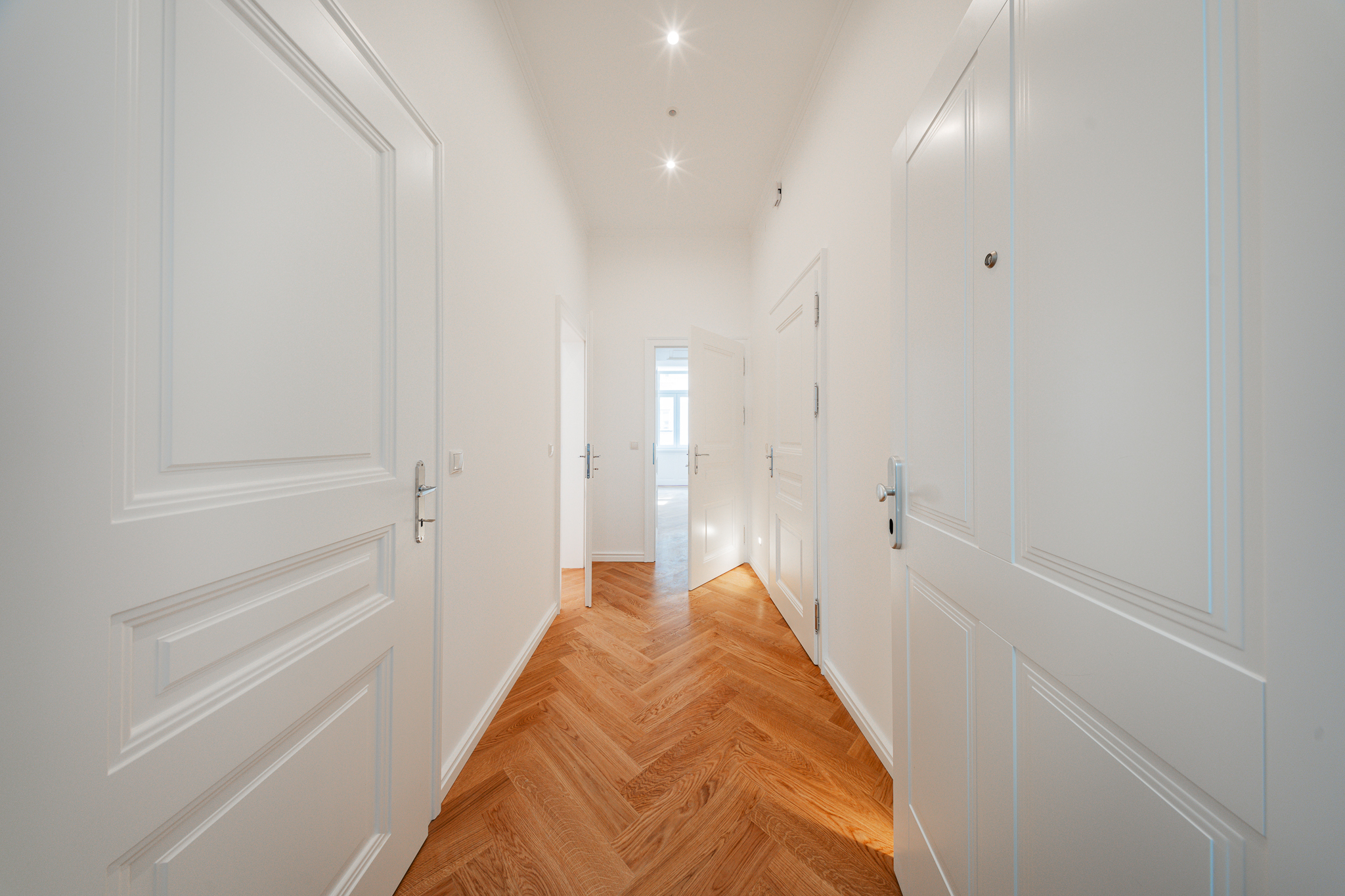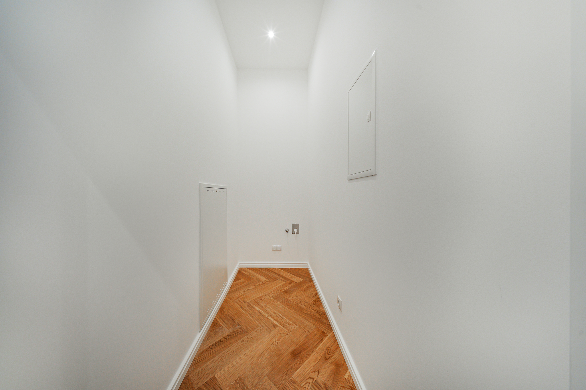 Dank der nachhaltigen Sanierung und dem Anschluss an das Fernwärmenetz konnte der Energiewert der Regelgeschoße von 180 kWh/m² auf hervorragende 92 KWH/m²A gesenkt werden. Dadurch genießen die Bewohner nicht nur den Charme eines stilvollen Altbaus, sondern profitieren auch von einer erheblichen Energieeffizienz und niedrigeren Betriebskosten.