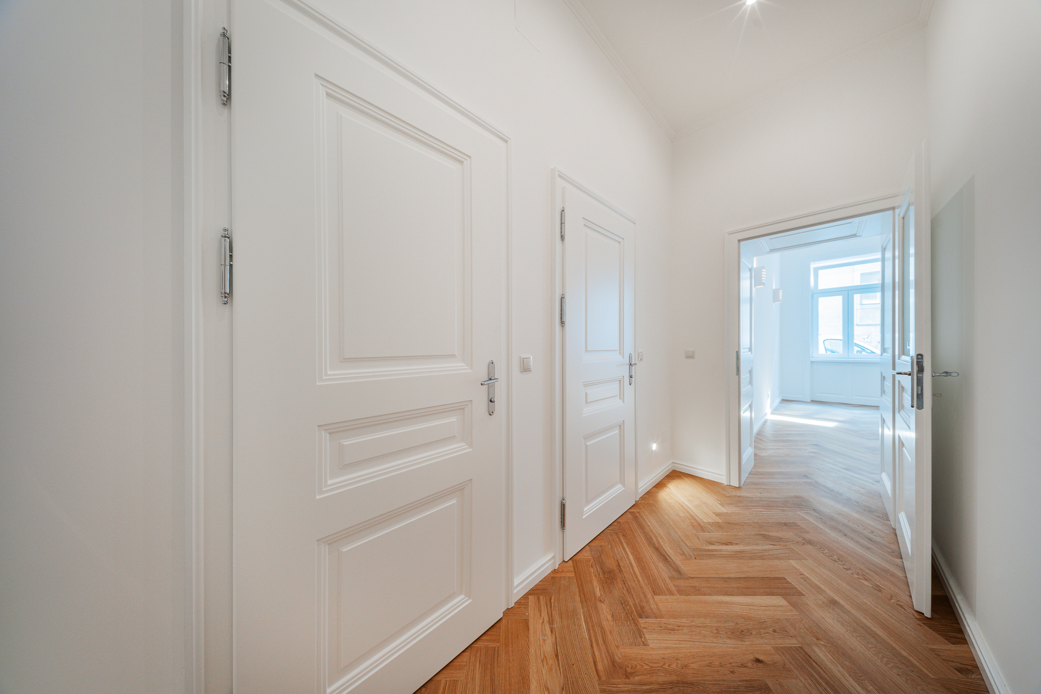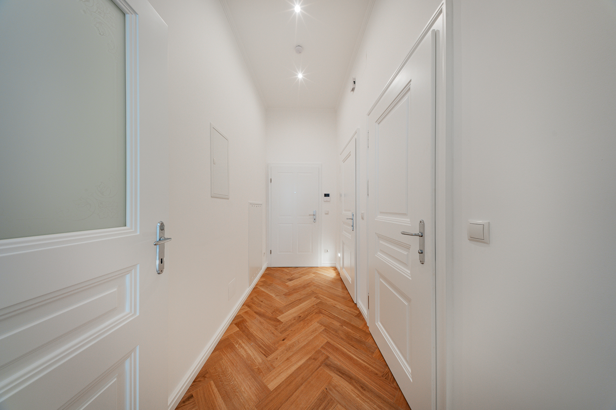 Dank der nachhaltigen Sanierung und dem Anschluss an das Fernwärmenetz konnte der Energiewert der Regelgeschoße von 180 kWh/m² auf hervorragende 92 KWH/m²A gesenkt werden. Dadurch genießen die Bewohner nicht nur den Charme eines stilvollen Altbaus, sondern profitieren auch von einer erheblichen Energieeffizienz und niedrigeren Betriebskosten.
