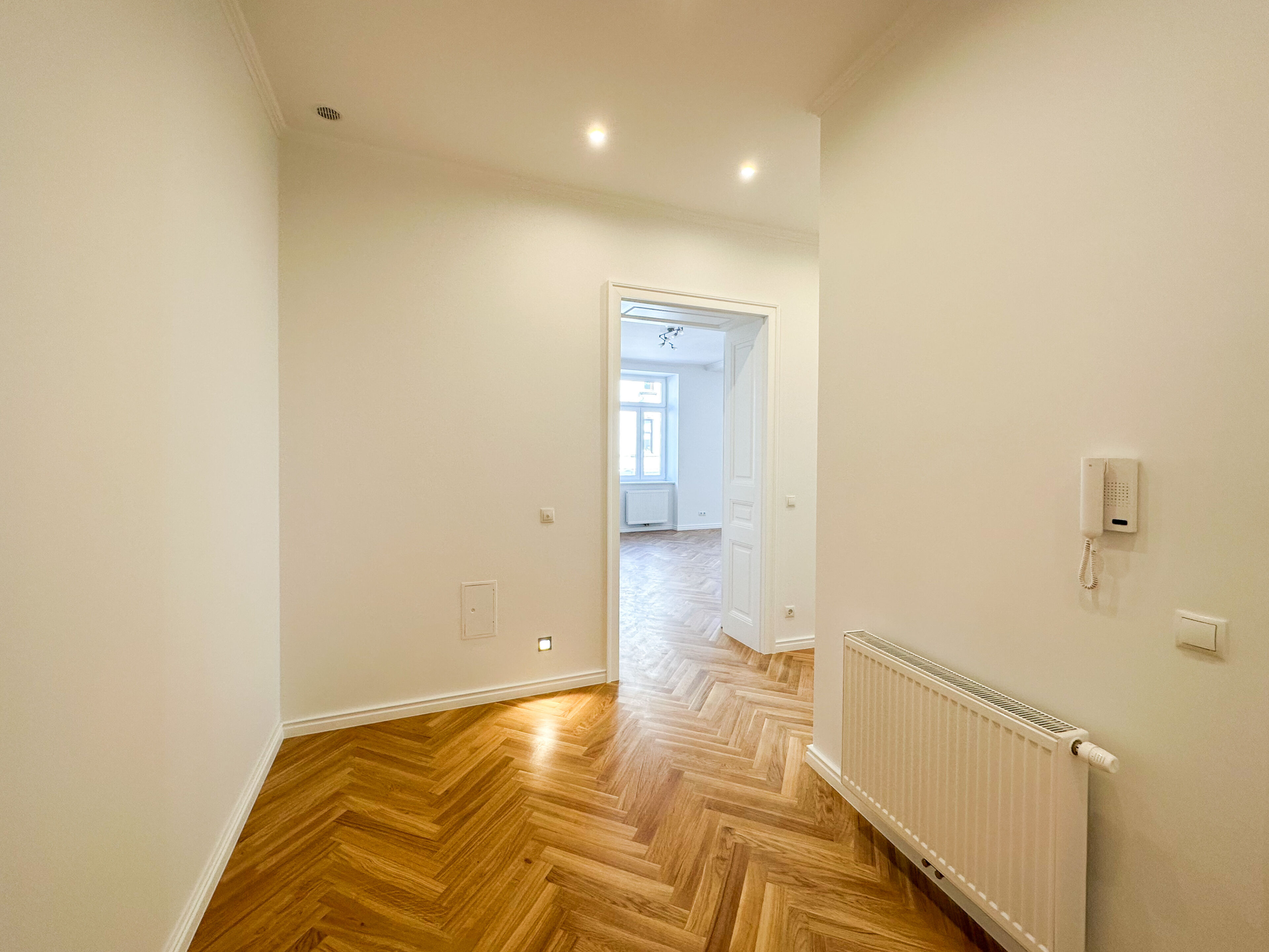 Zum Verkauf gelangt eine 3-Zimmer Altbauwohnung im 1.Obergeschoß. Die Stilaltbau-Wohnung wurde vor kurzem saniert und verfügt über einen Fischgrät-Eichenparkett und ist mit stilvollen Kassettentüren ausgestattet. Eleganter Deckenstuck und feine Vertäfelungen unterstreichen den einzigartigen Alt-Wien-Charakter. Das Bad und das WC bestechen durch hochwertige Marken-Armaturen & Keramiken. Diese ansprechende Wohneinheit überzeugt mit einem durchdachten Grundriss und einer hochwertigen Ausstattung. Die Aufteilung ist wie folgt: