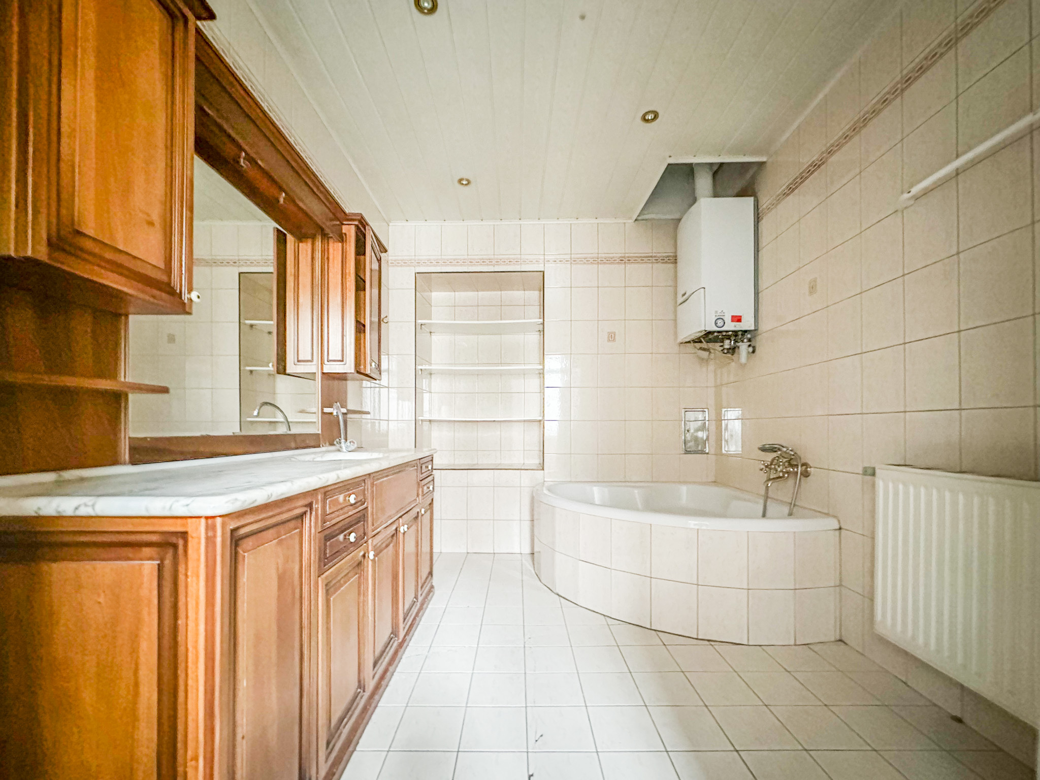 - Badezimmer mit Badewanne, Dusche und Waschmaschinenanschluss